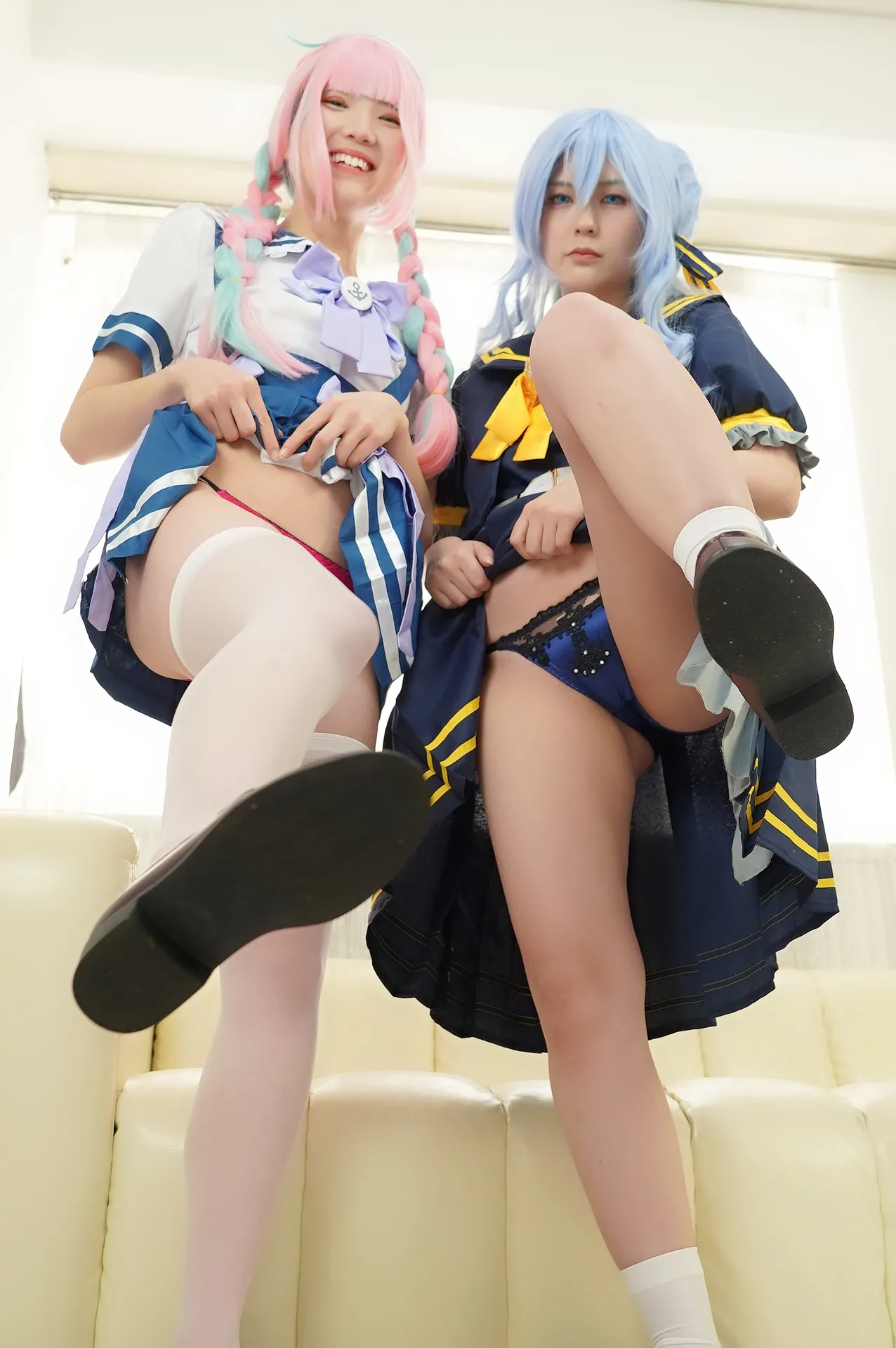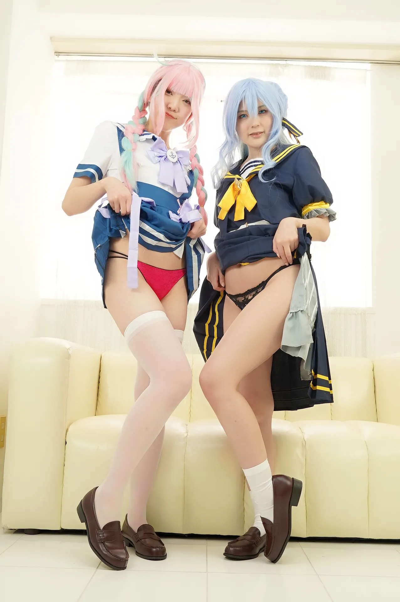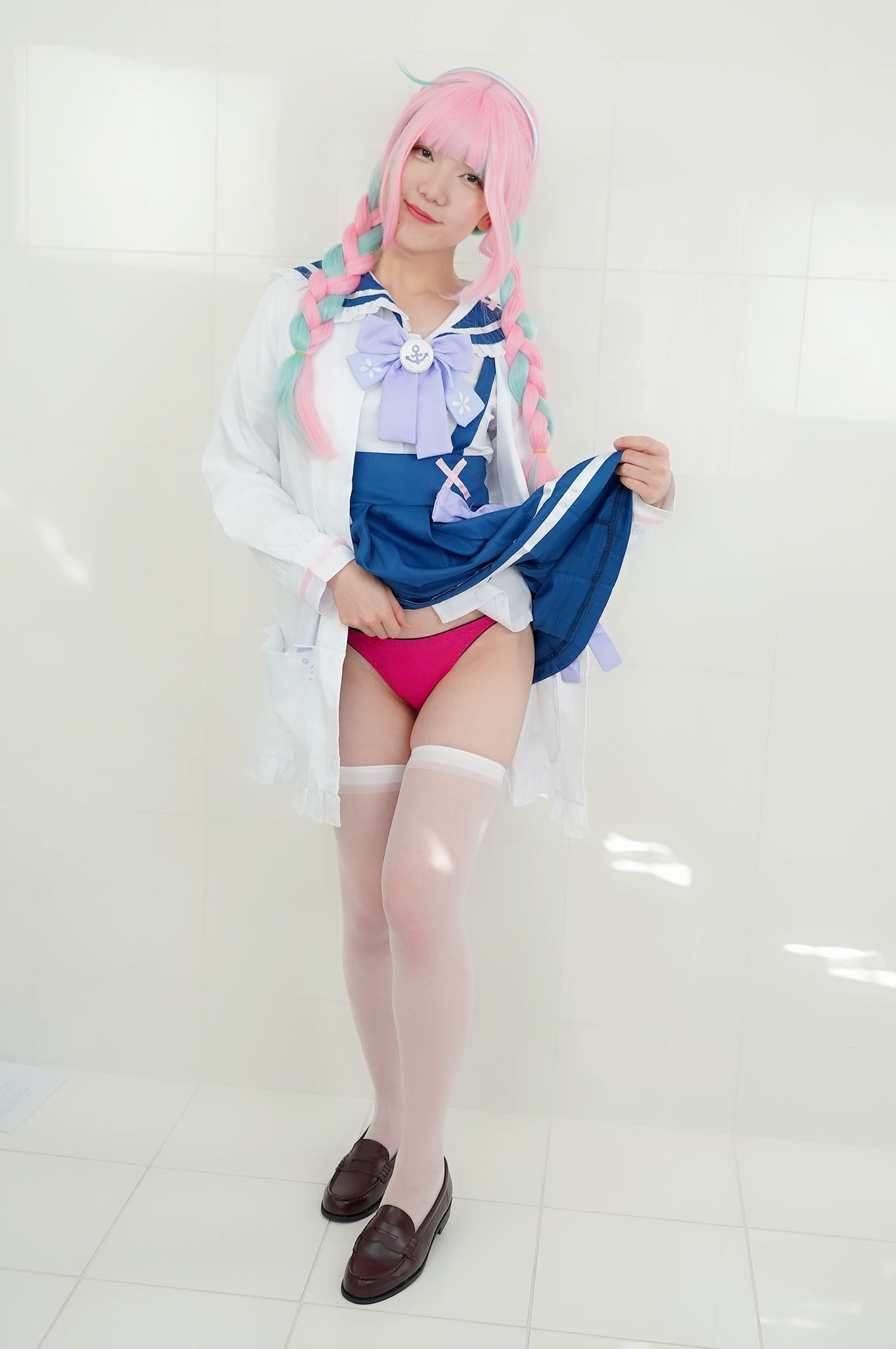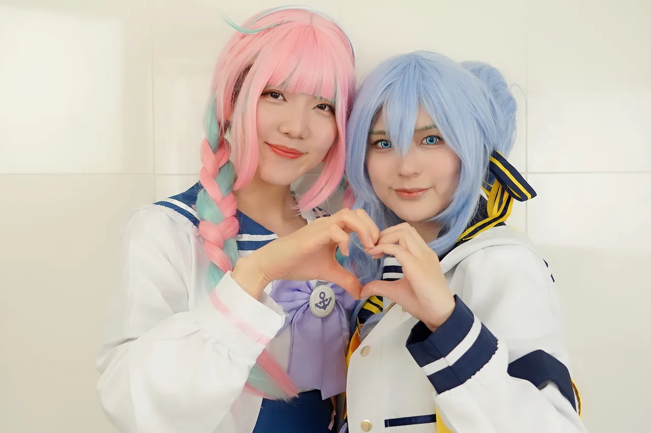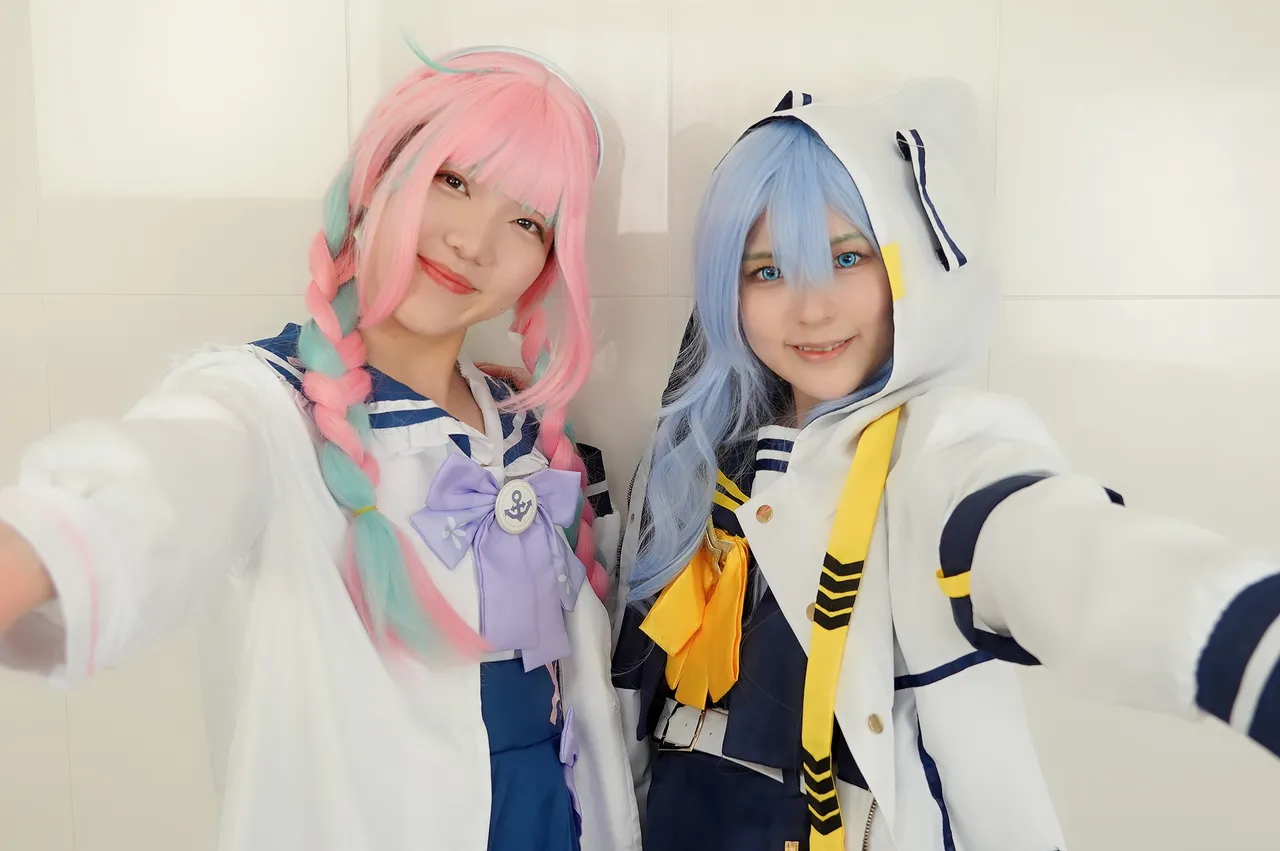 Tags: hentai cosplay, Hololive, Hood, hoshimachi suisei, Makeup, Minato Aqua, stockings, twintails, Vtuber