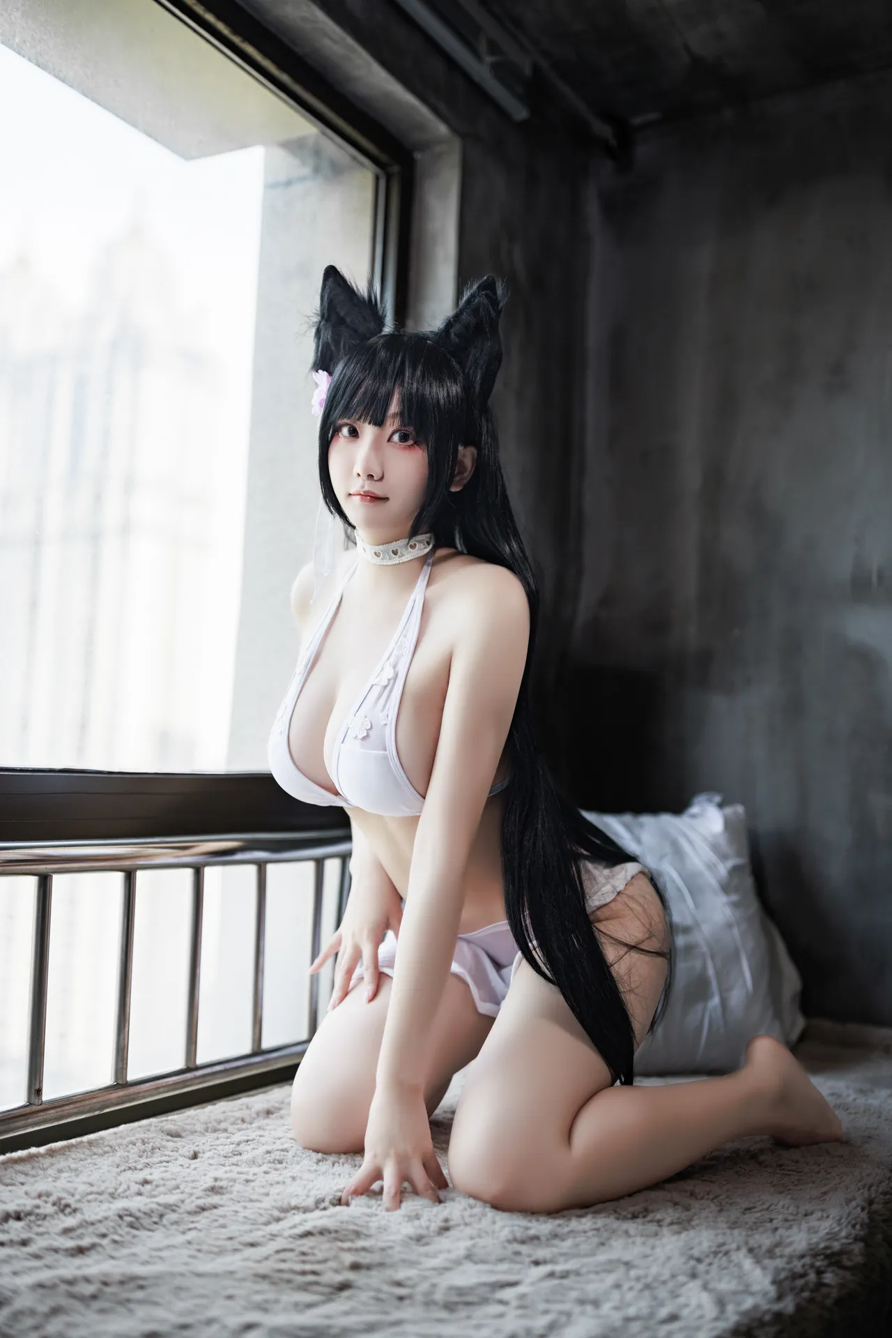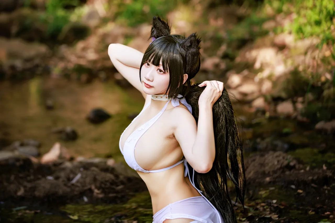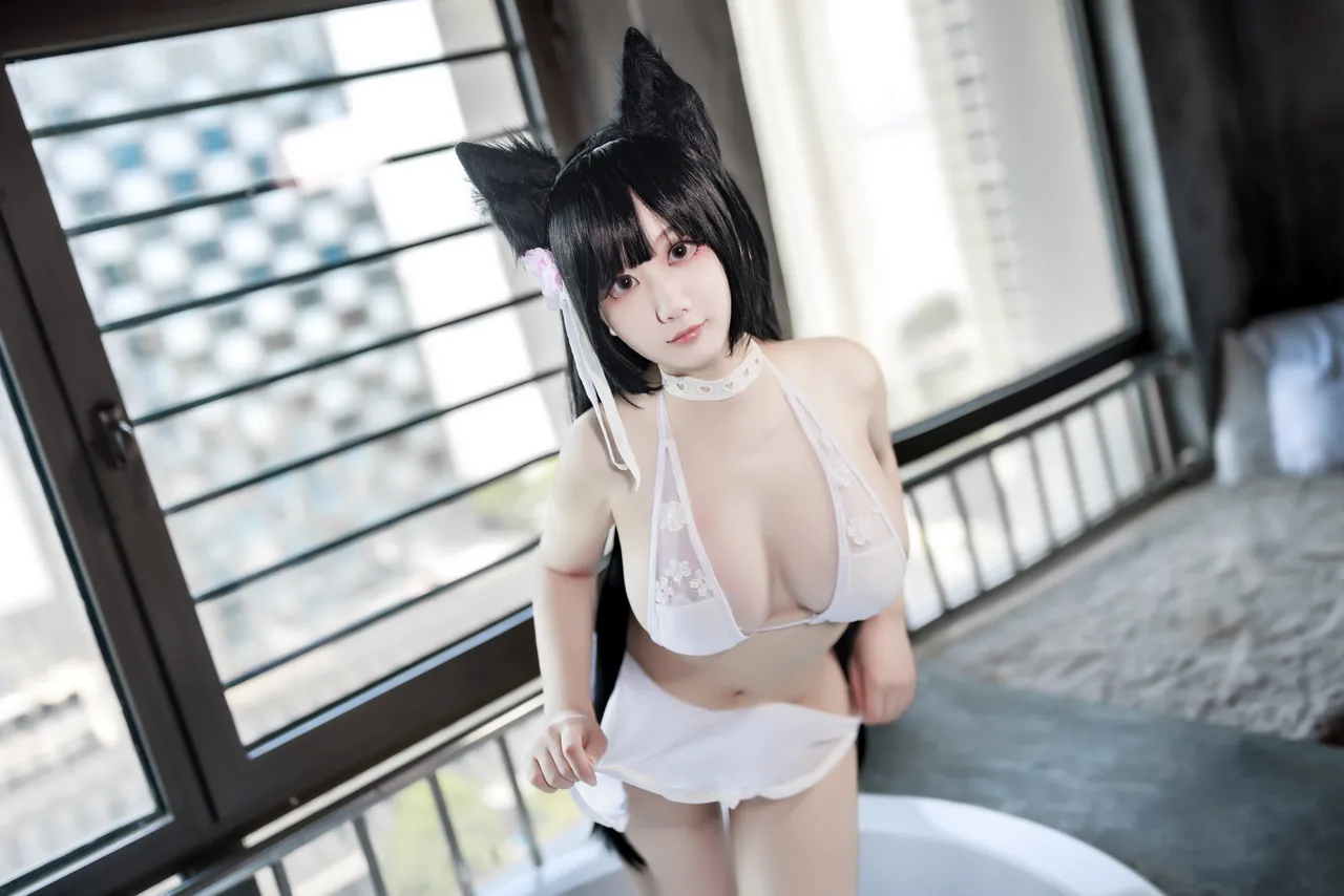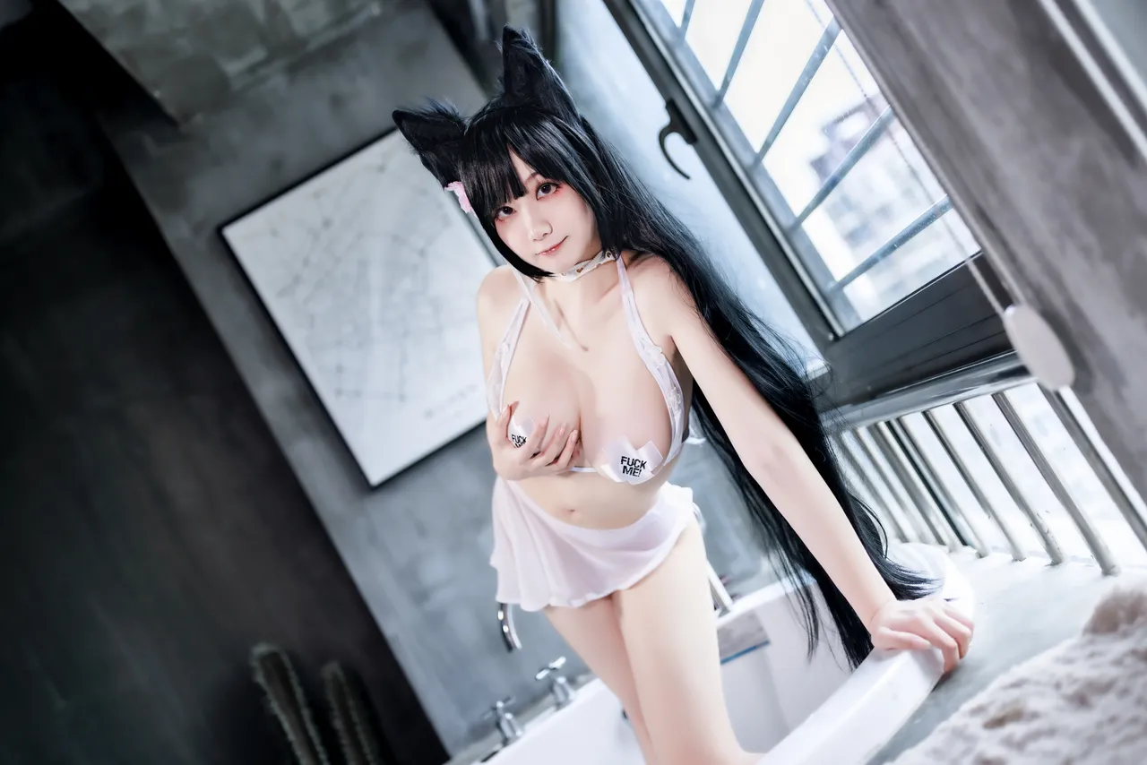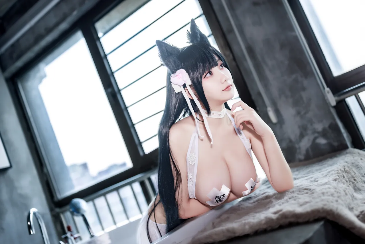 Tags: atago, azur lane, big breasts, Bikini, collar, dog girl, hentai cosplay, Kemonomimi, Makeup, pasties, swimsuit, vaginal sticker, very long hair