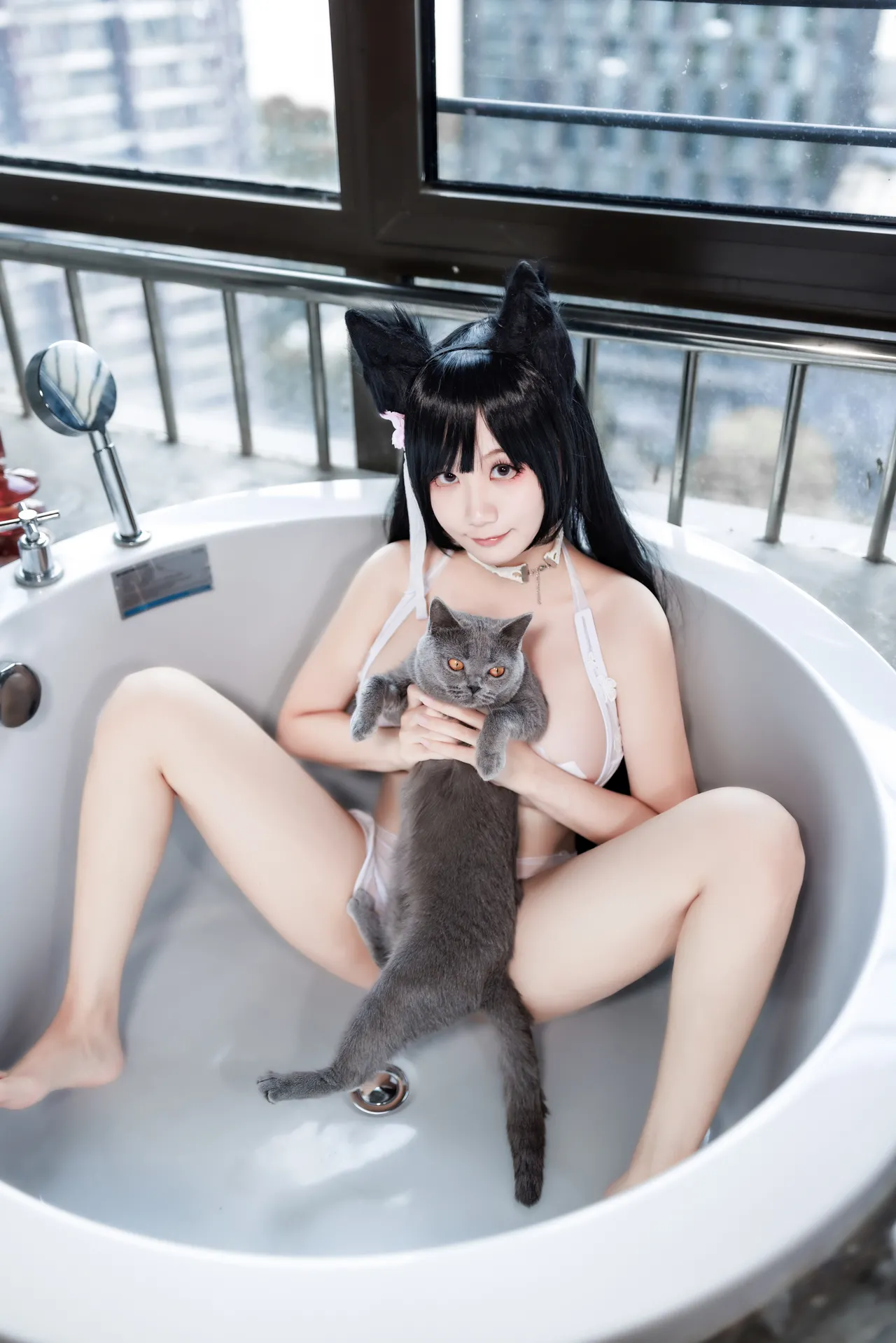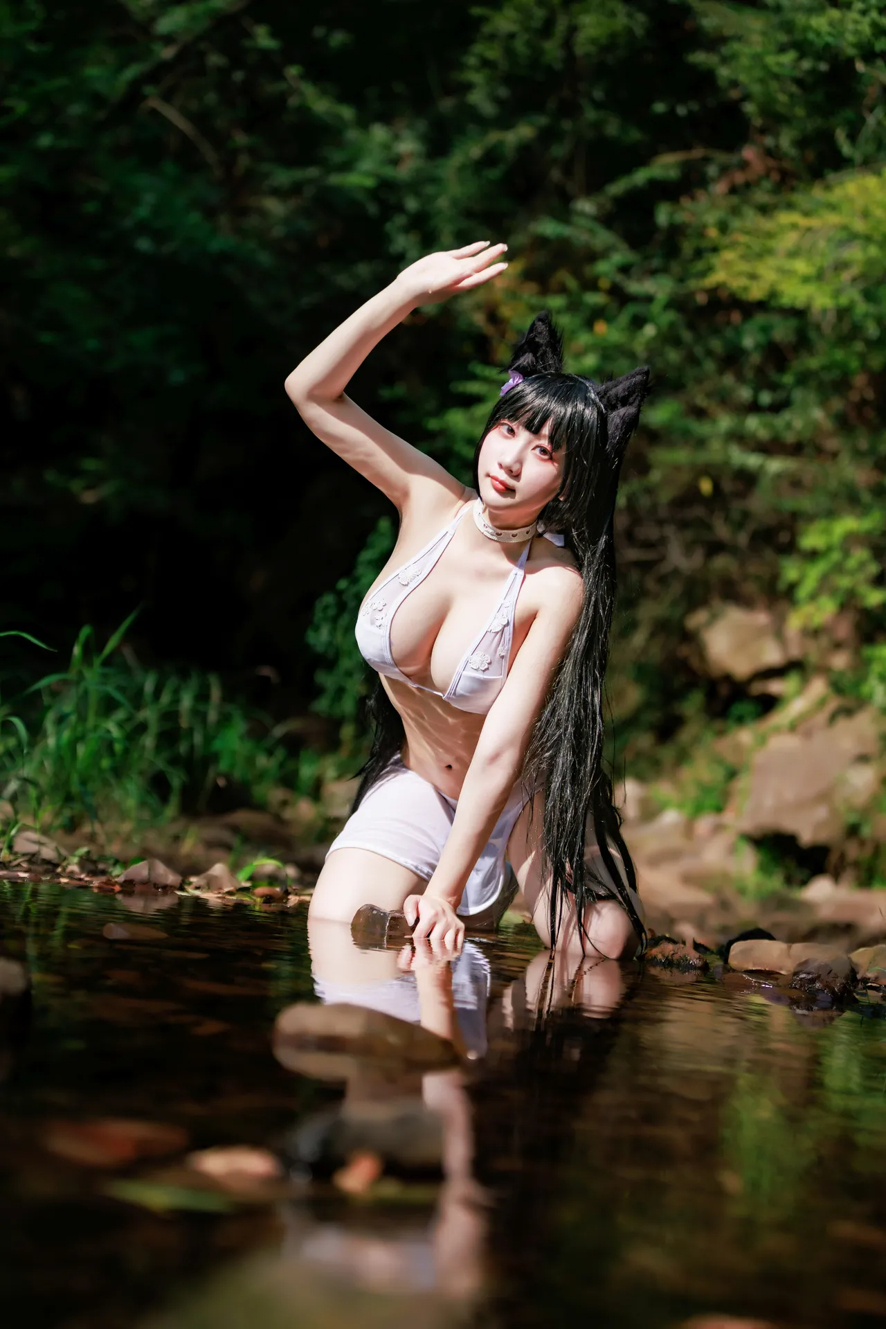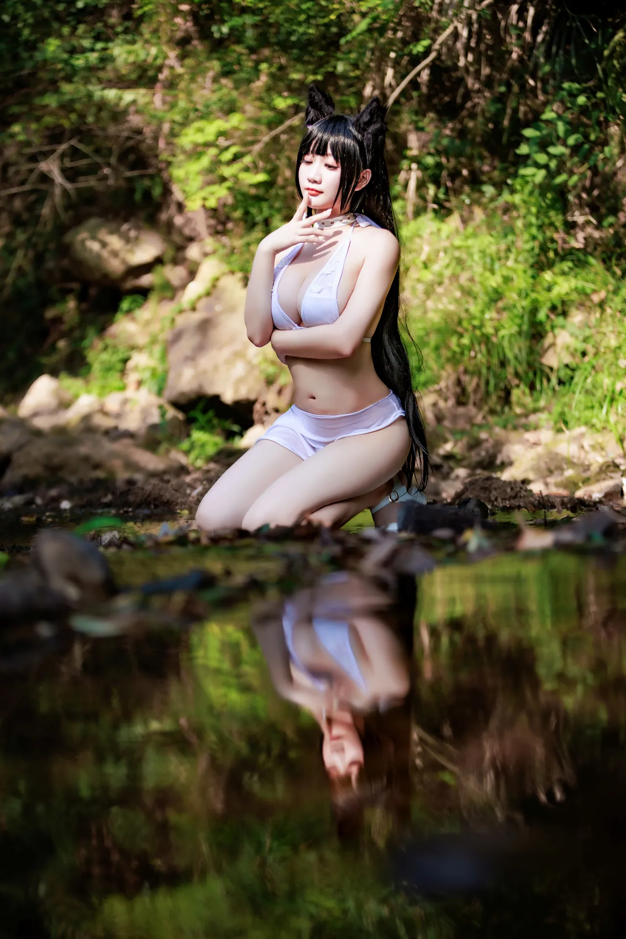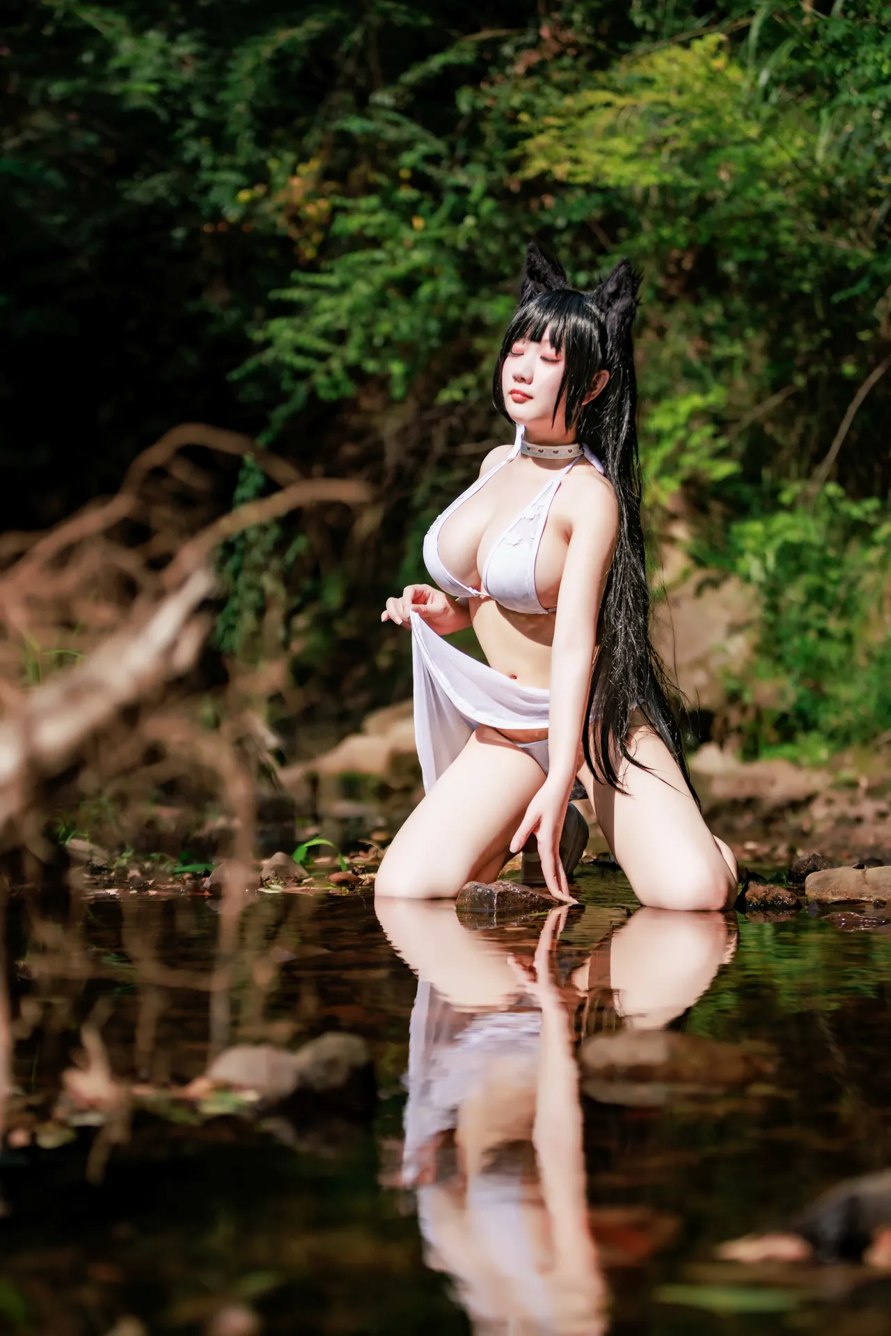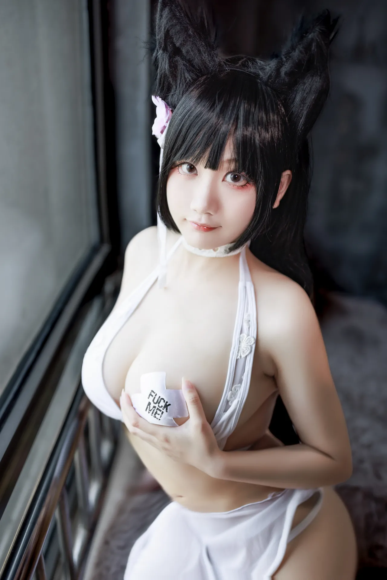 Tags: atago, azur lane, big breasts, Bikini, collar, dog girl, hentai cosplay, Kemonomimi, Makeup, pasties, swimsuit, vaginal sticker, very long hair