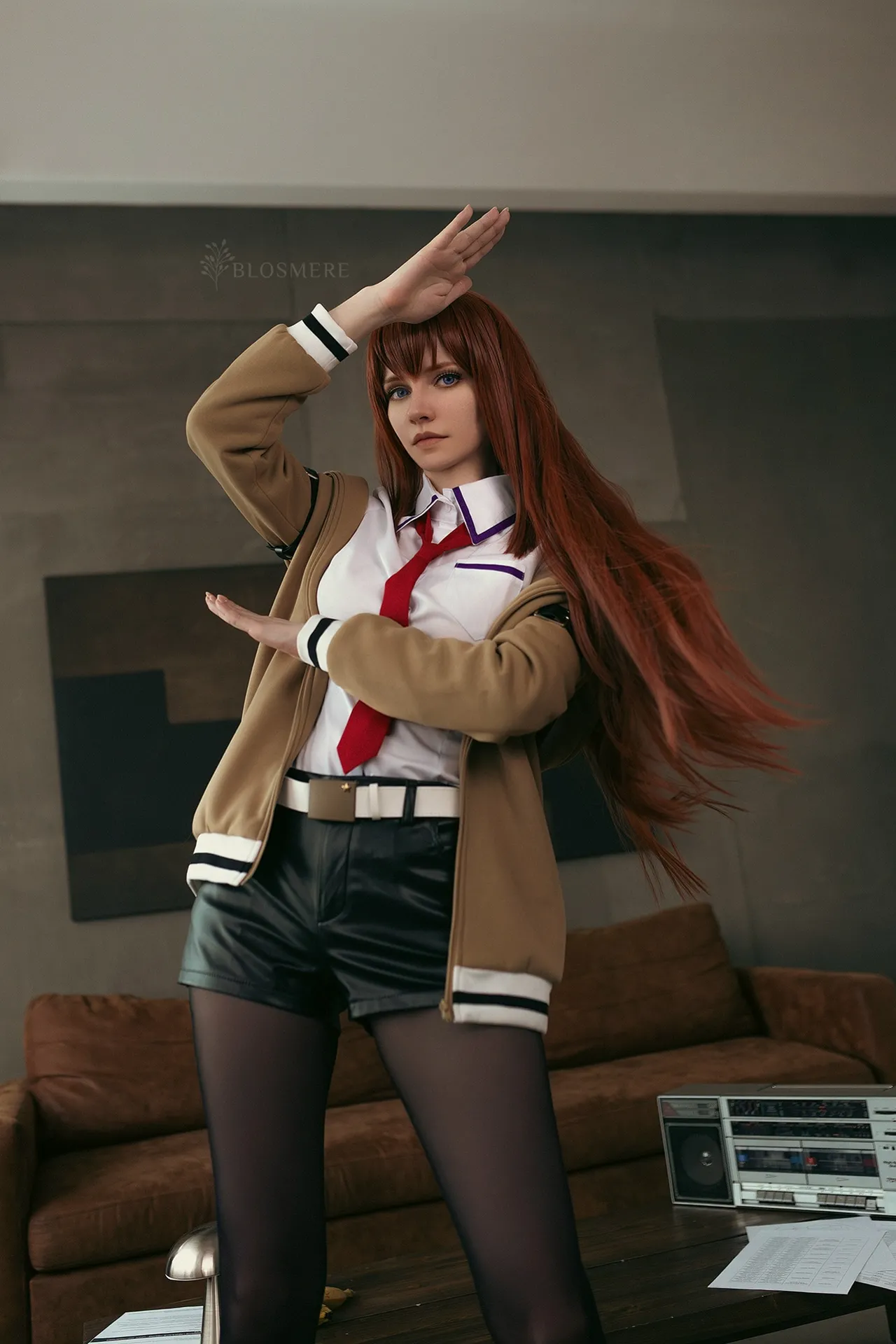 Tags: hentai cosplay, High Heels, hotpants, kurisu makise, Makeup, pantyhose, schoolgirl uniform, sole female, steinsgate, very long hair