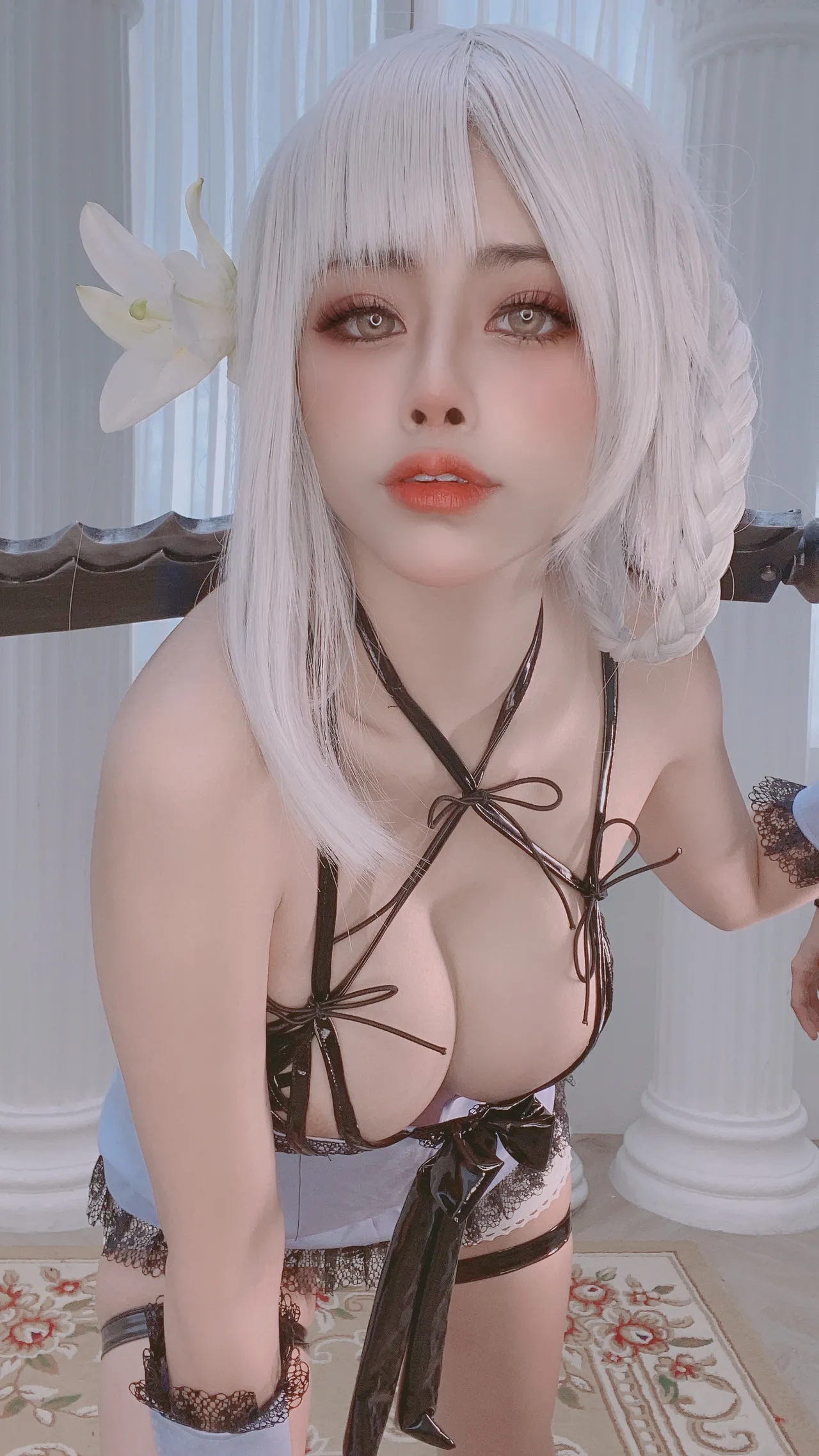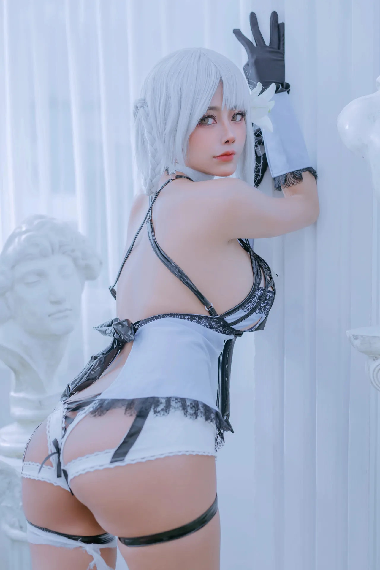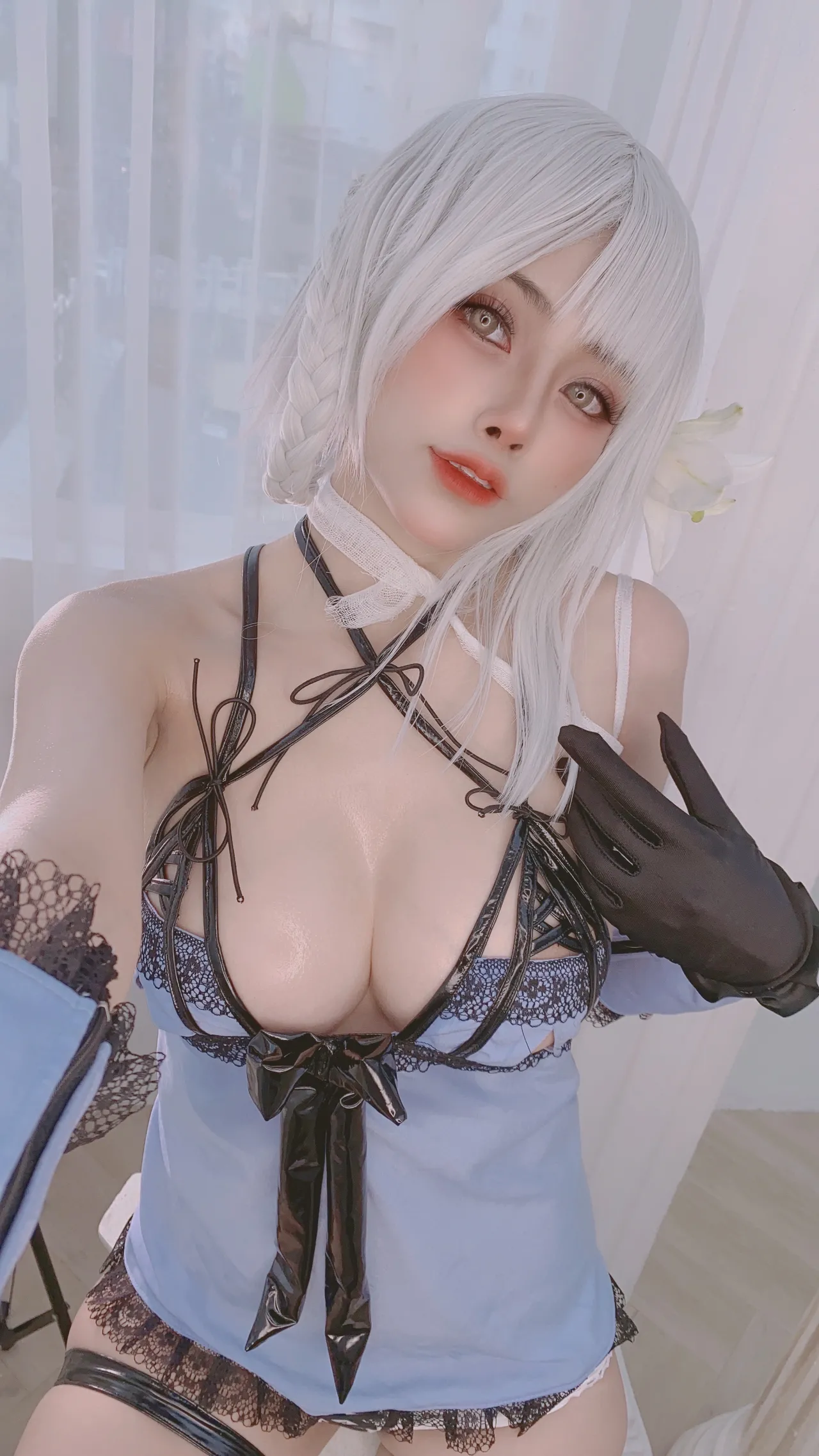 Tags: bandaid, big breasts, detached sleeves, gloves, hentai cosplay, High Heels, Kainé, lingerie, Makeup, Nier Automata, oil, pasties