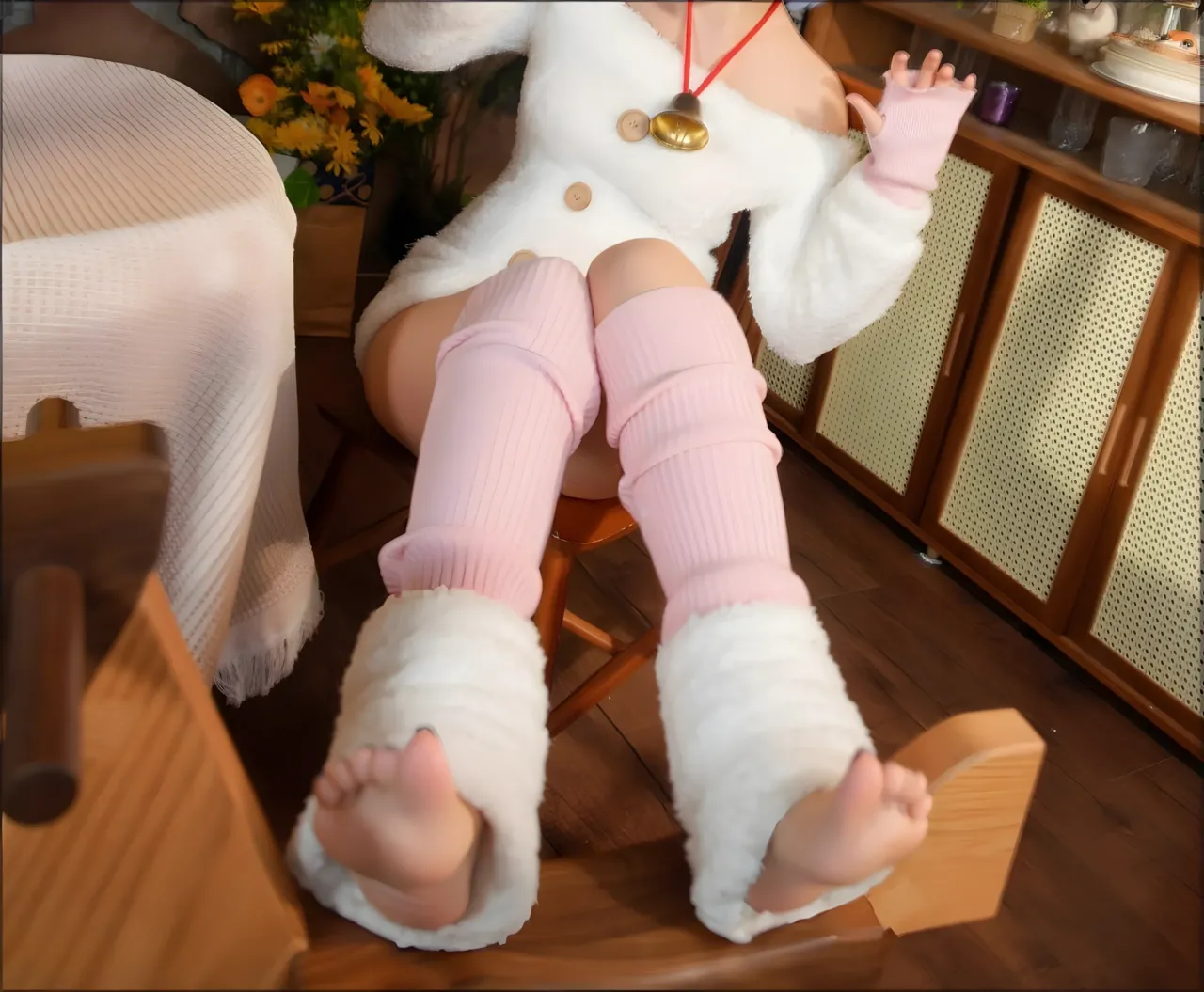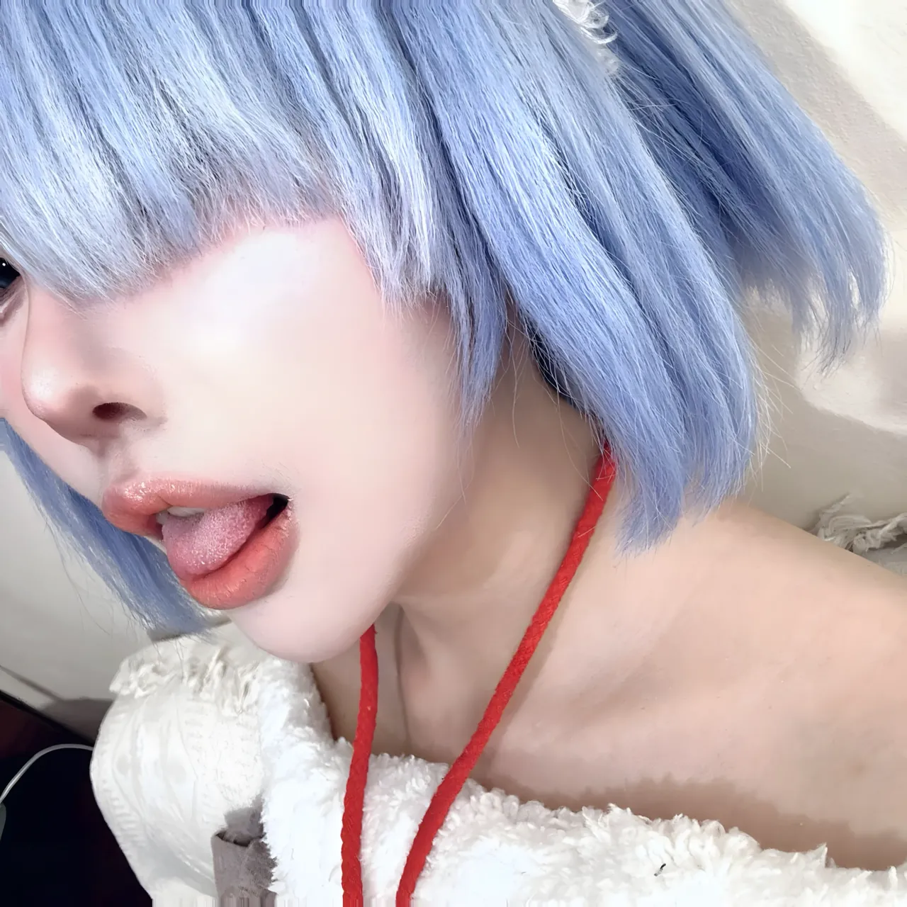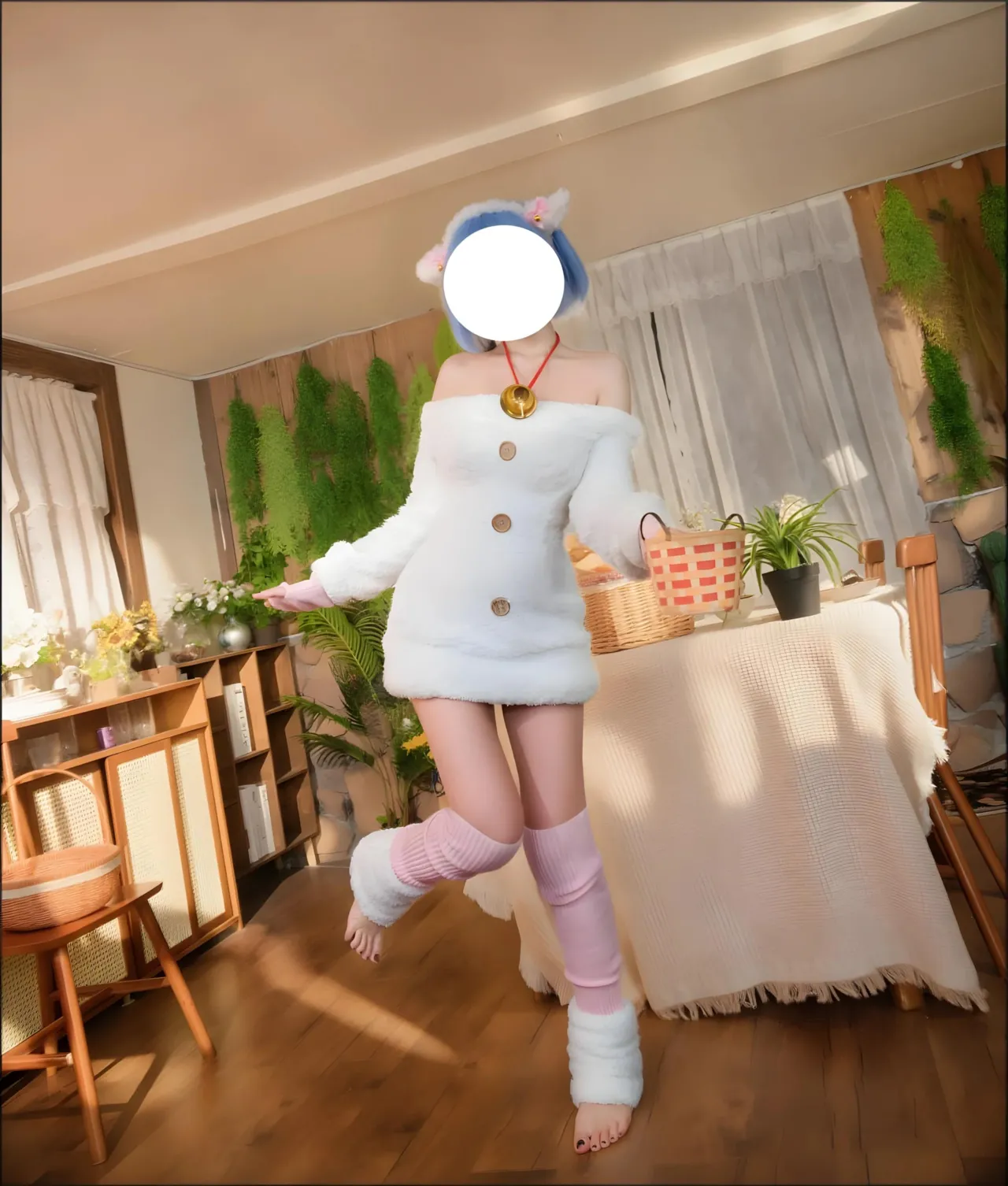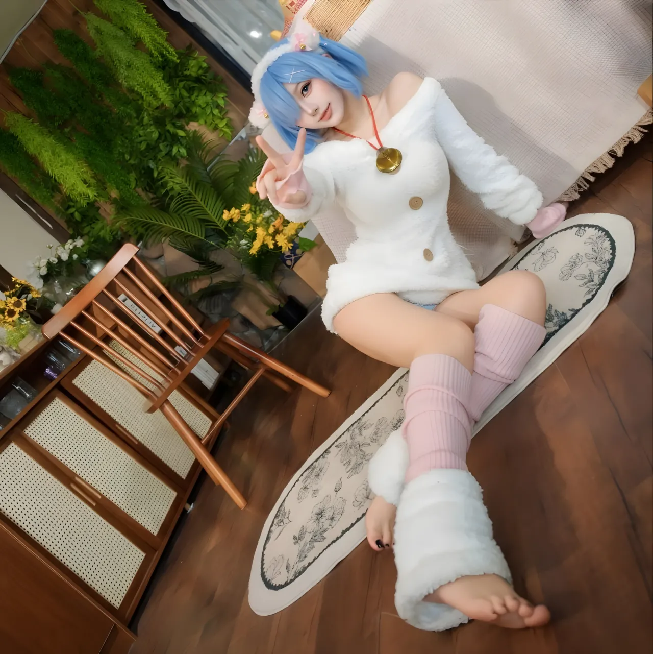 Tags: bandaid, collar, eye-covering bang, gloves, hentai cosplay, Kemonomimi, Makeup, painted nails, pasties, re zero kara hajimeru isekai seikatsu, Rem, sheep girl