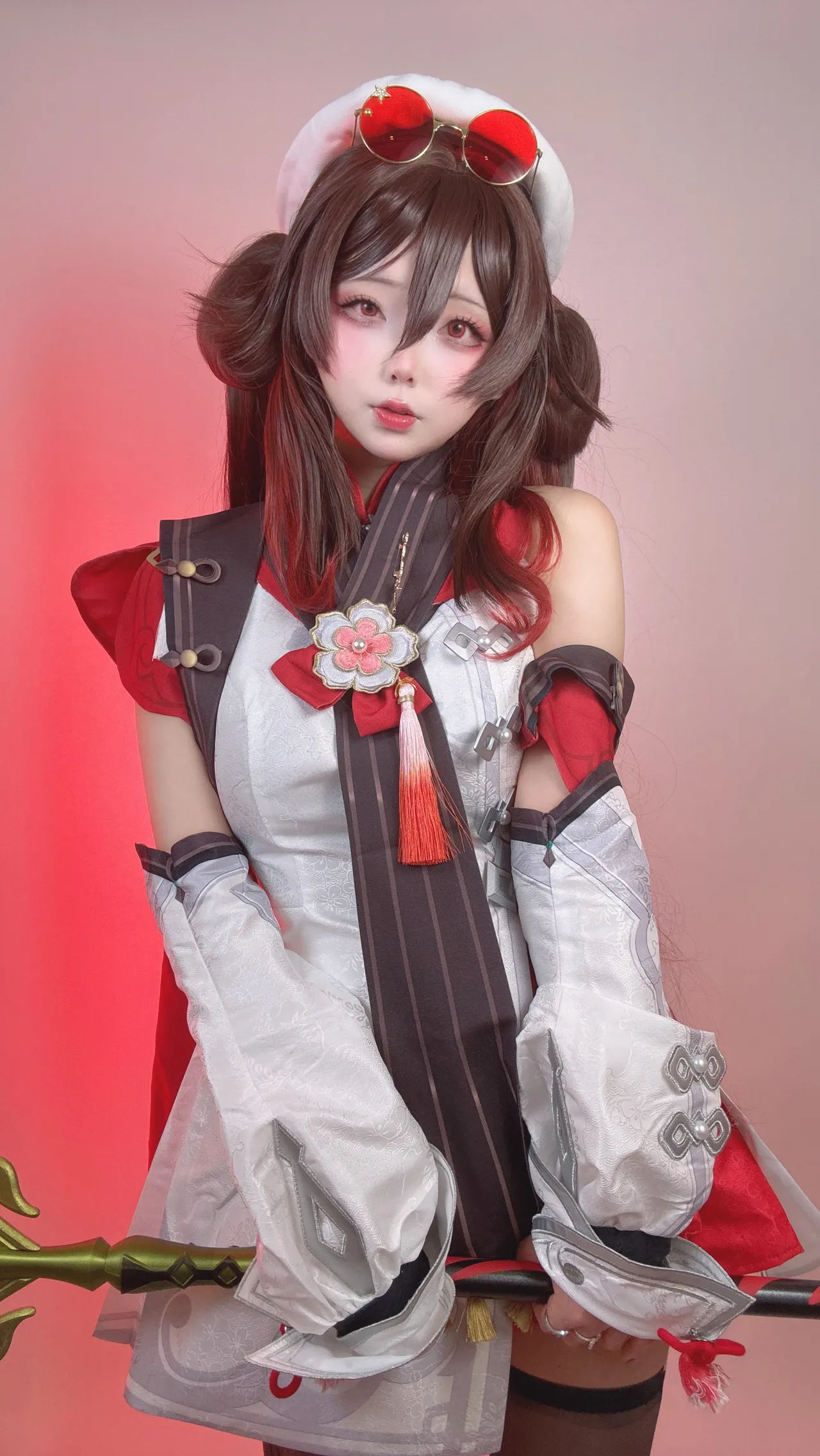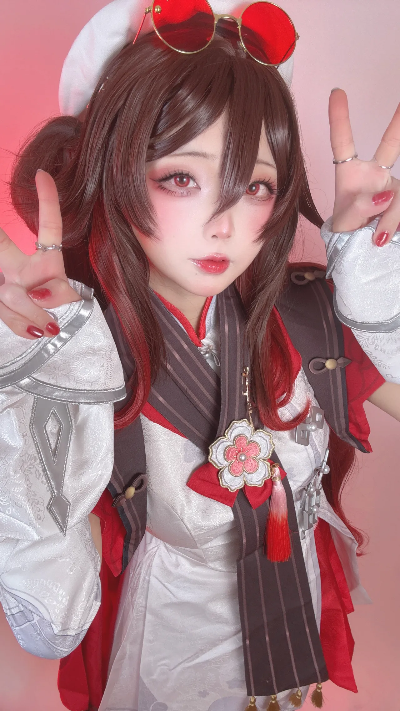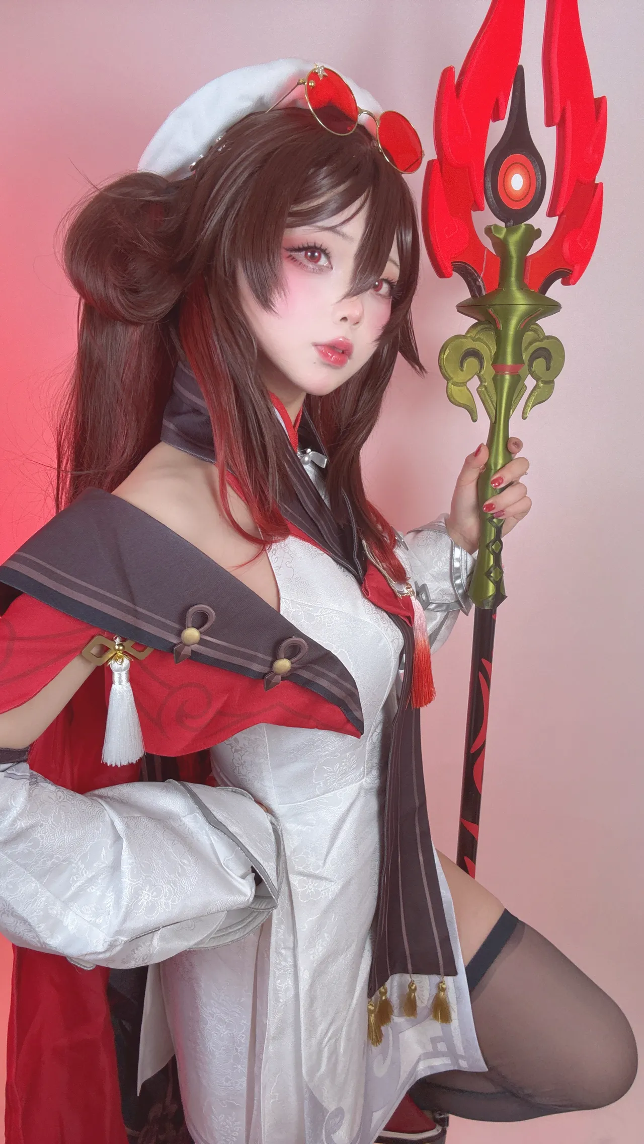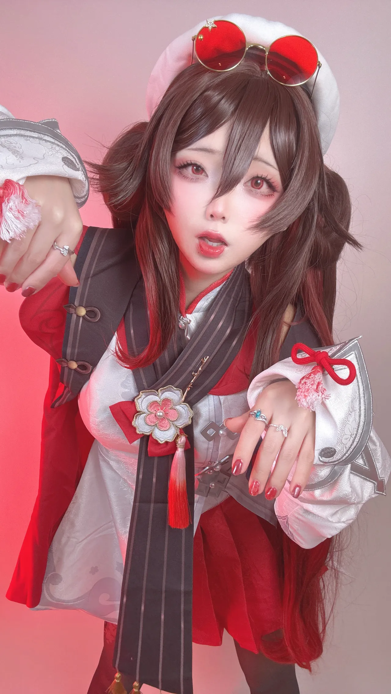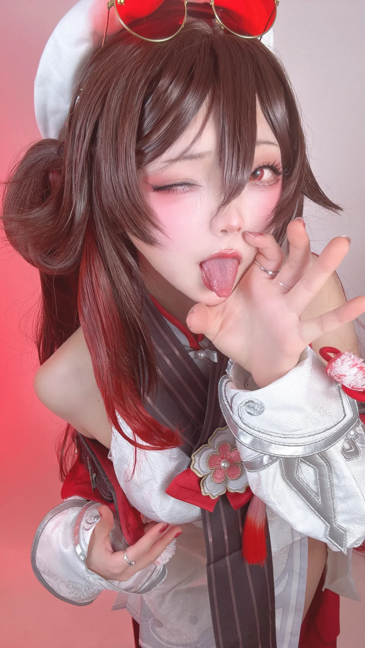 Tags: Ahegao, detached sleeves, Genshin Impact, hentai cosplay, hu tao, Makeup, pasties, stockings, very long hair