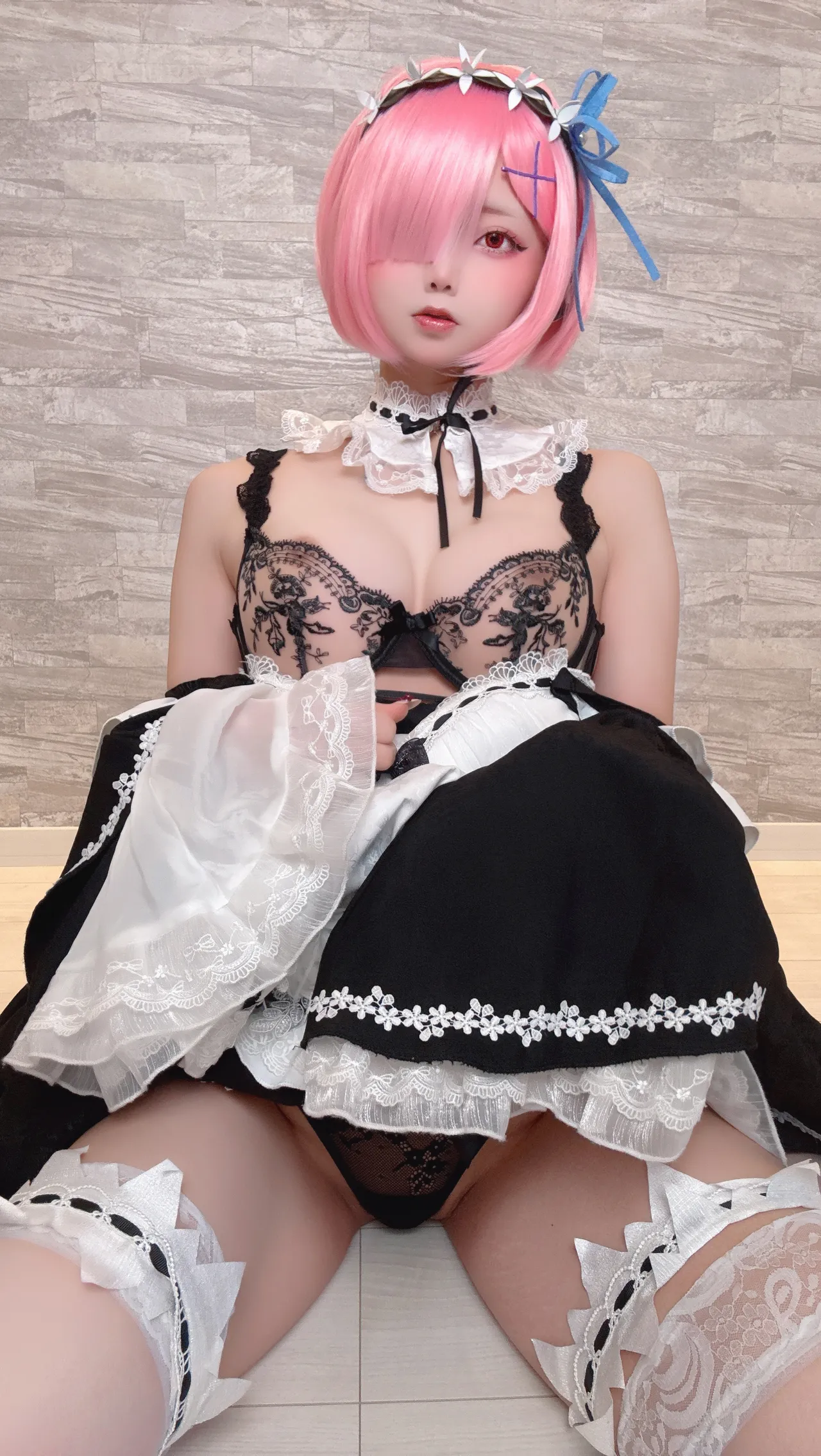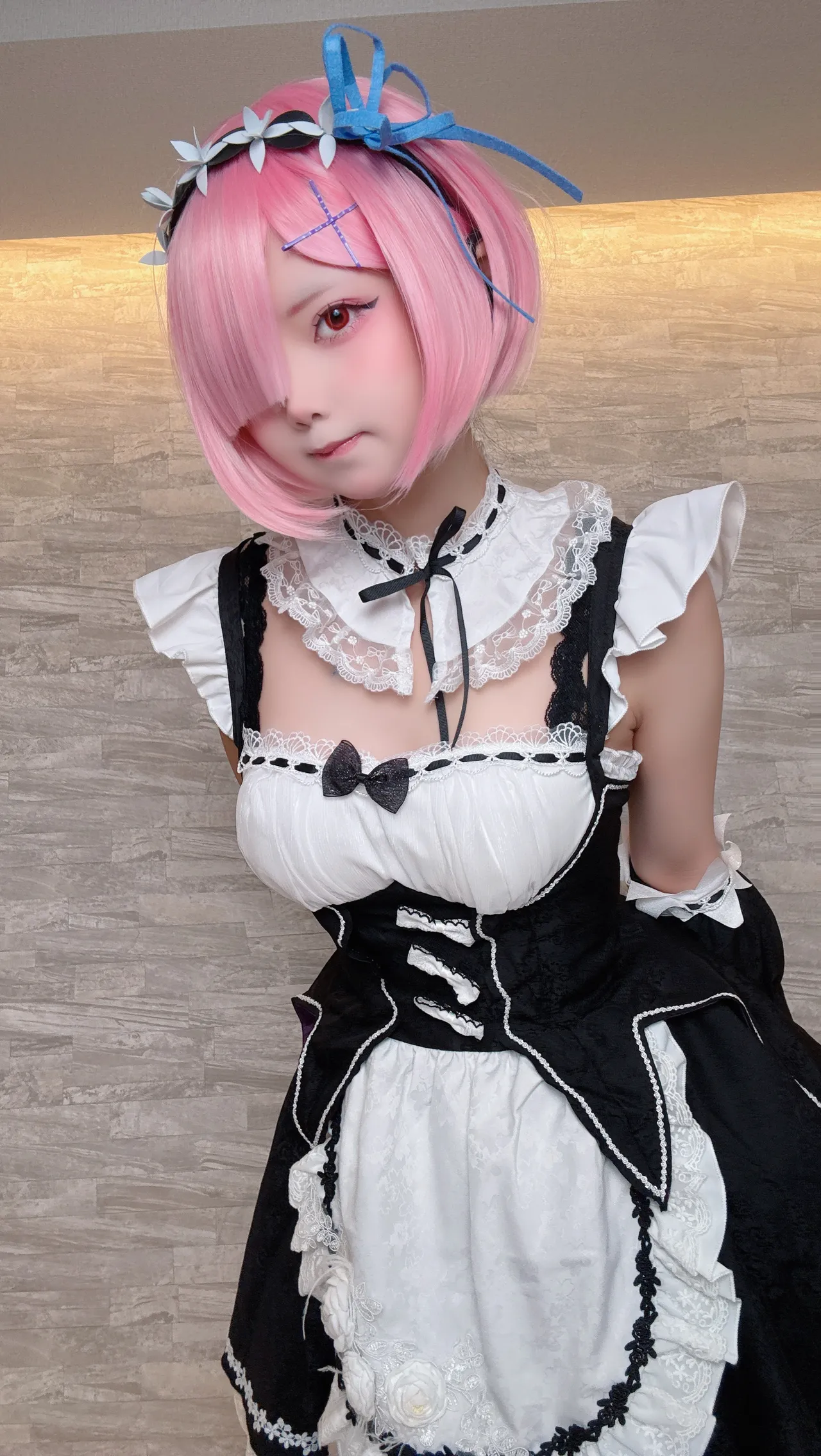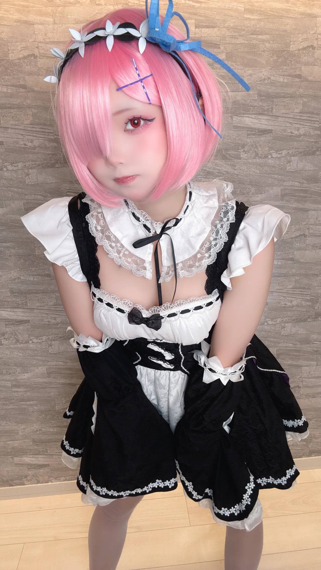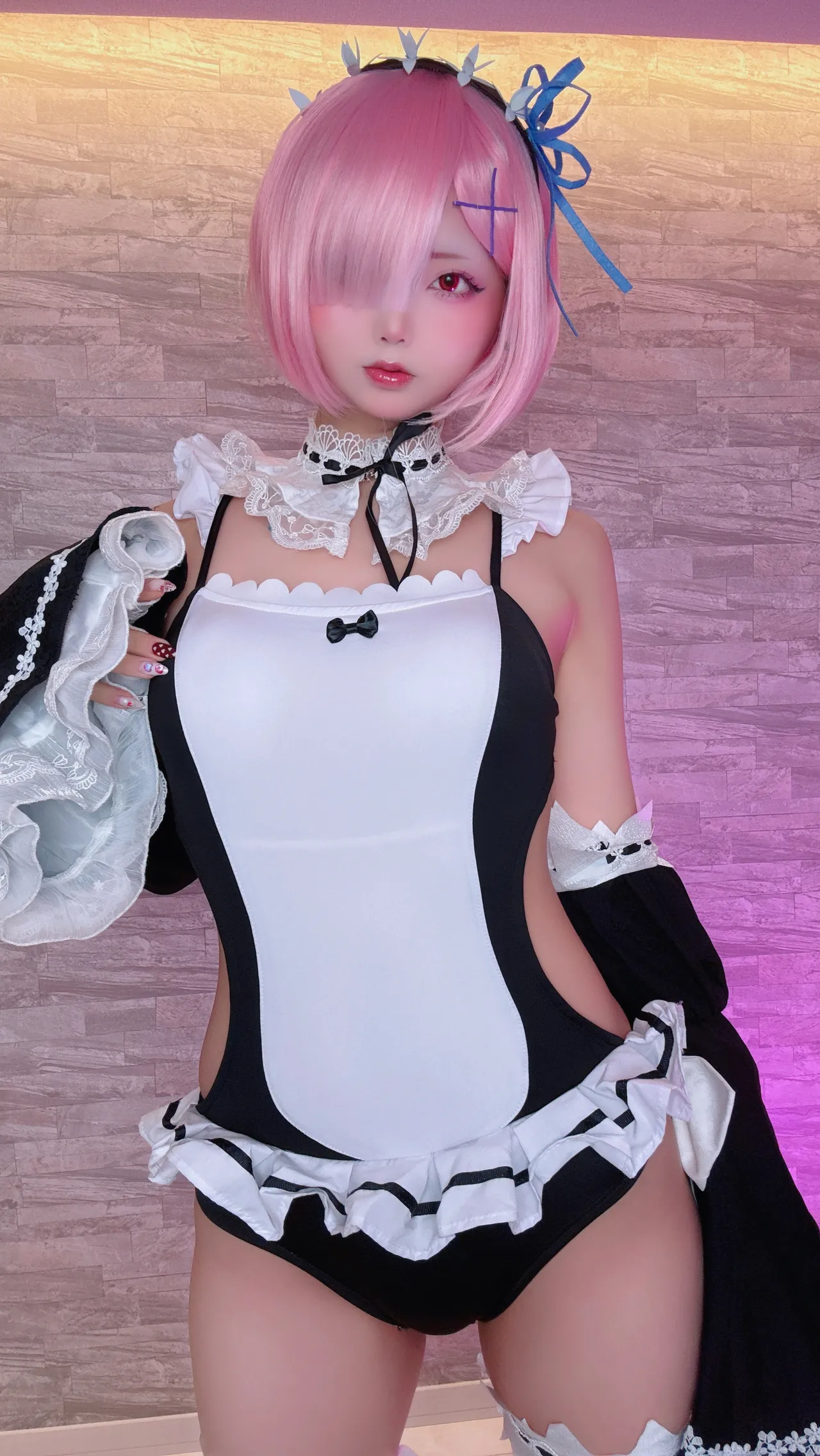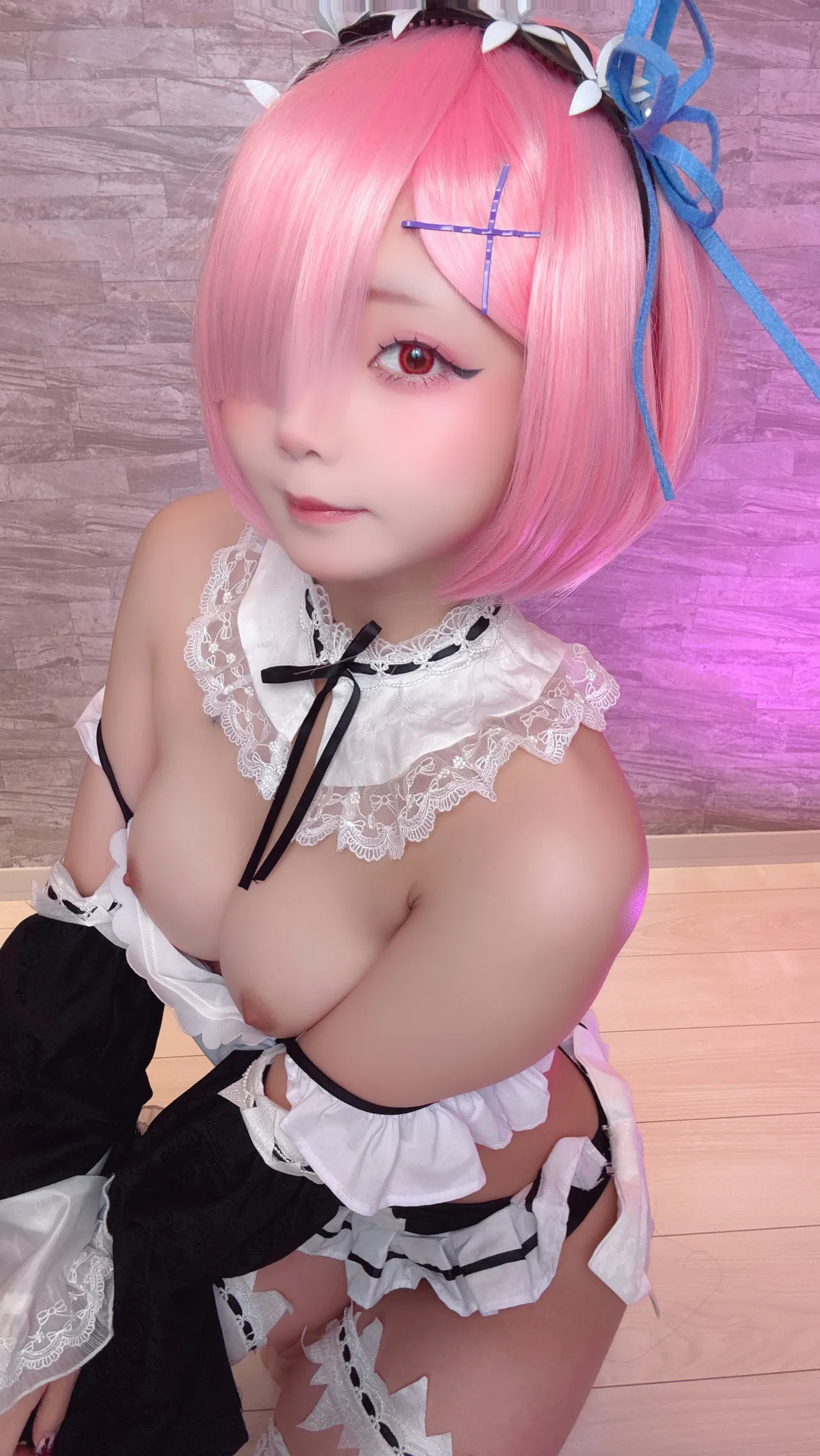 Tags: detached sleeves, eye-covering bang, hentai cosplay, ram, re zero kara hajimeru isekai seikatsu