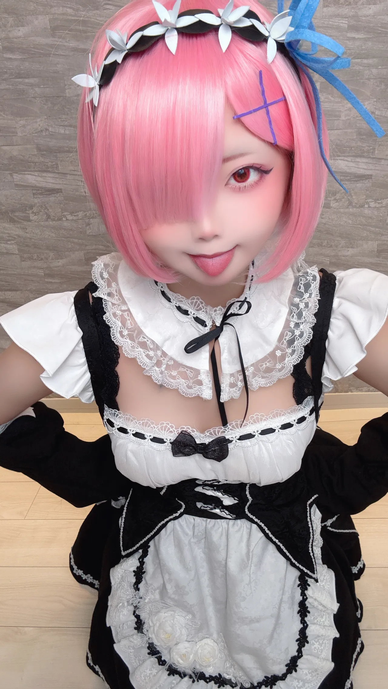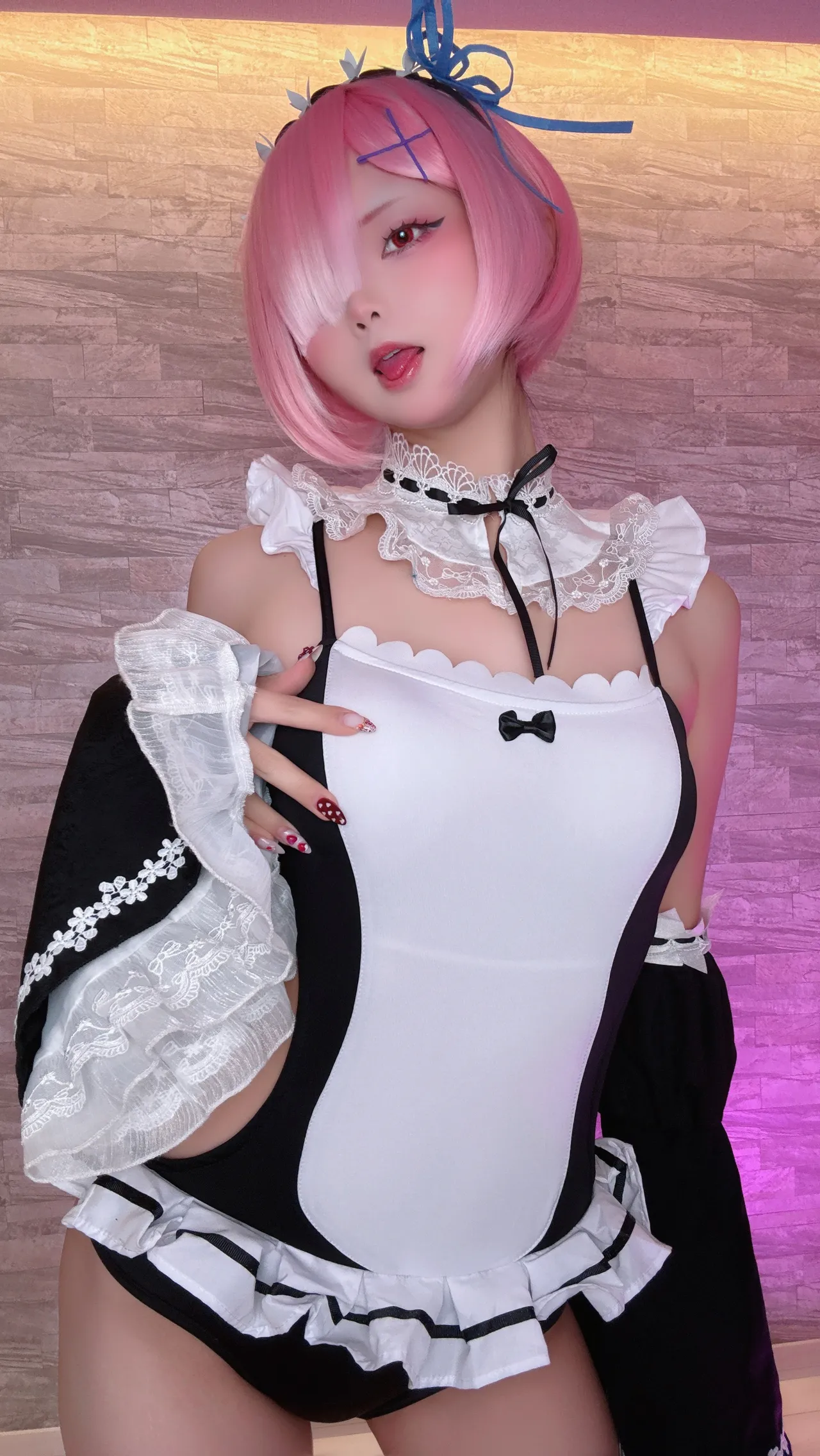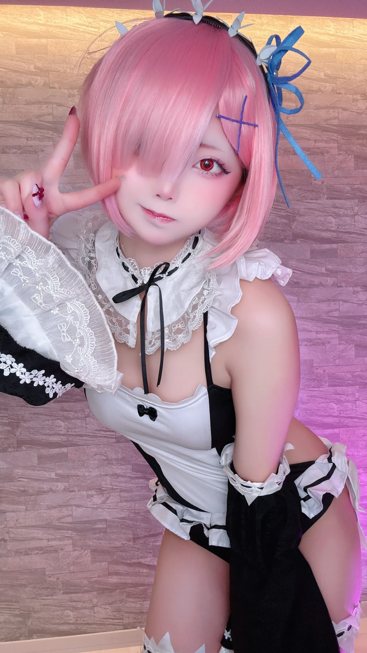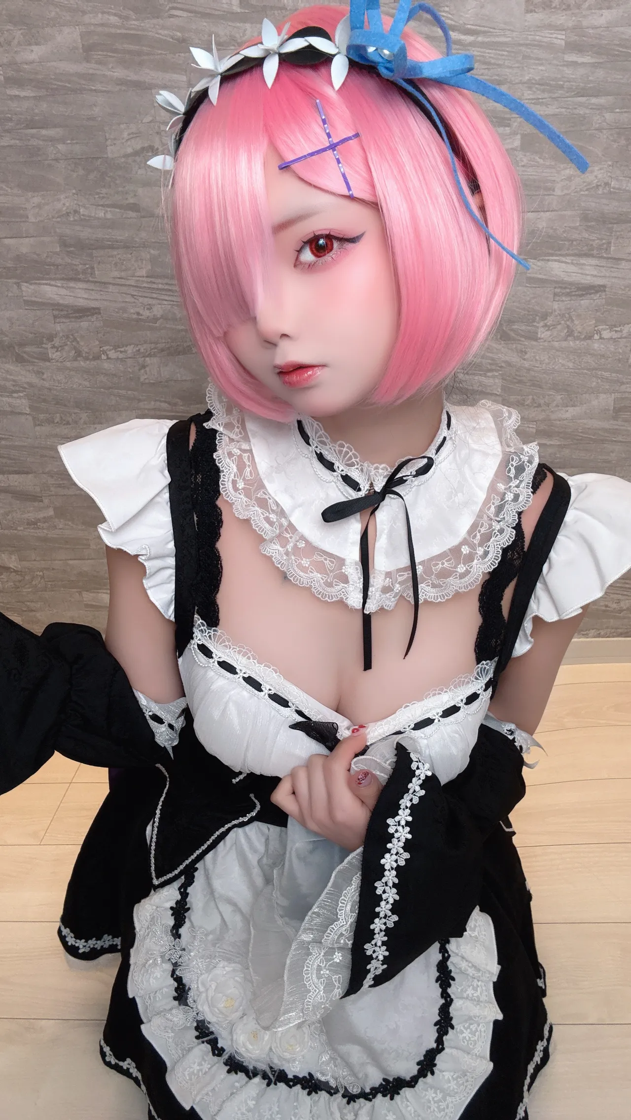 Tags: detached sleeves, eye-covering bang, hentai cosplay, ram, re zero kara hajimeru isekai seikatsu