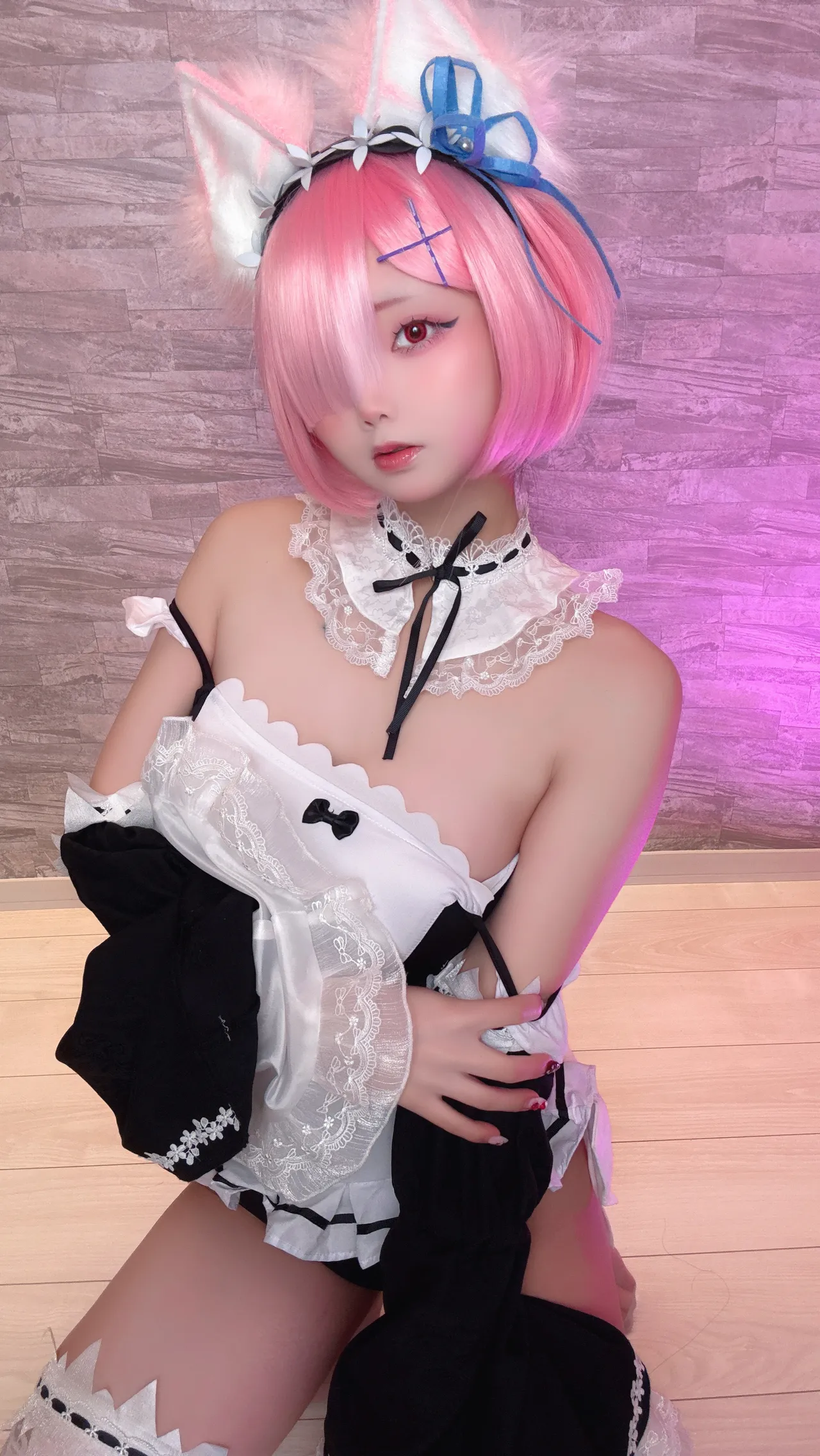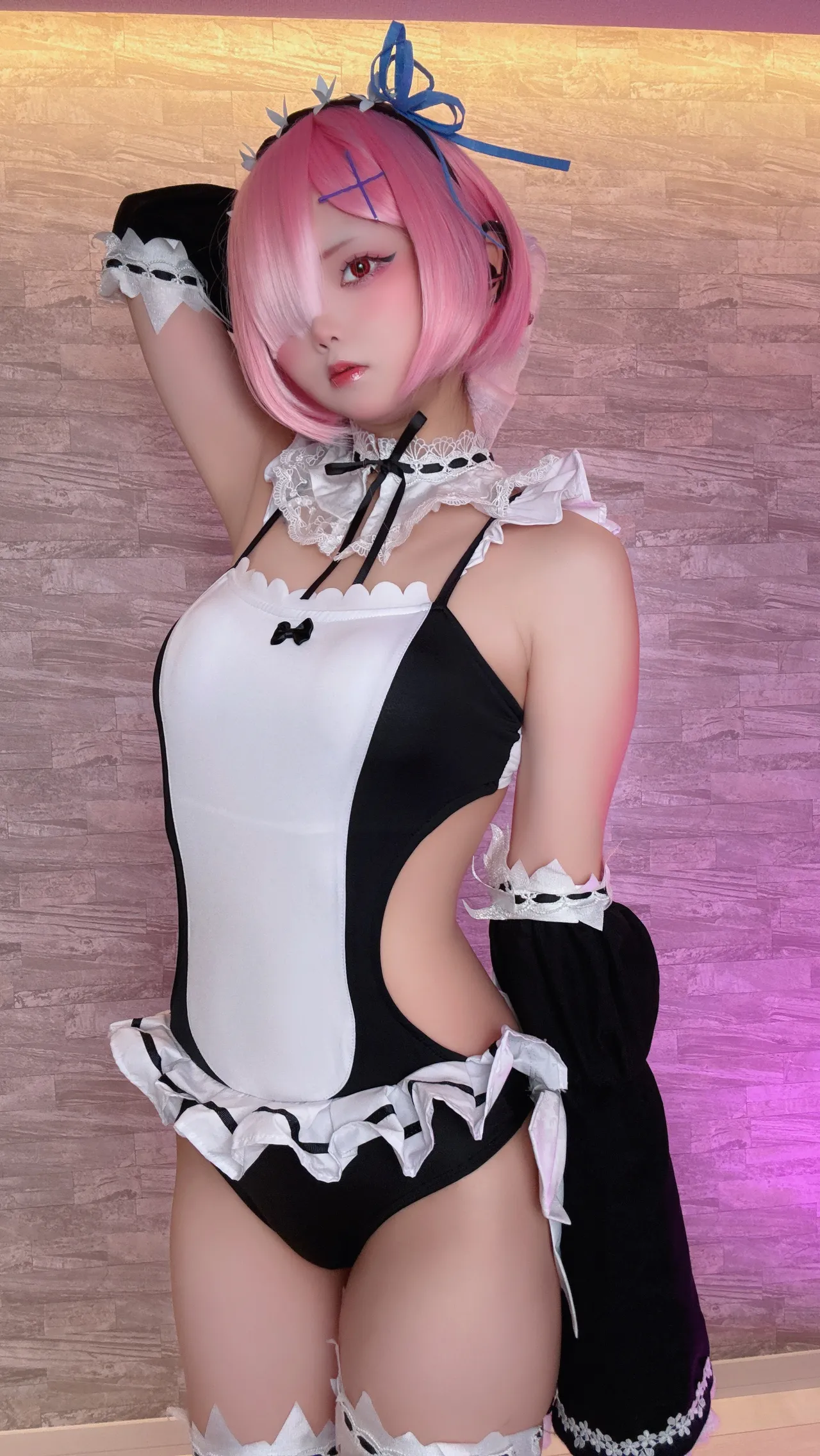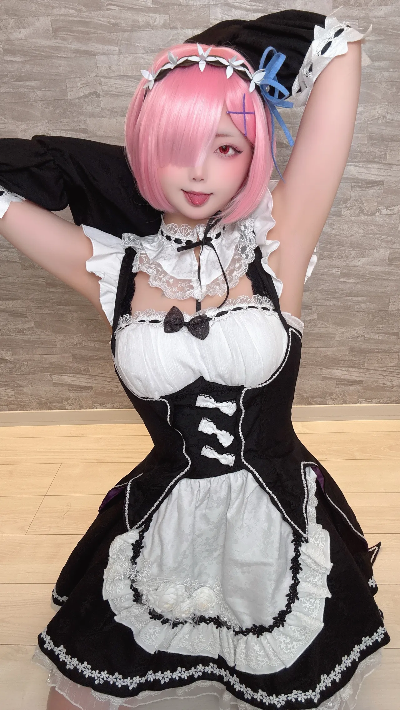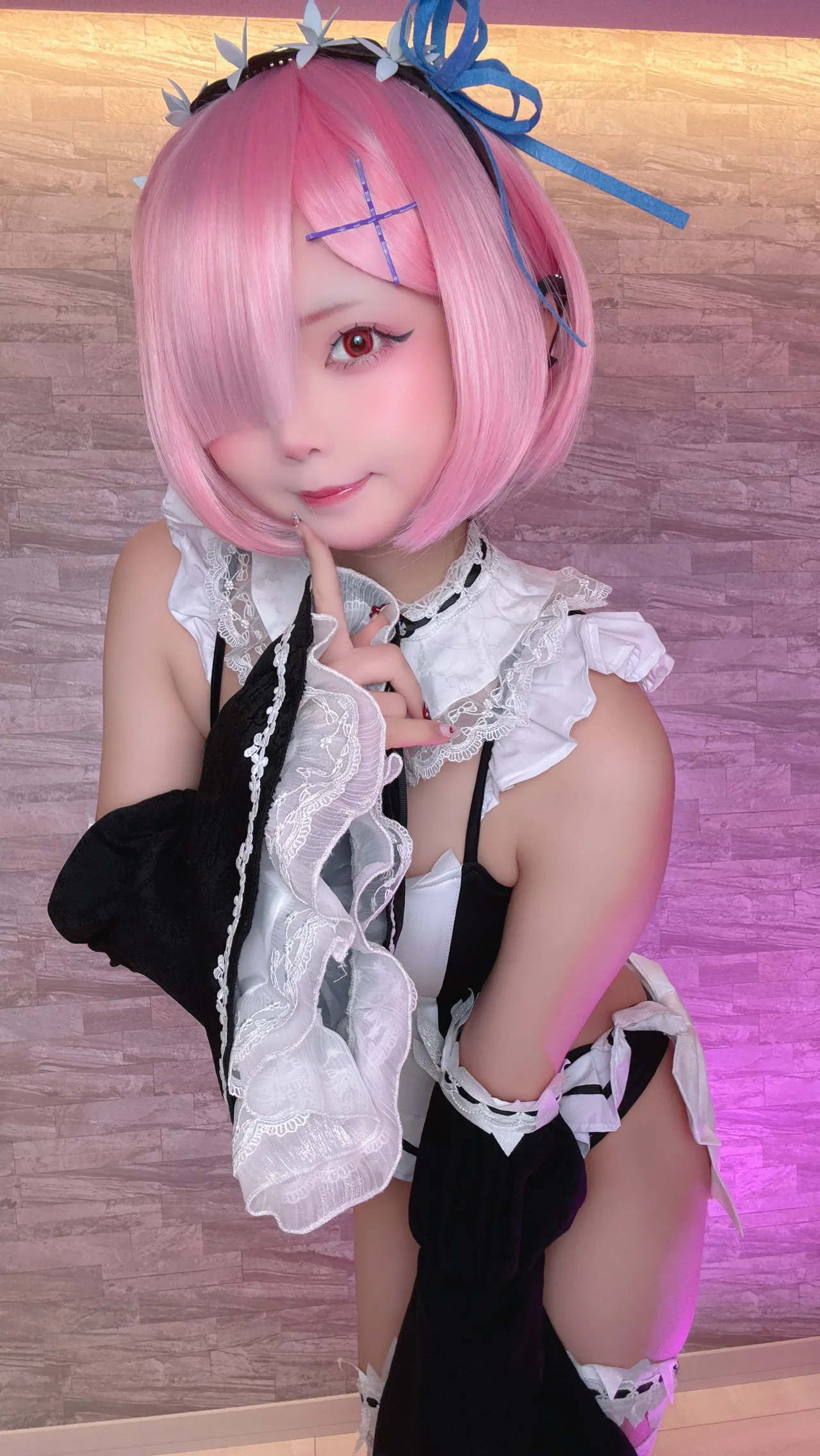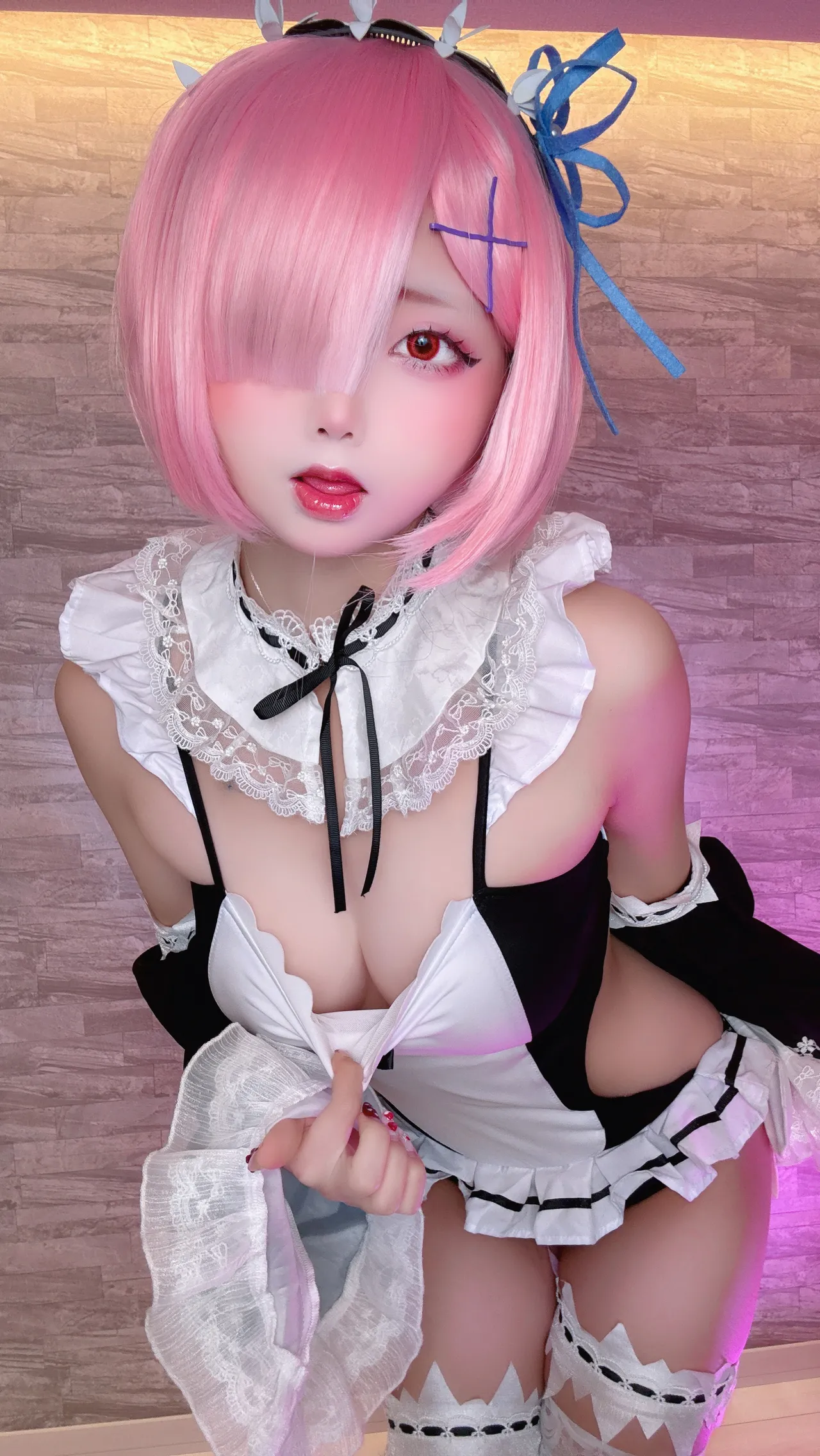Tags: detached sleeves, eye-covering bang, hentai cosplay, ram, re zero kara hajimeru isekai seikatsu