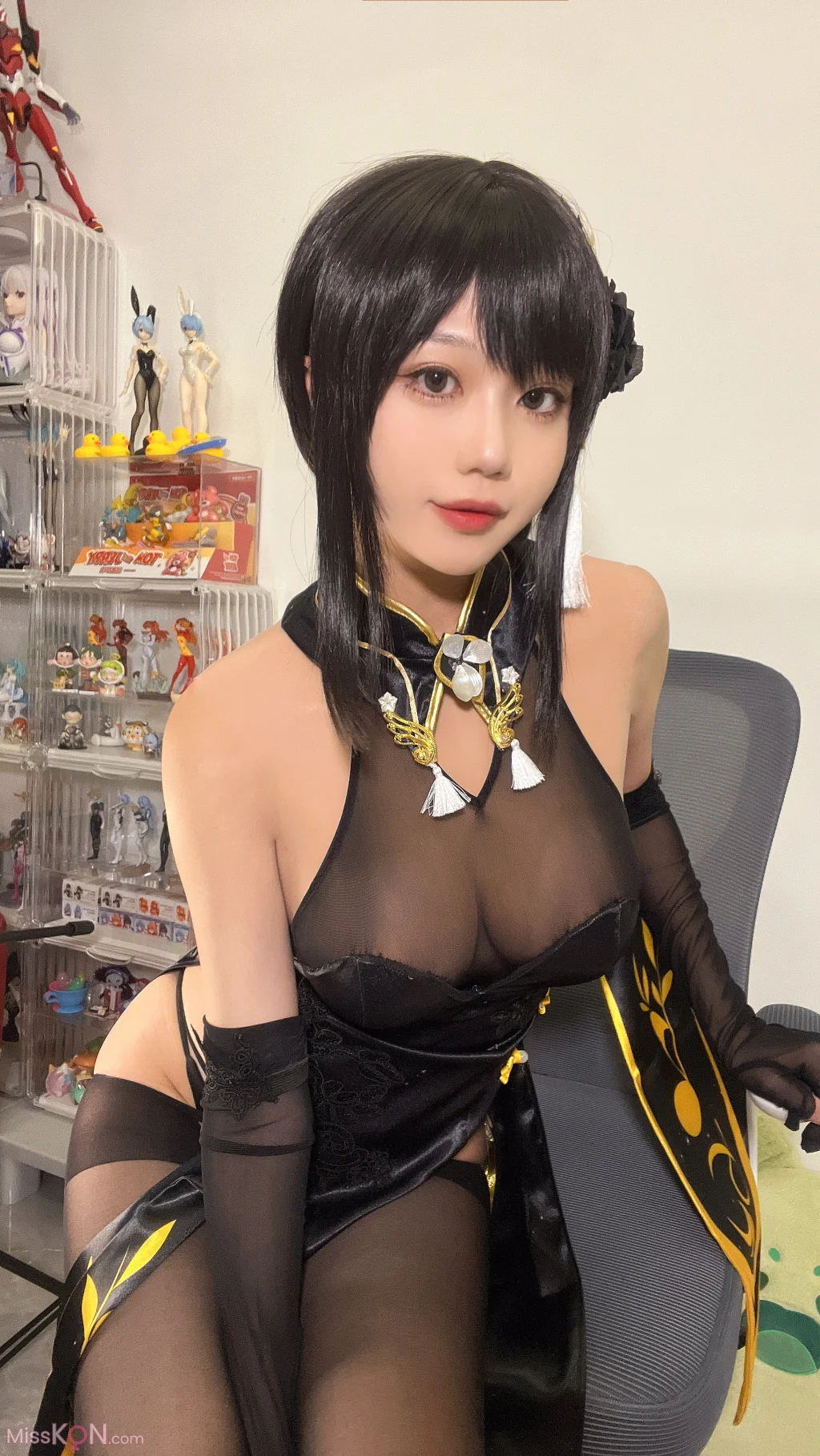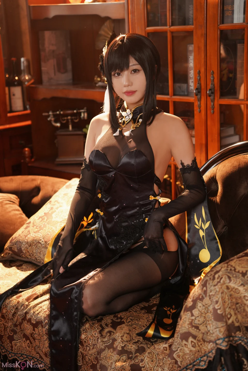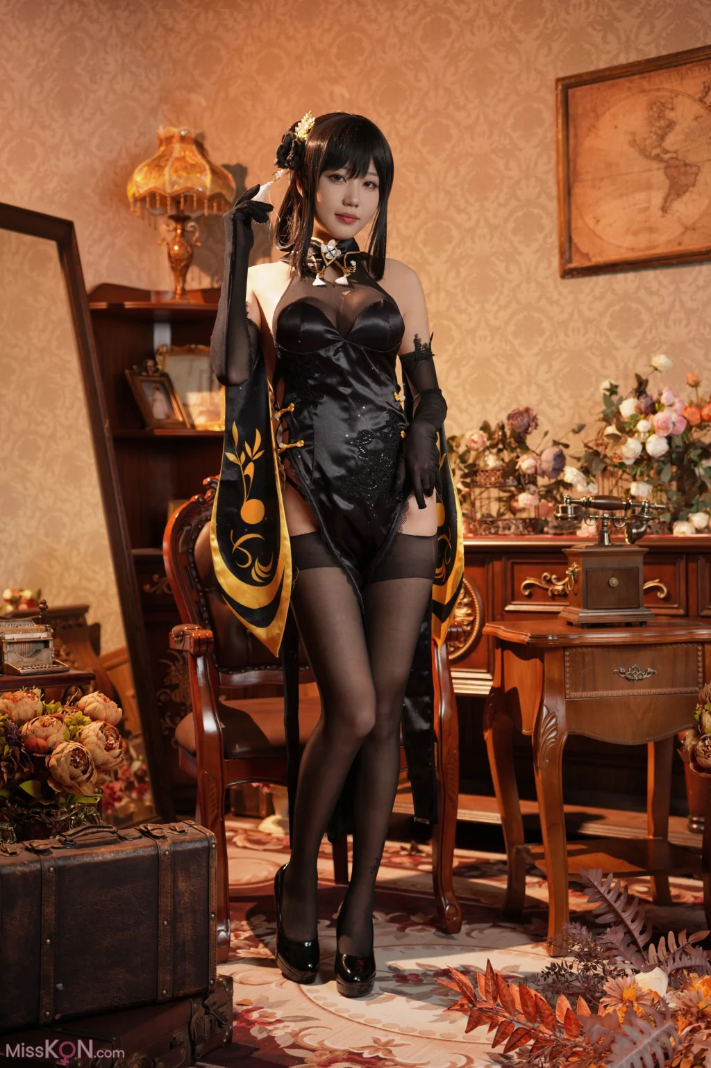 Coser@无影喵喵Ghost: 镇海黑旗袍 (131 photos + 4 videos)