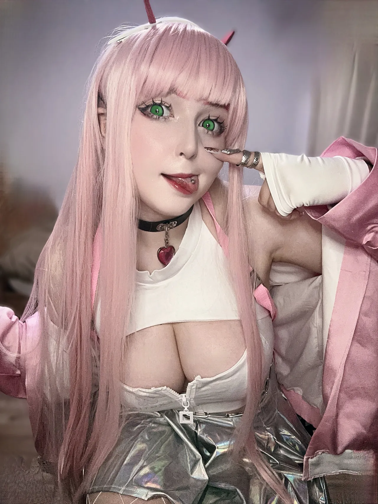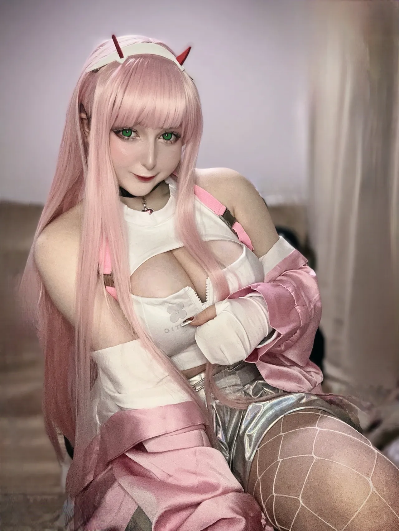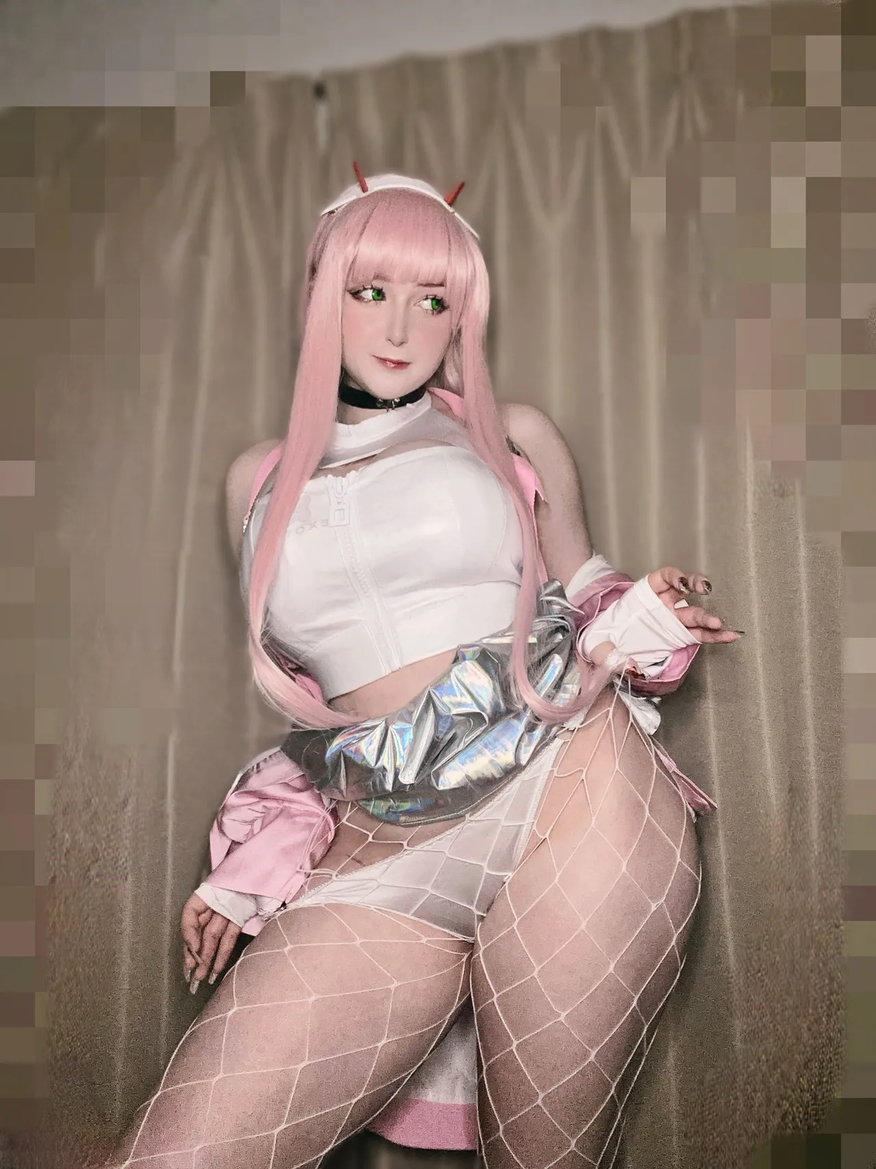 Tags: collar, fishnets, goddess of victory nikke, hentai cosplay, horns, Makeup, painted nails, pantyhose, very long hair, viper