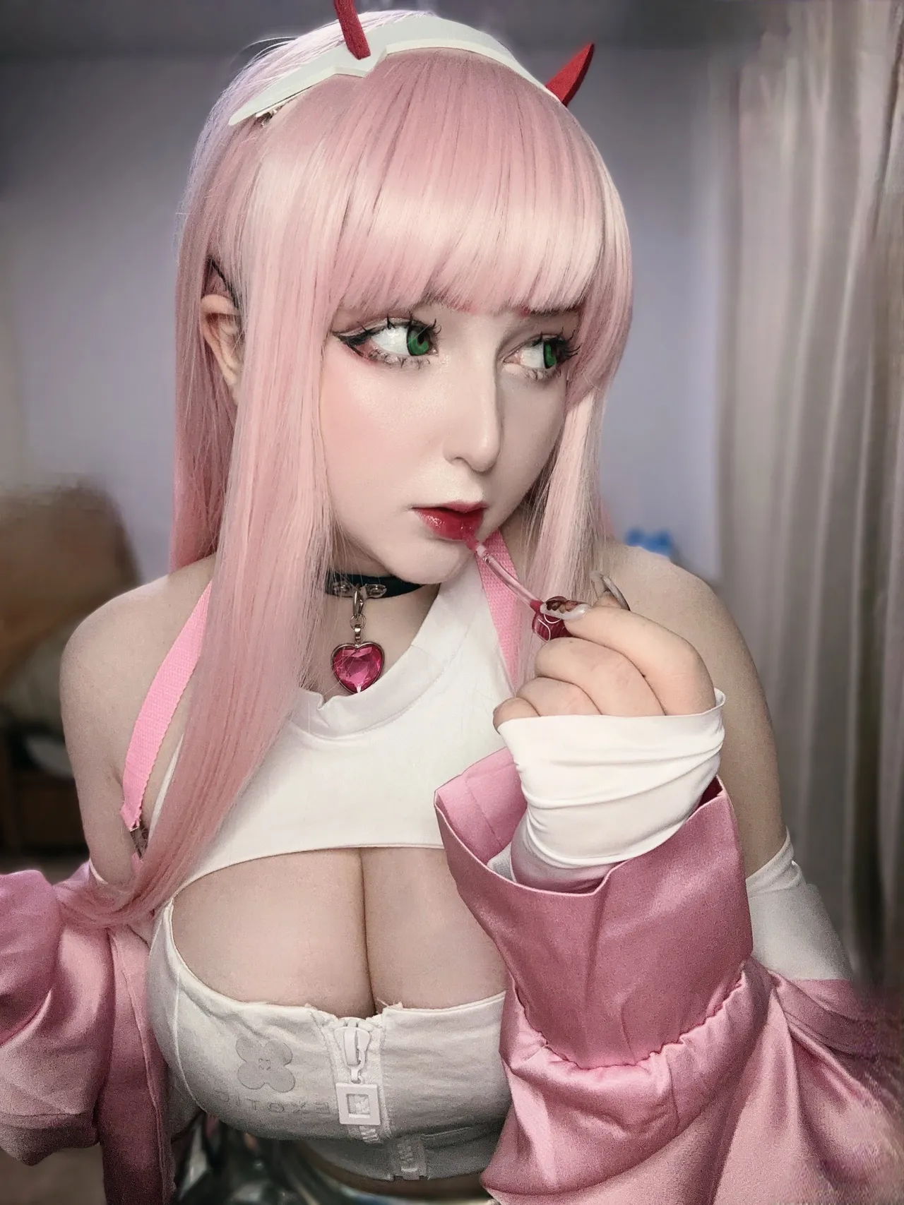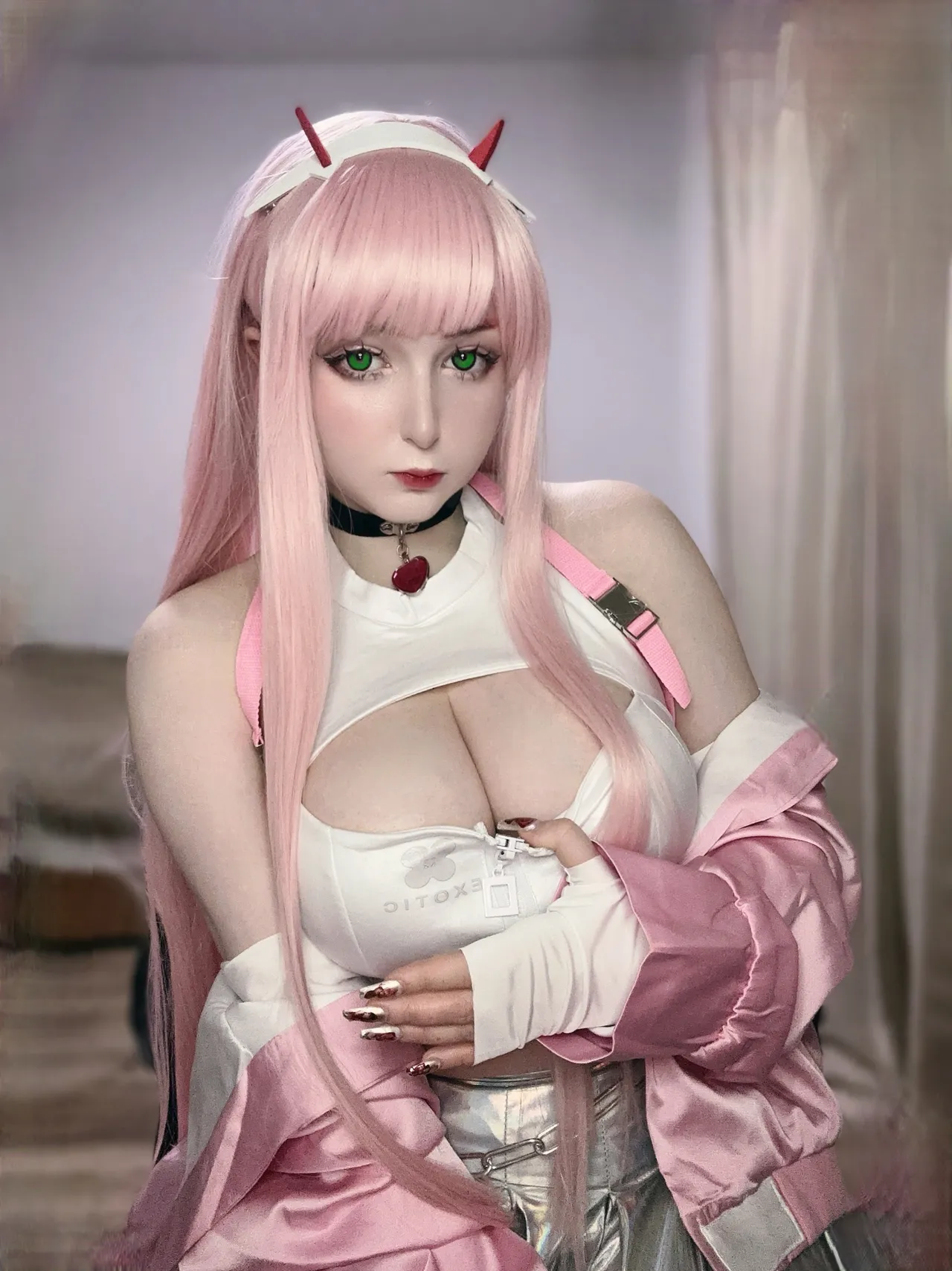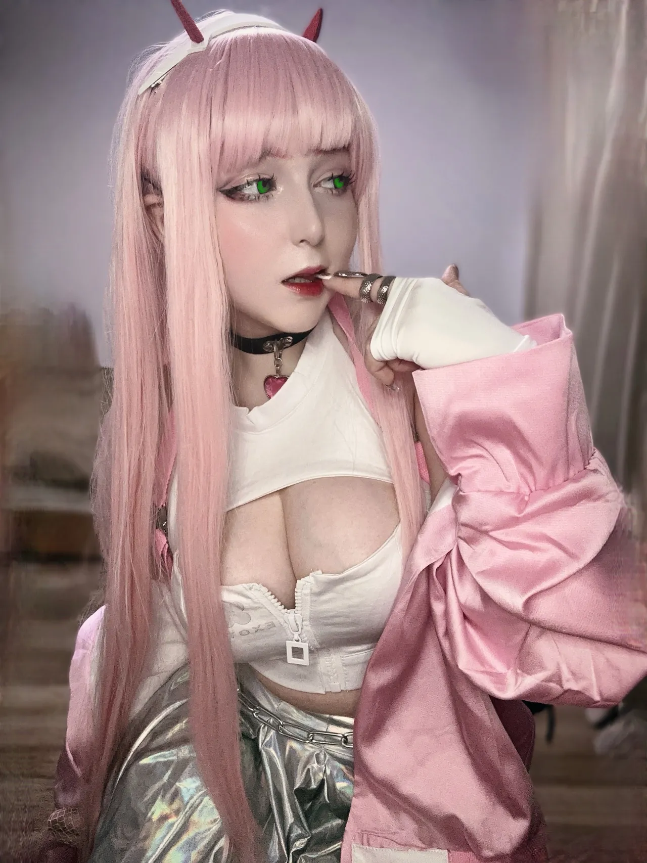 Tags: collar, fishnets, goddess of victory nikke, hentai cosplay, horns, Makeup, painted nails, pantyhose, very long hair, viper