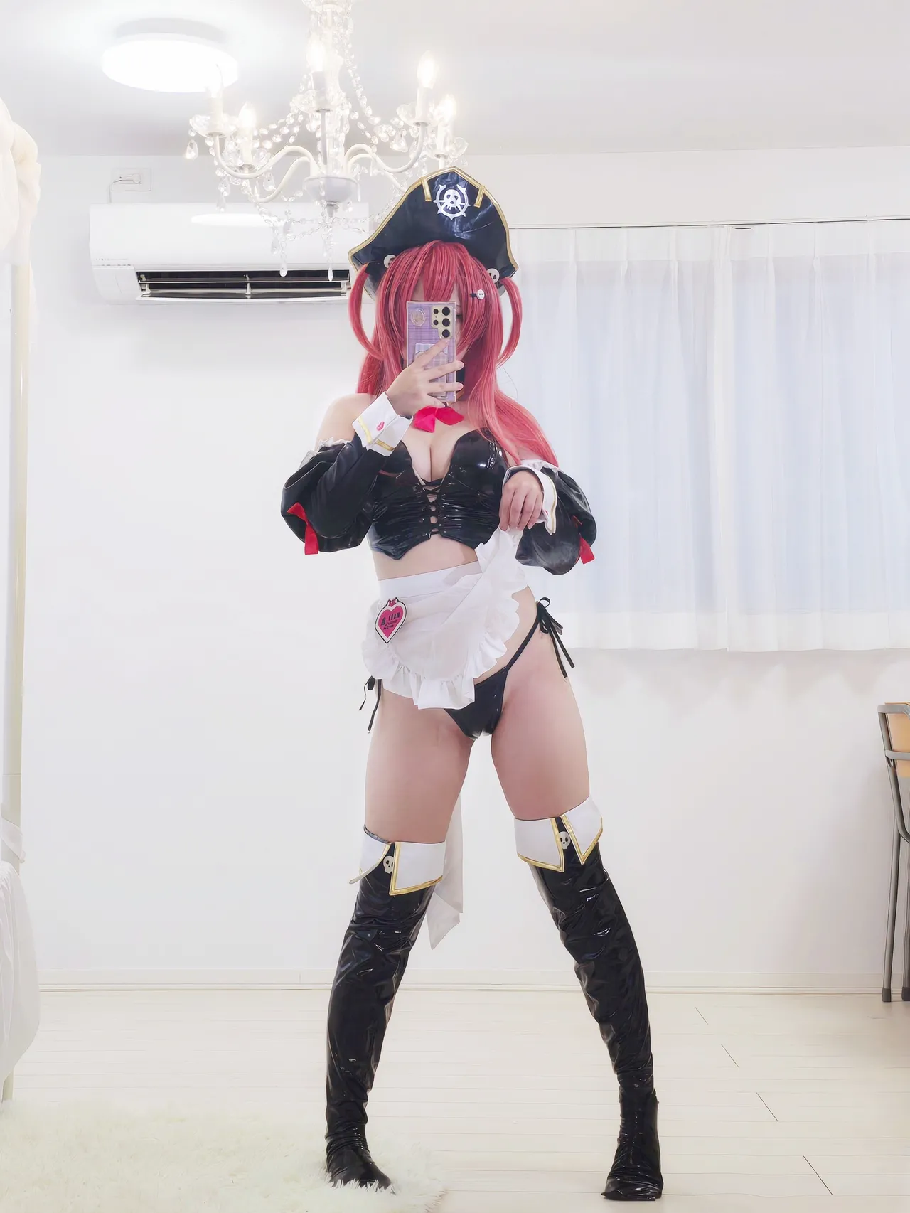 Tags: apron, detached sleeves, filming, goddess of victory nikke, hentai cosplay, latex, Makeup, Mast, stockings, thigh high boots
