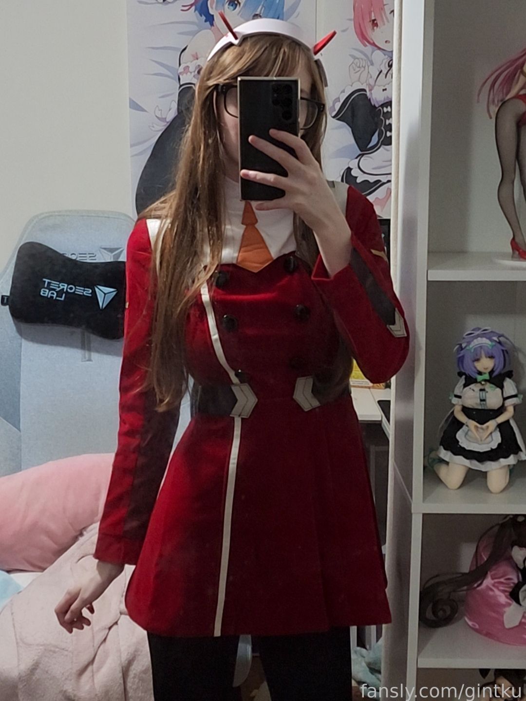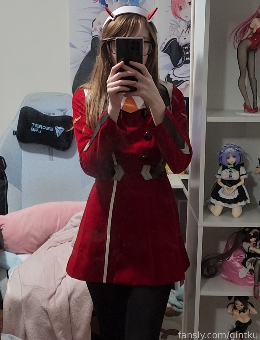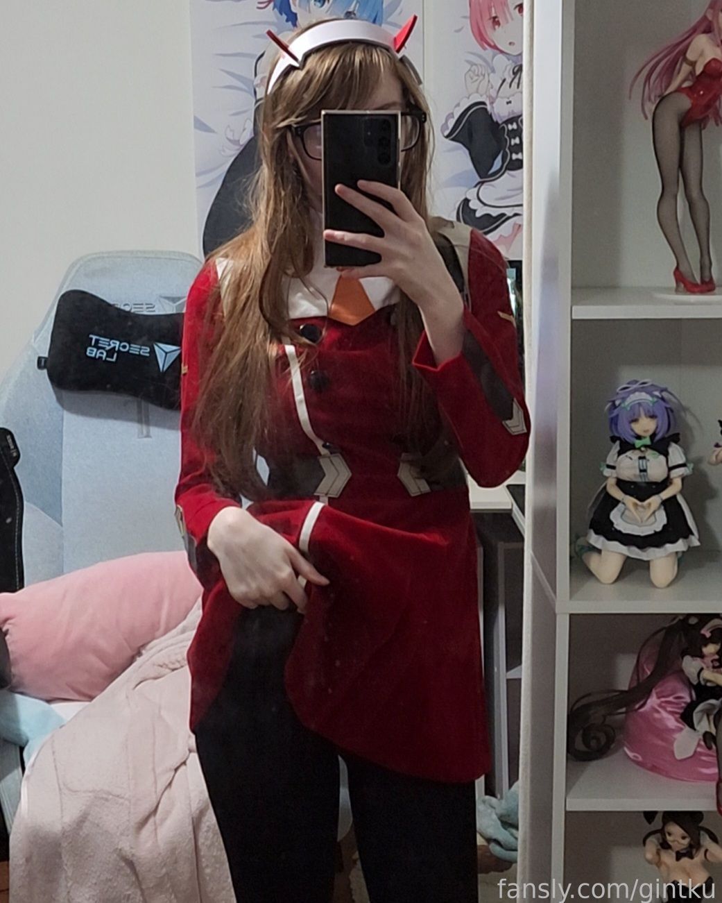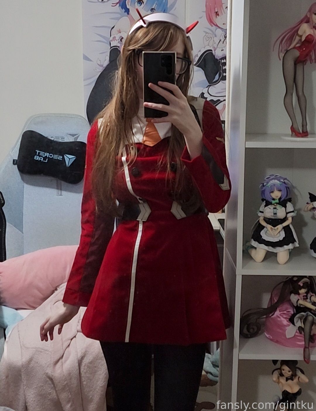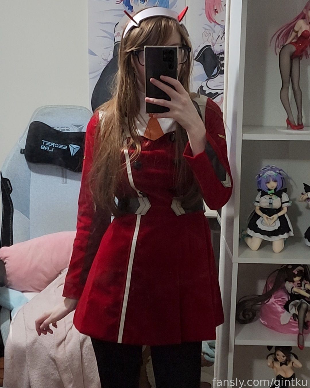 Tags: Darling in the Franxx, Glasses, hentai cosplay, horns, Makeup, sole female, stockings, Zero Two