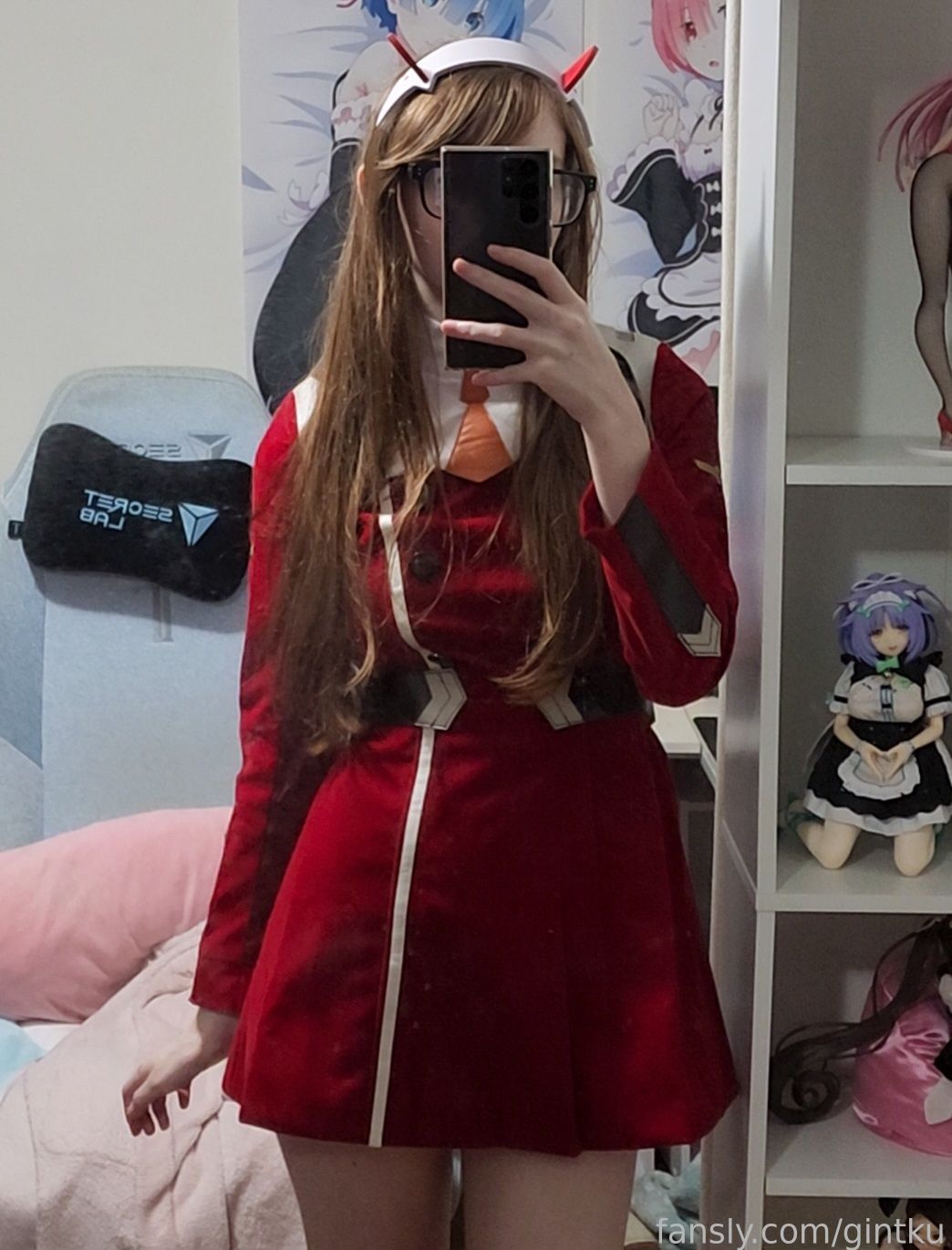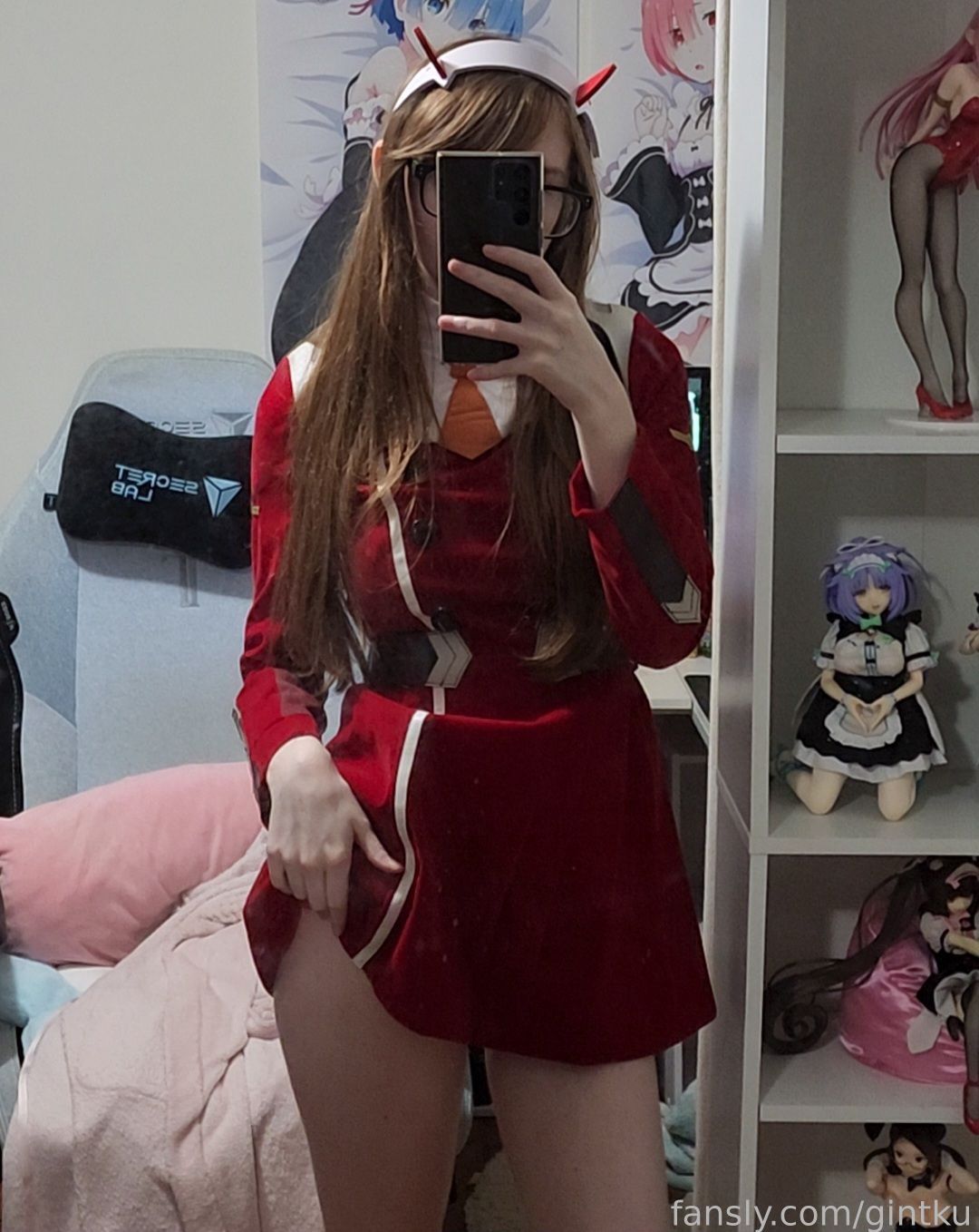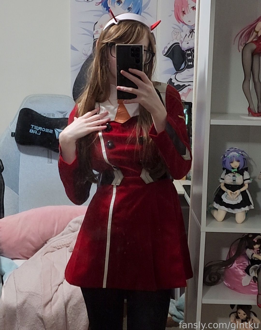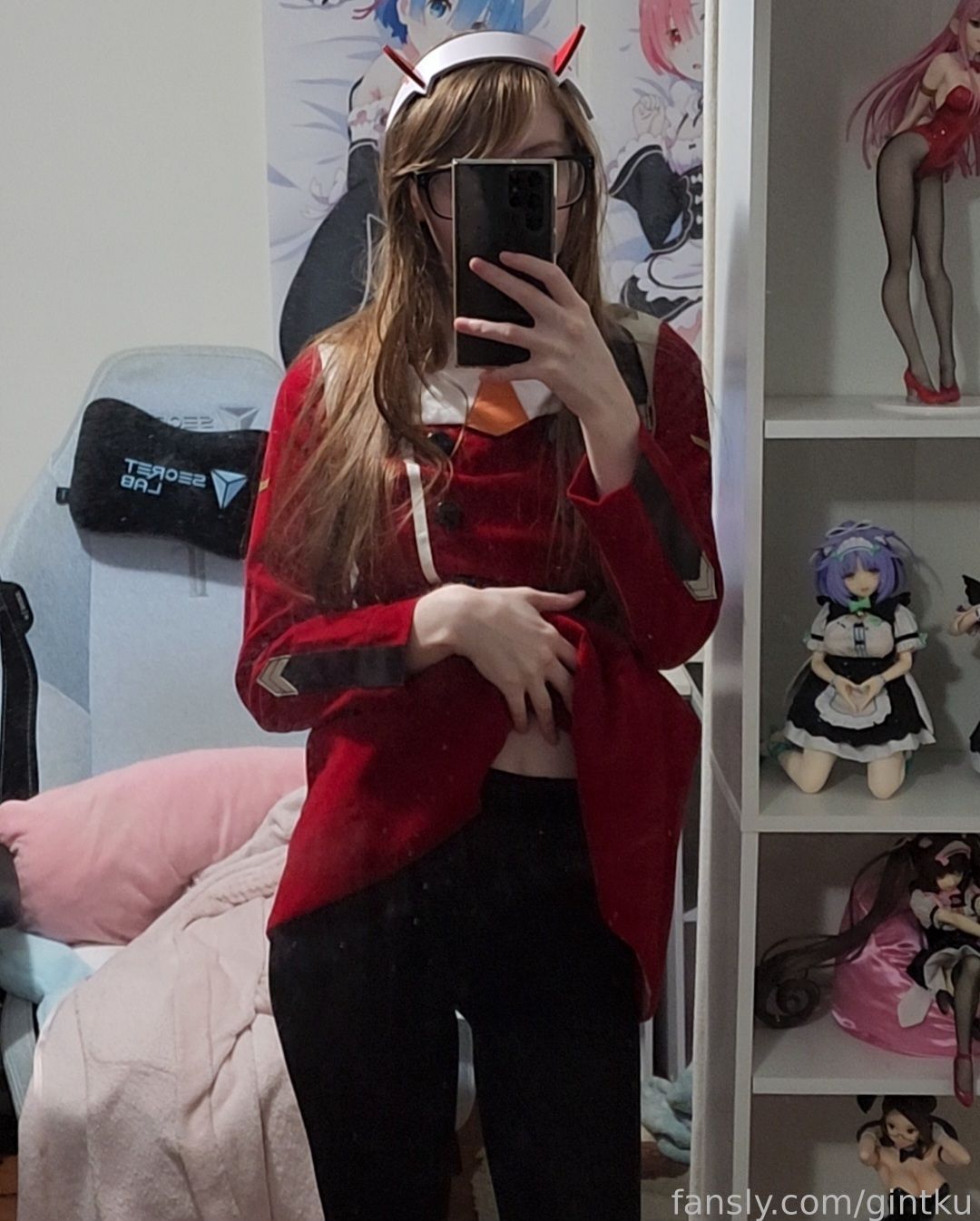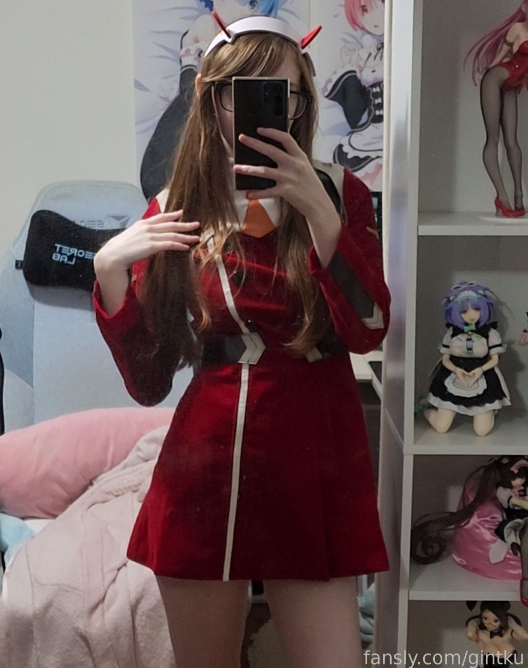 Tags: Darling in the Franxx, Glasses, hentai cosplay, horns, Makeup, sole female, stockings, Zero Two