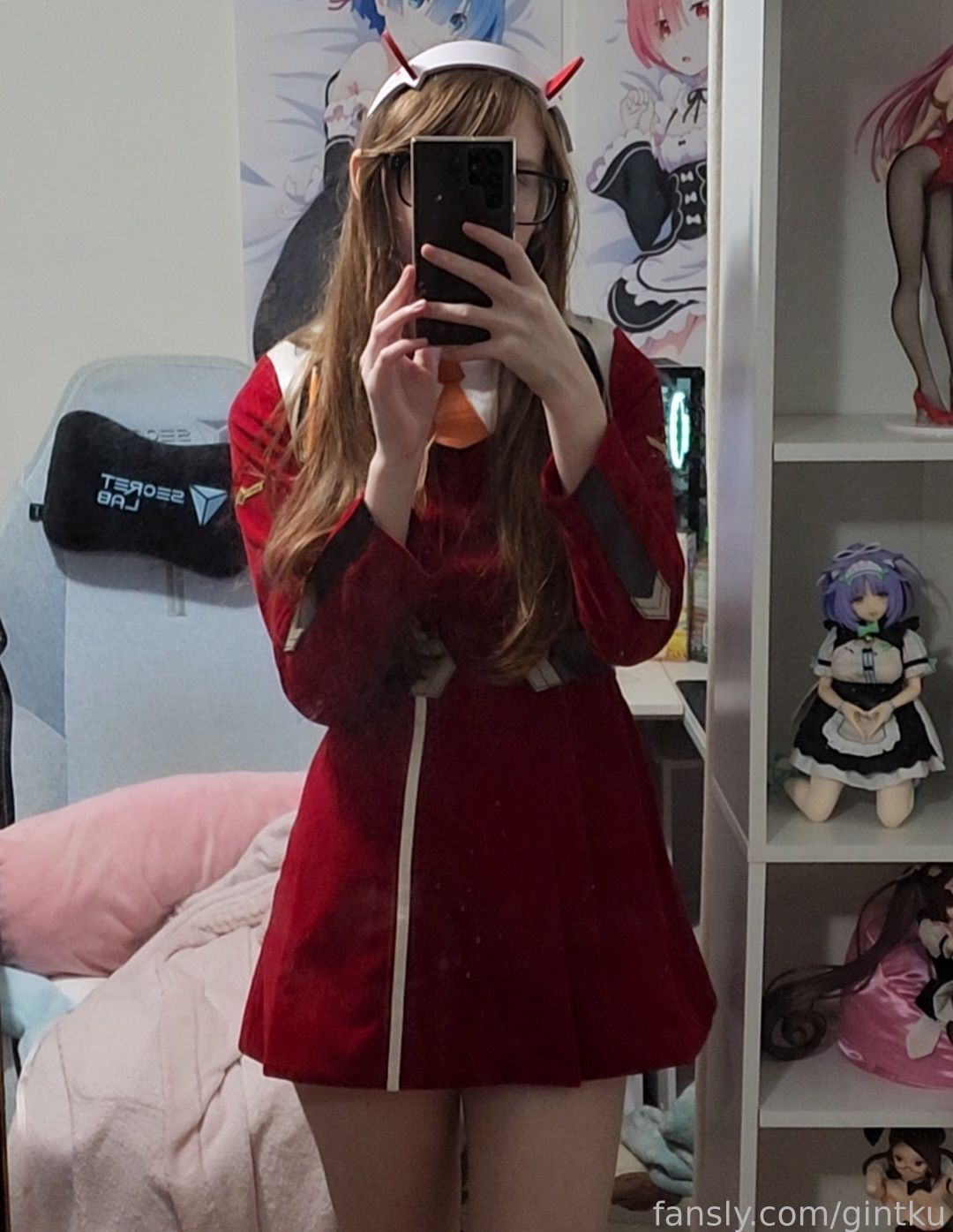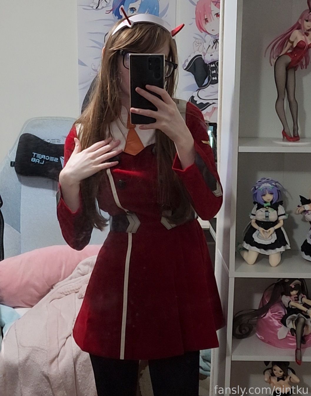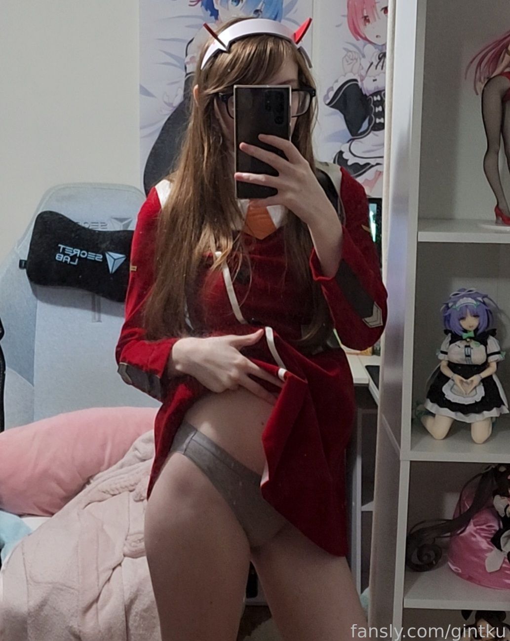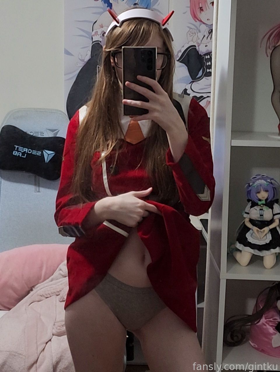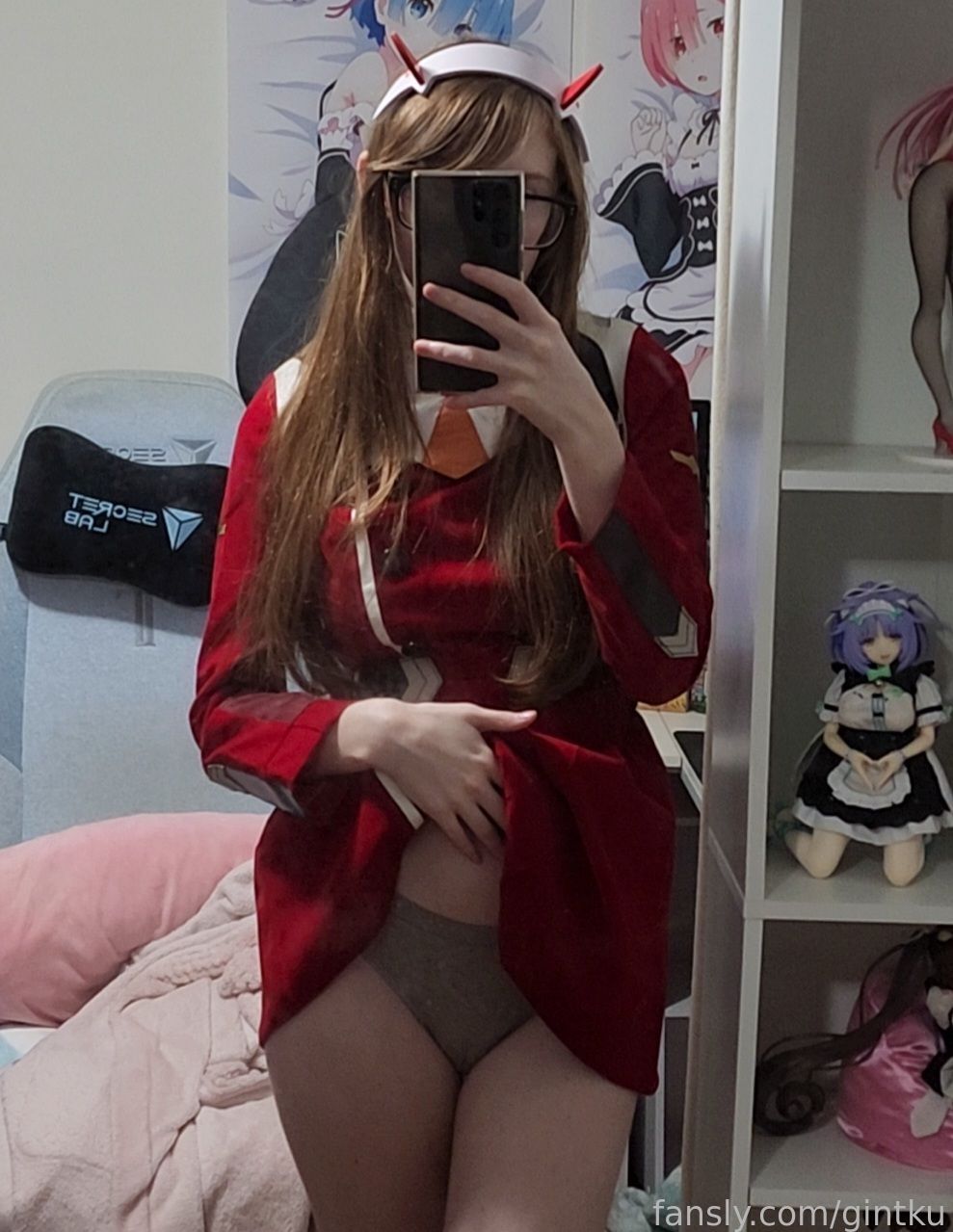 Tags: Darling in the Franxx, Glasses, hentai cosplay, horns, Makeup, sole female, stockings, Zero Two