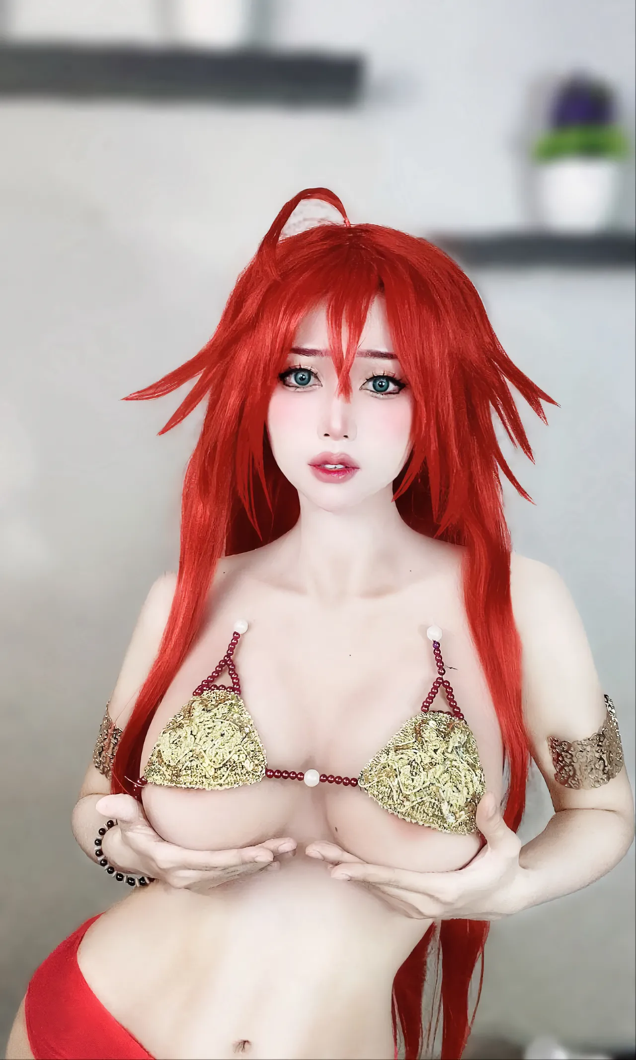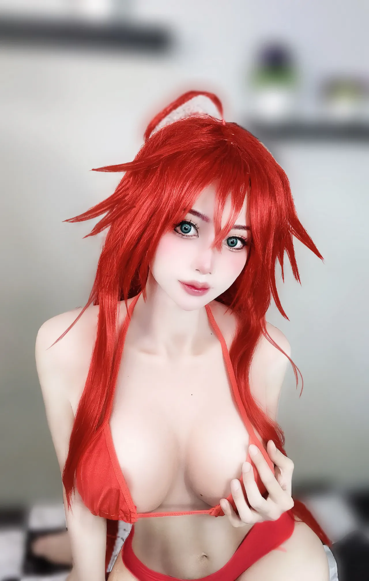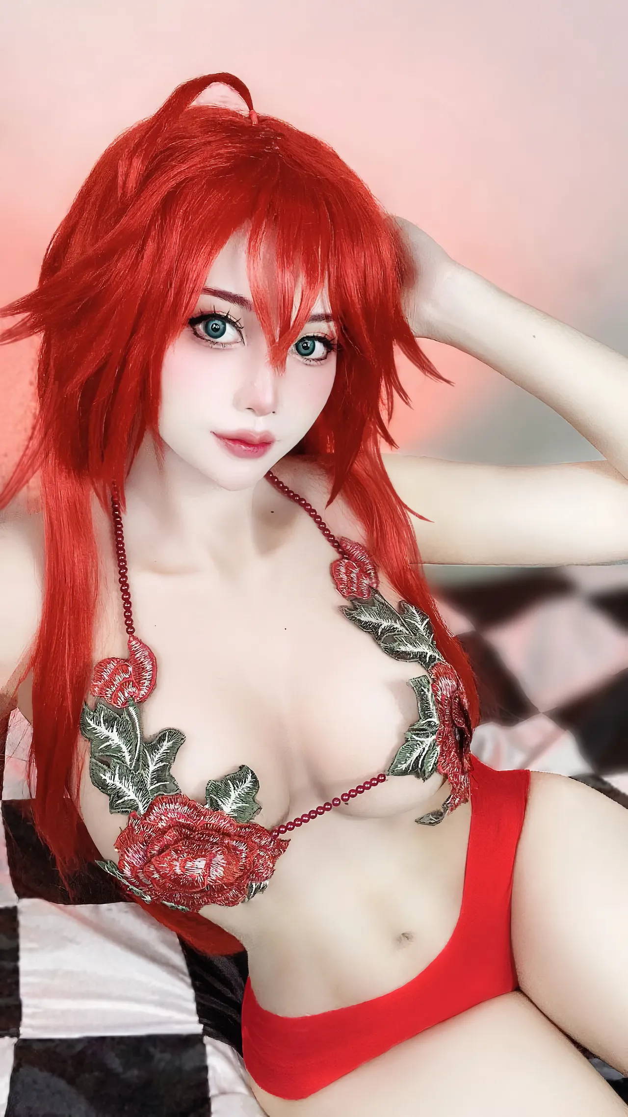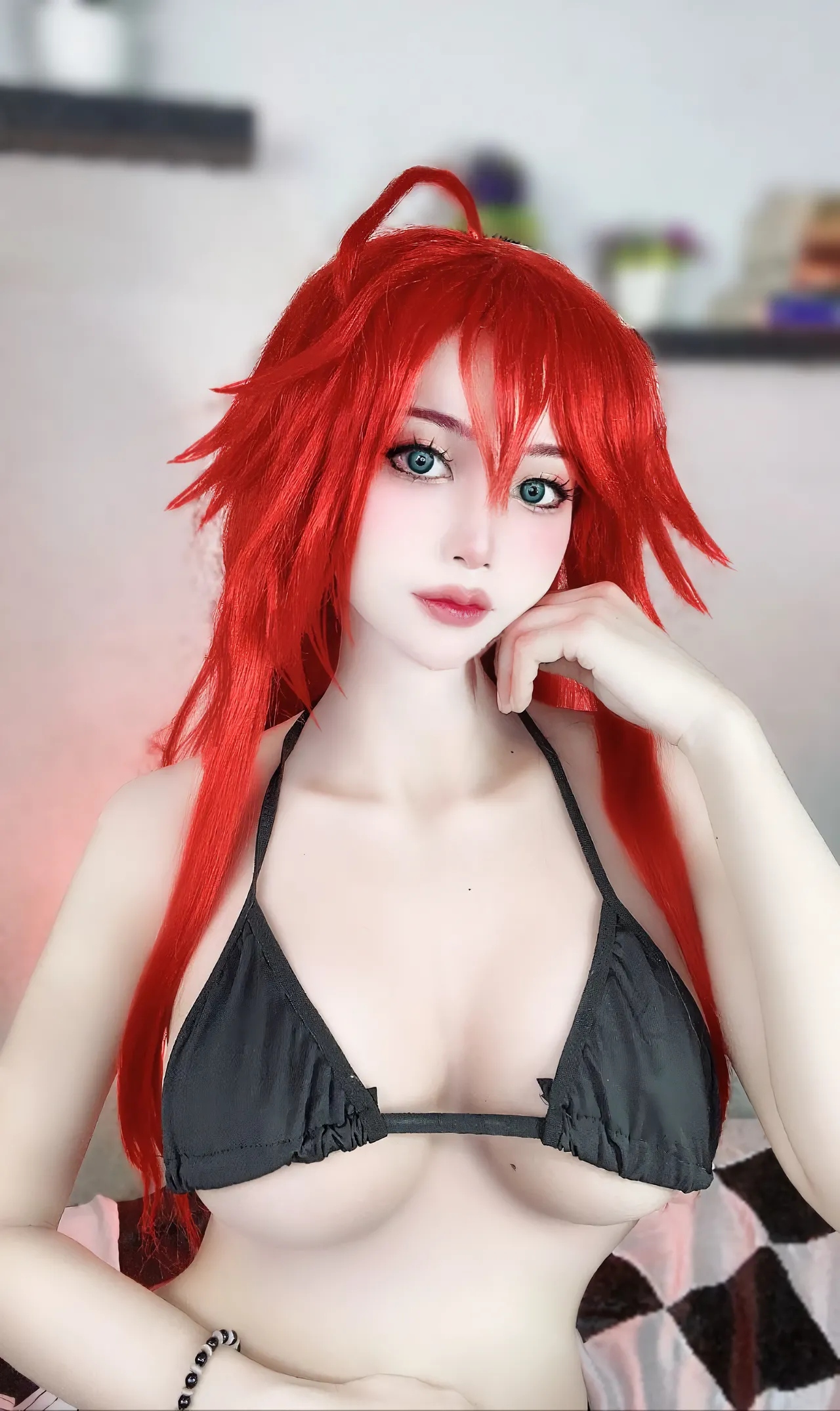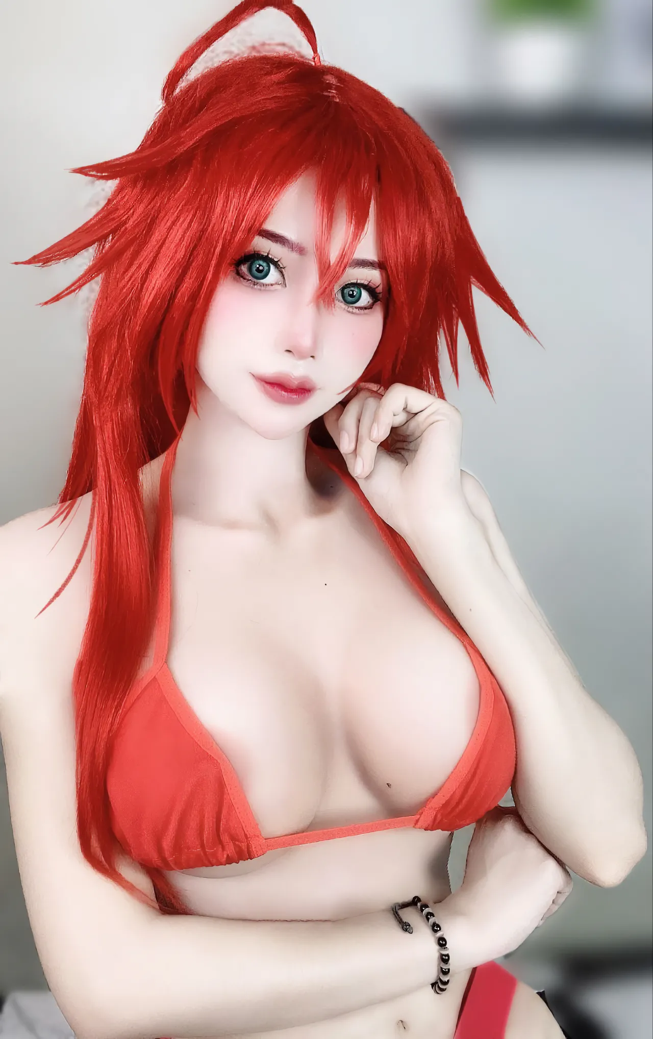 Tags: big breasts, Bikini, hentai cosplay, highschool dxd, Makeup, rias gremory, swimsuit, very long hair