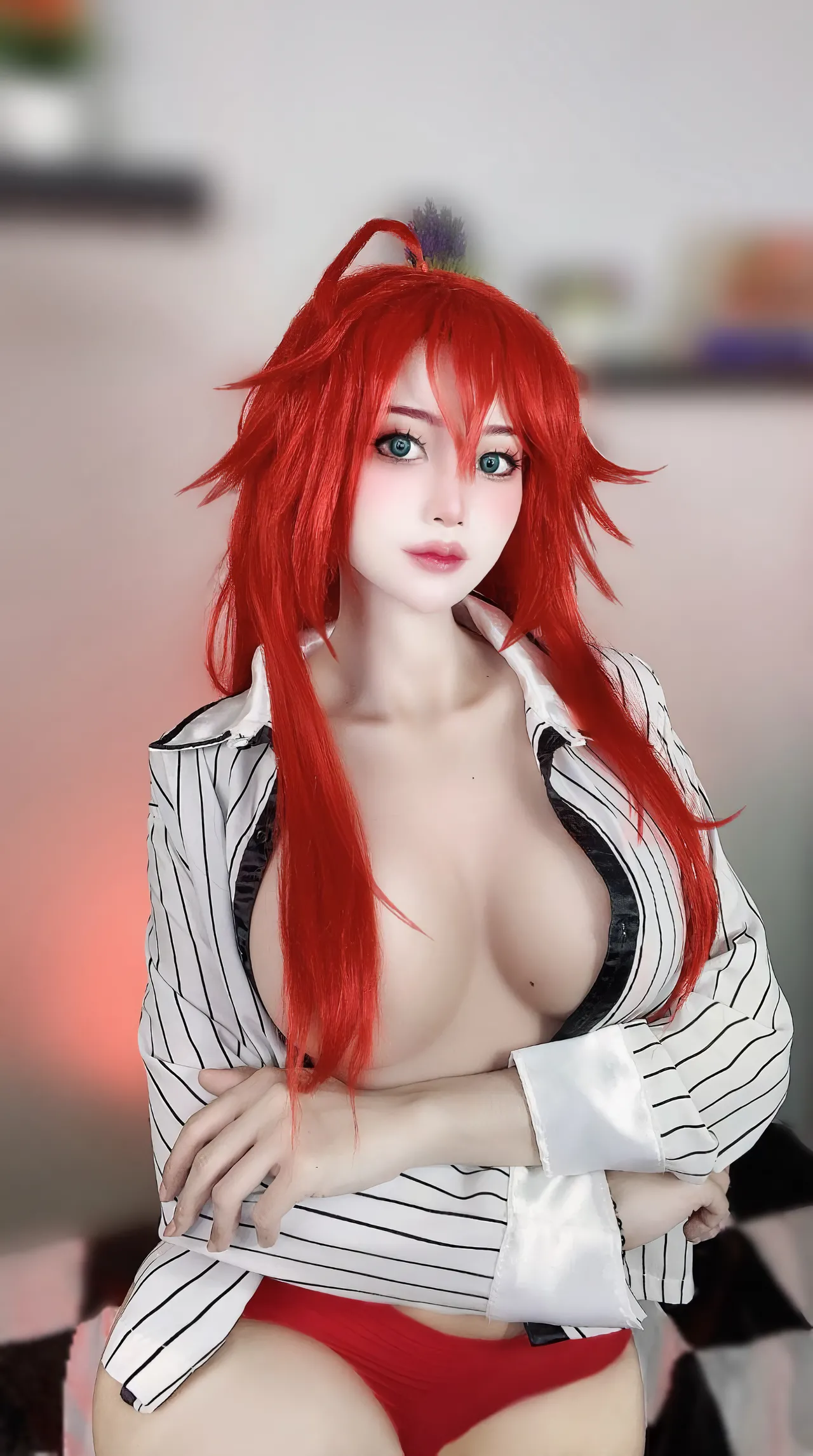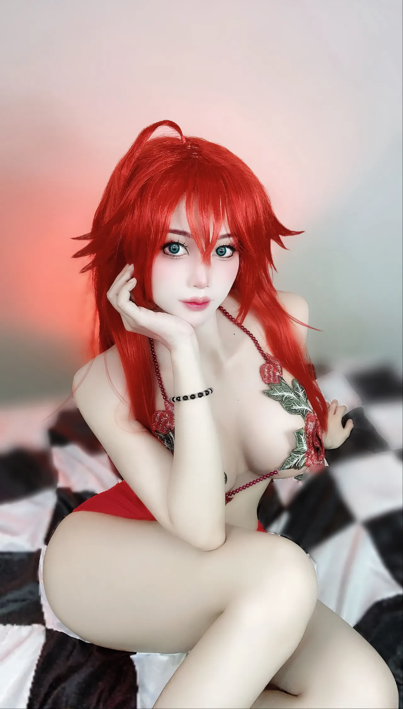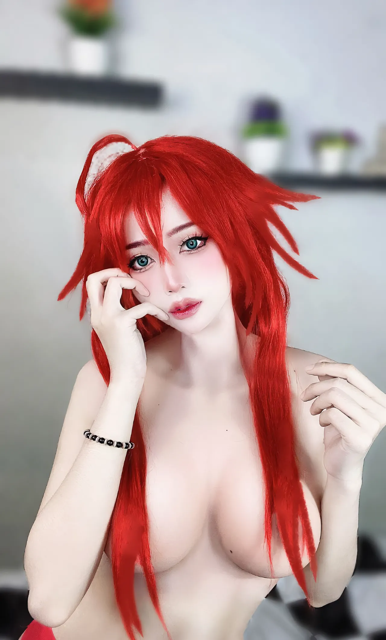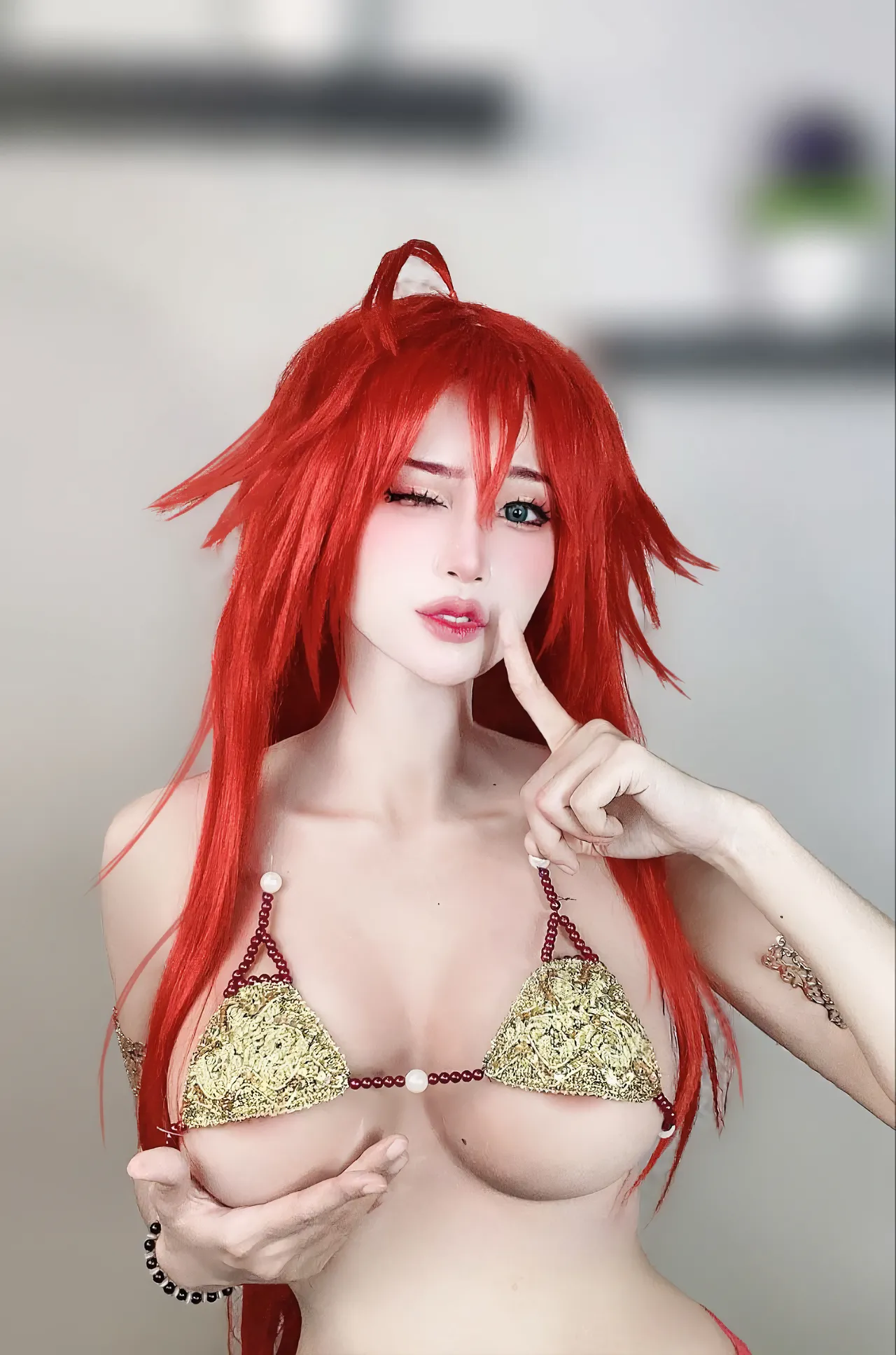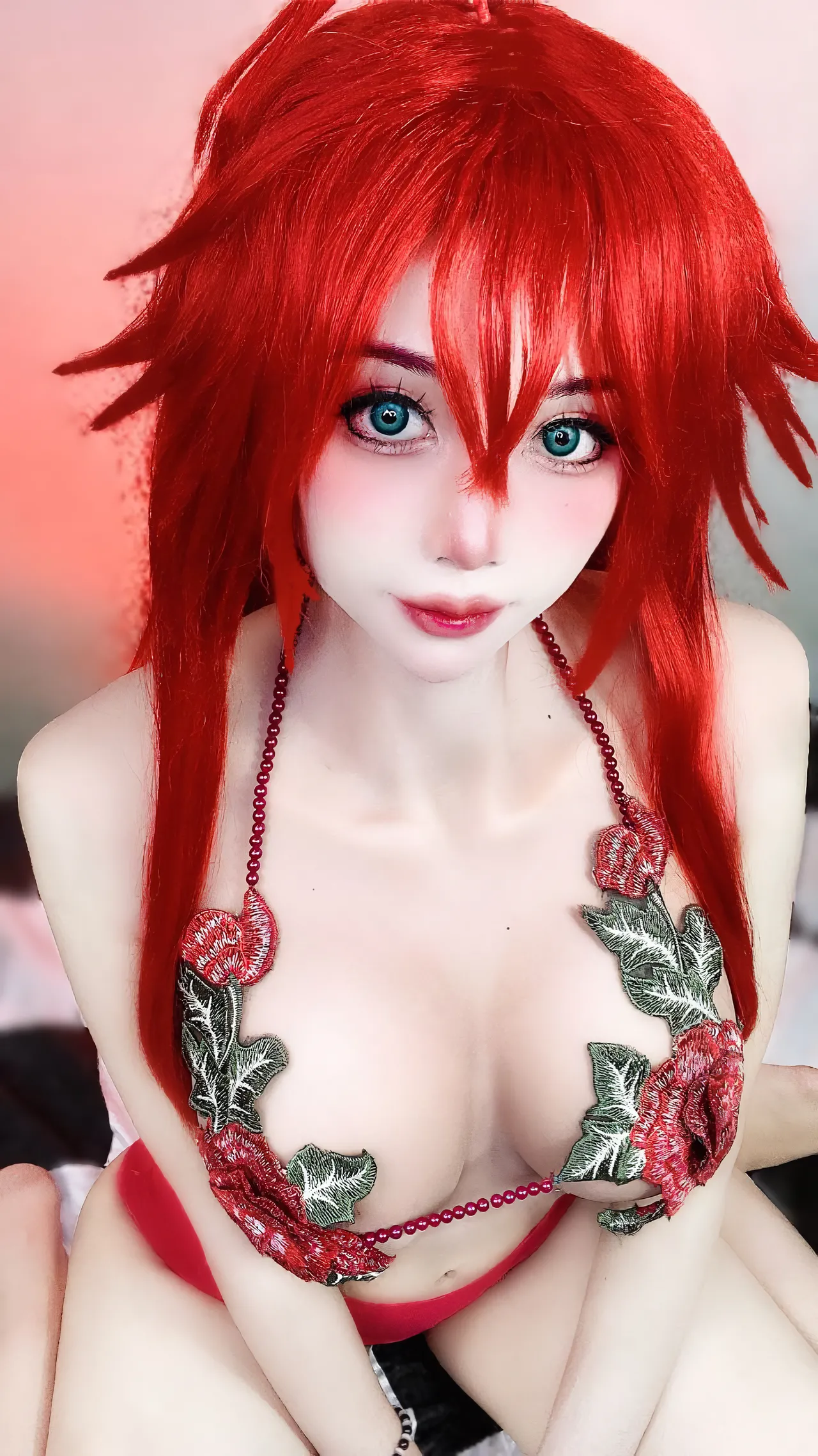 Tags: big breasts, Bikini, hentai cosplay, highschool dxd, Makeup, rias gremory, swimsuit, very long hair