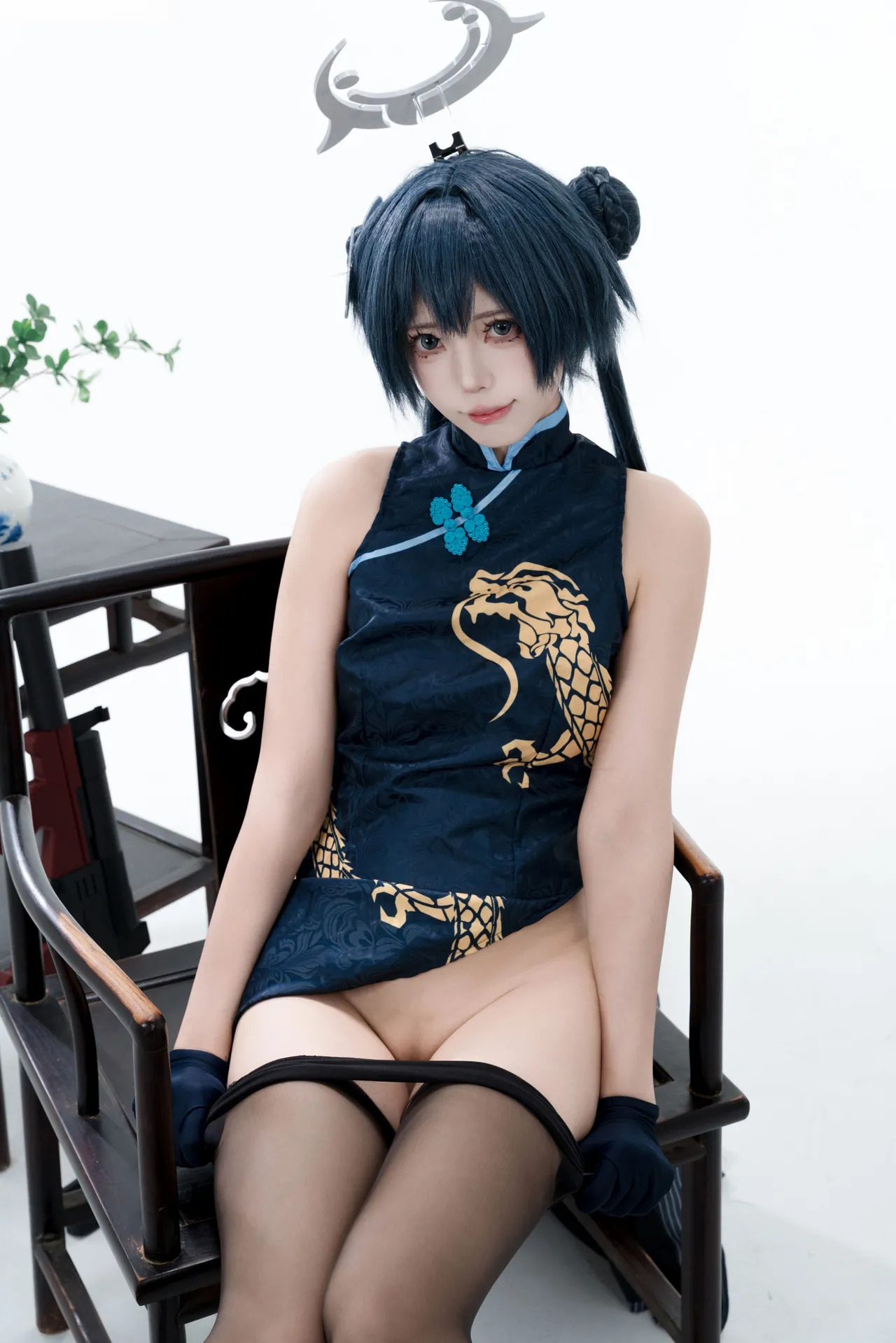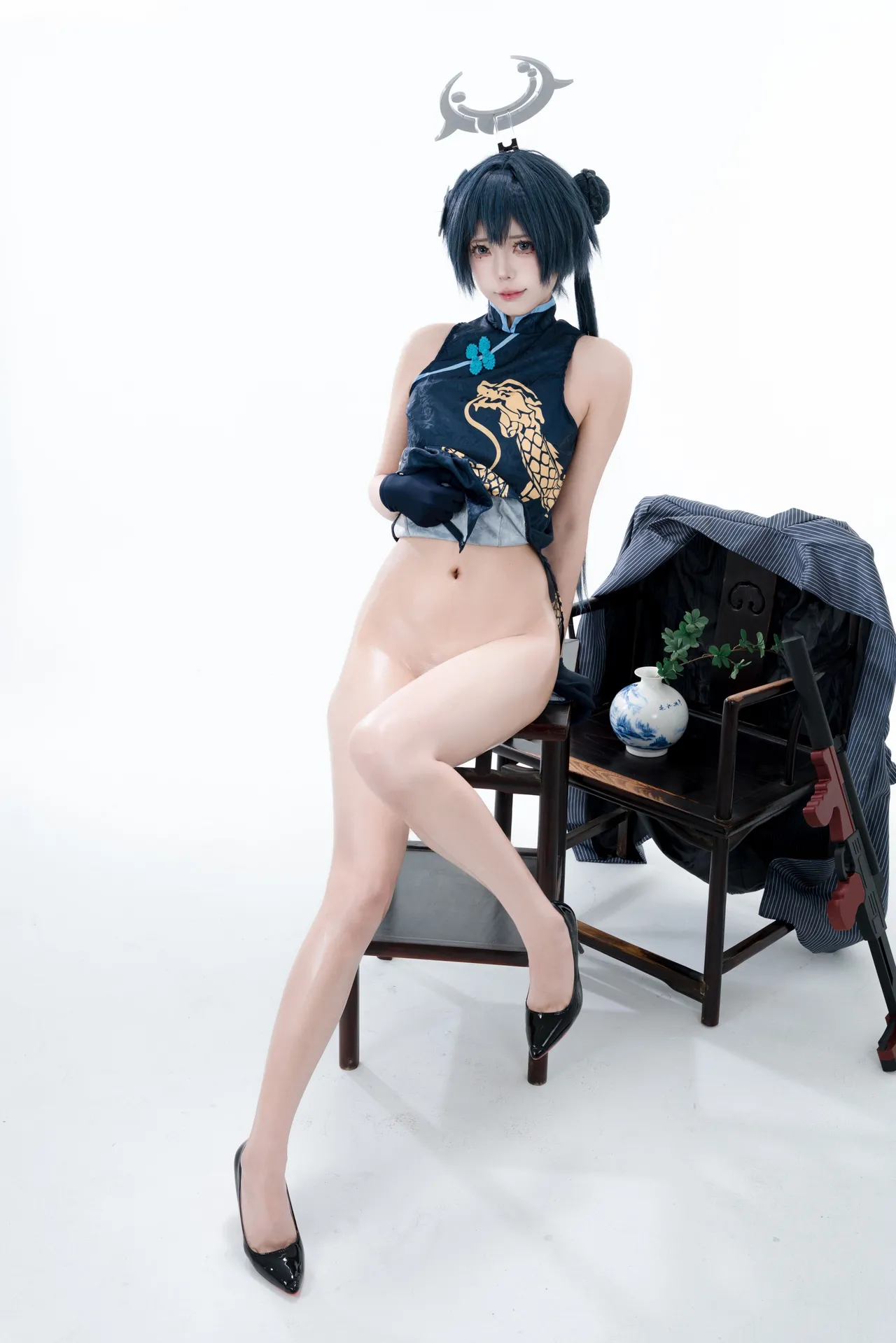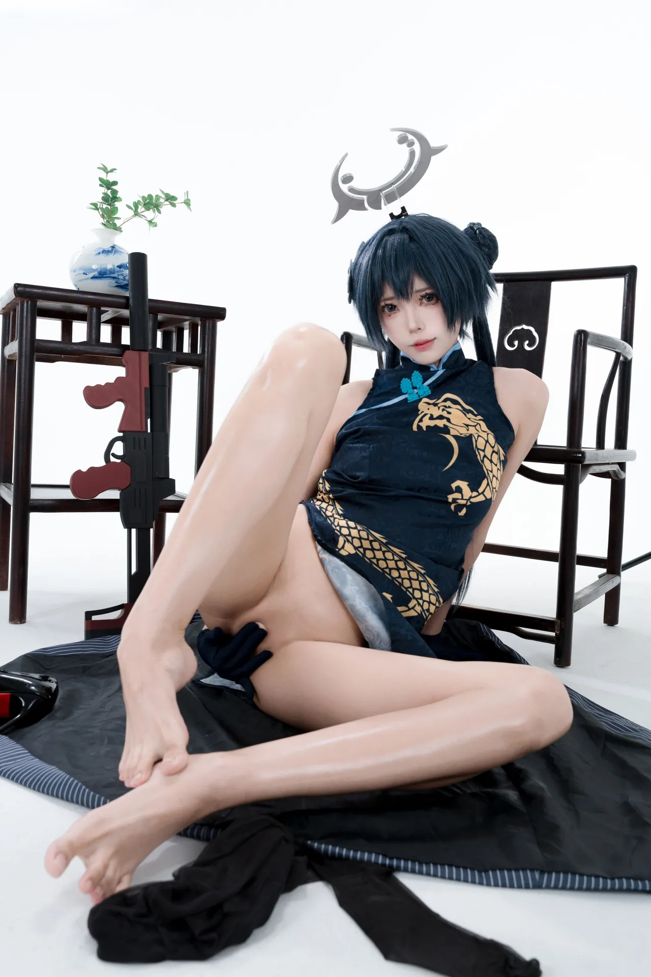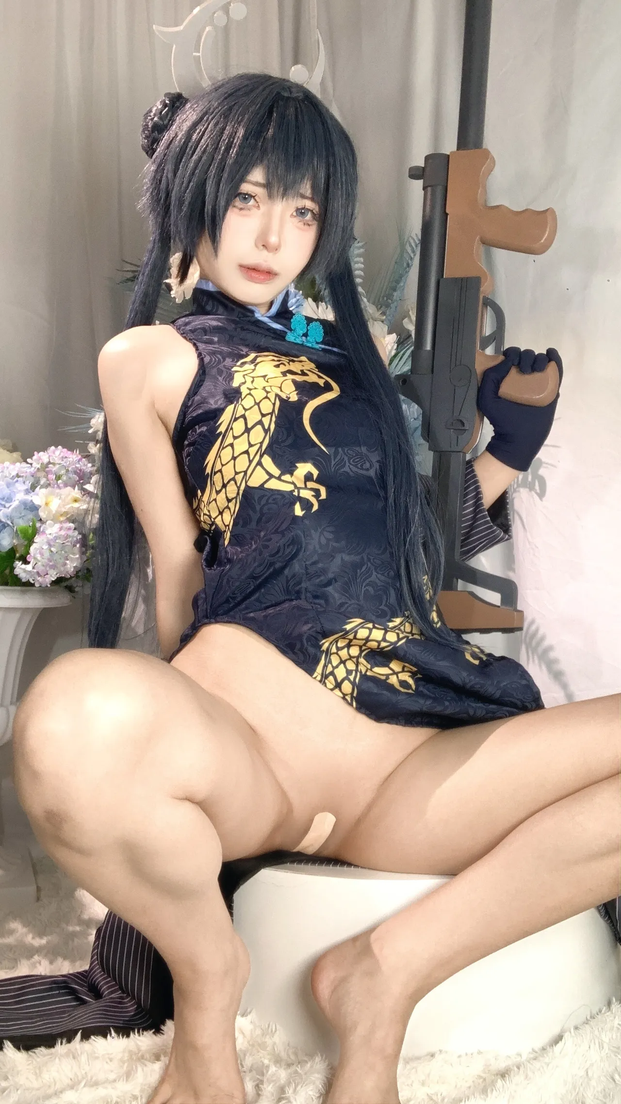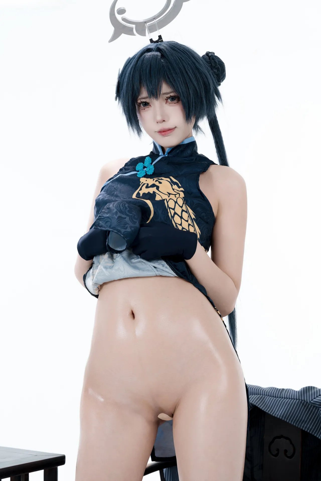 Tags: bandaid, Blue Archive, bukkake, chinese dress, gloves, hair buns, Halo, hentai cosplay, High Heels, kisaki ryuuge, Makeup, oil, pantyhose, pasties, twintails, vaginal sticker