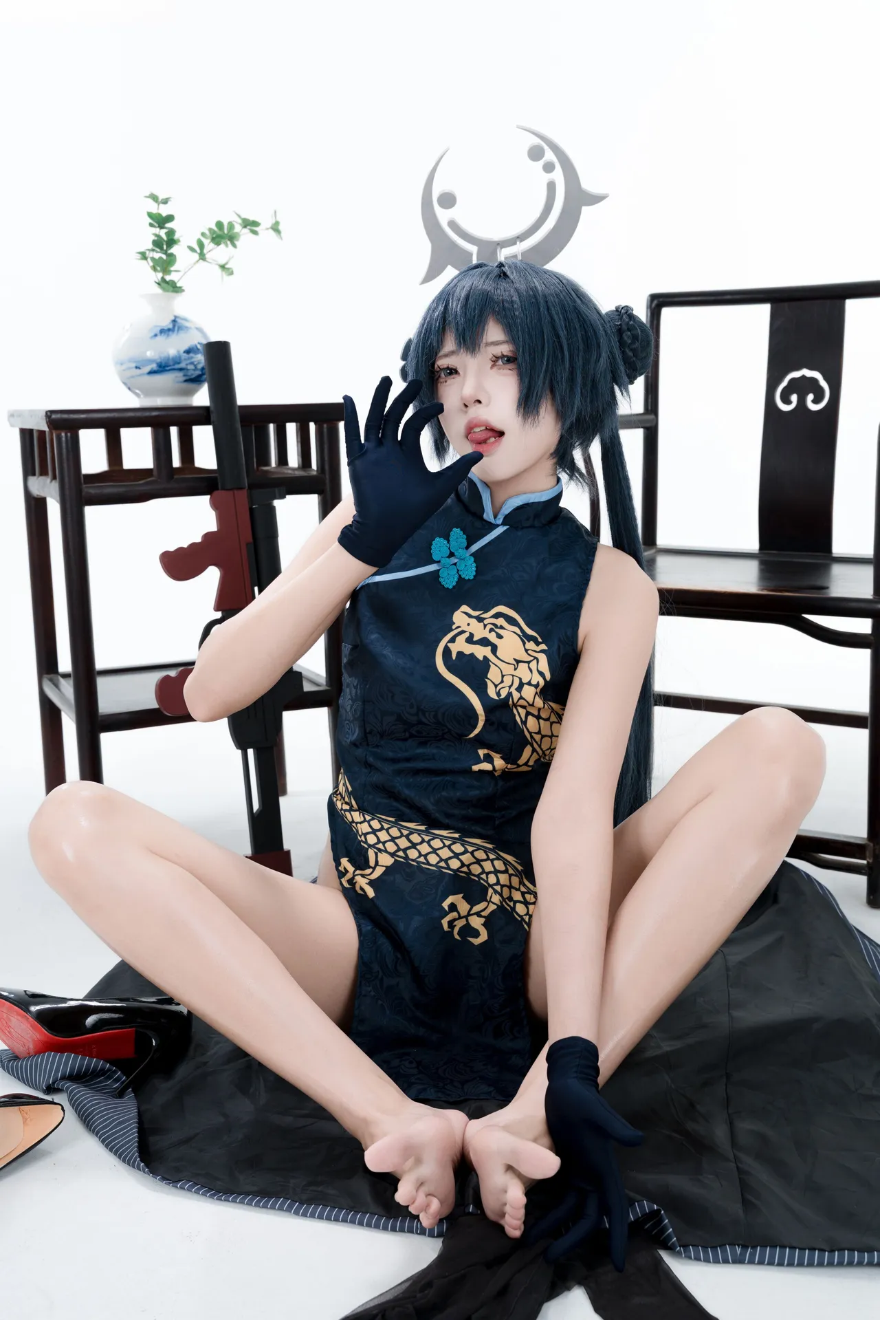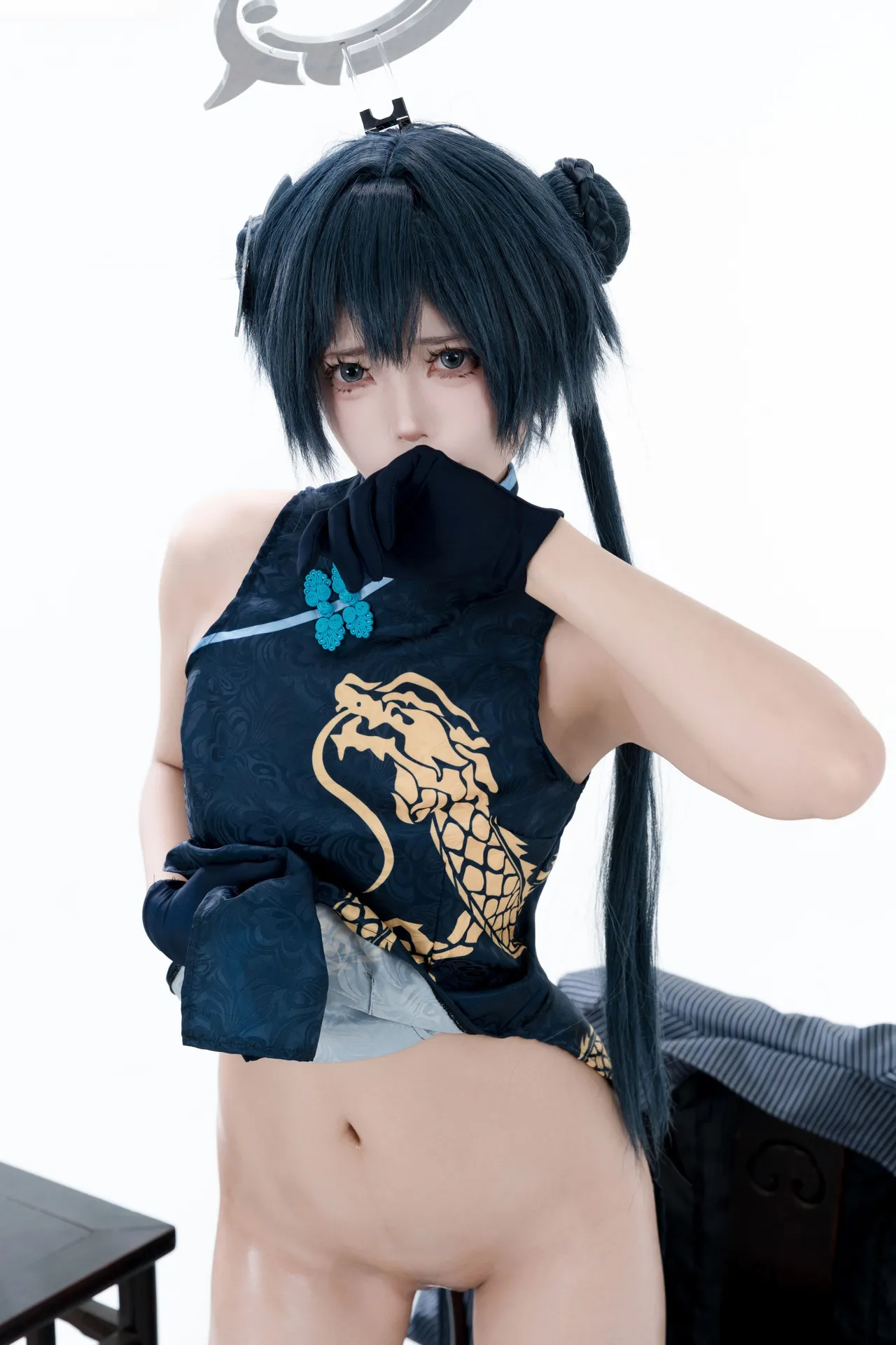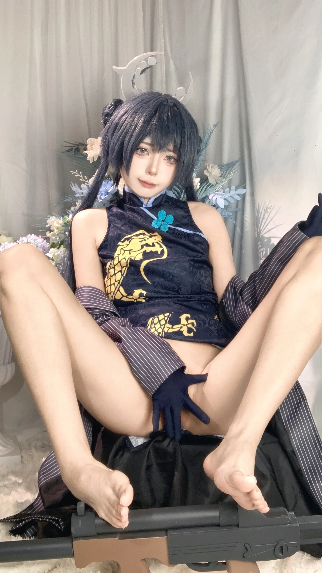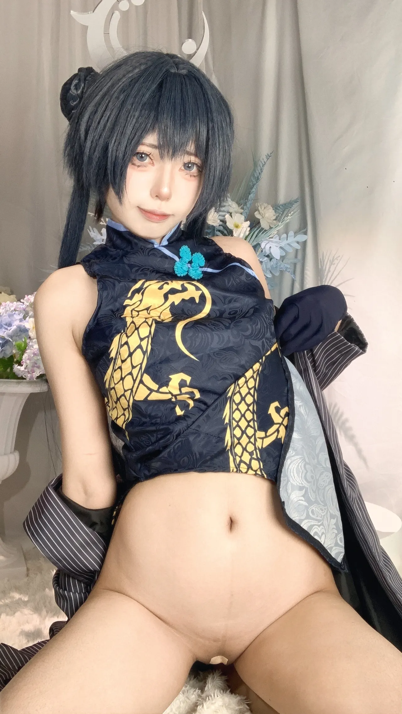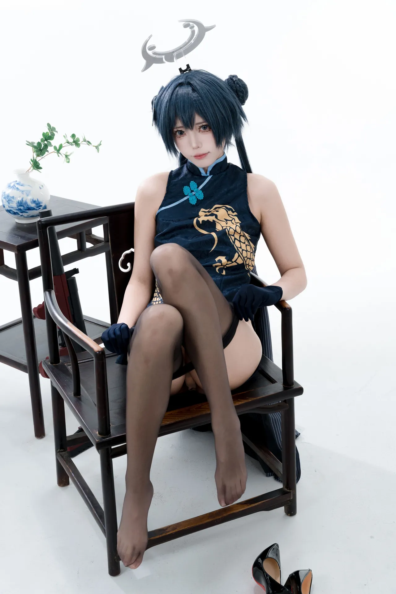 Tags: bandaid, Blue Archive, bukkake, chinese dress, gloves, hair buns, Halo, hentai cosplay, High Heels, kisaki ryuuge, Makeup, oil, pantyhose, pasties, twintails, vaginal sticker