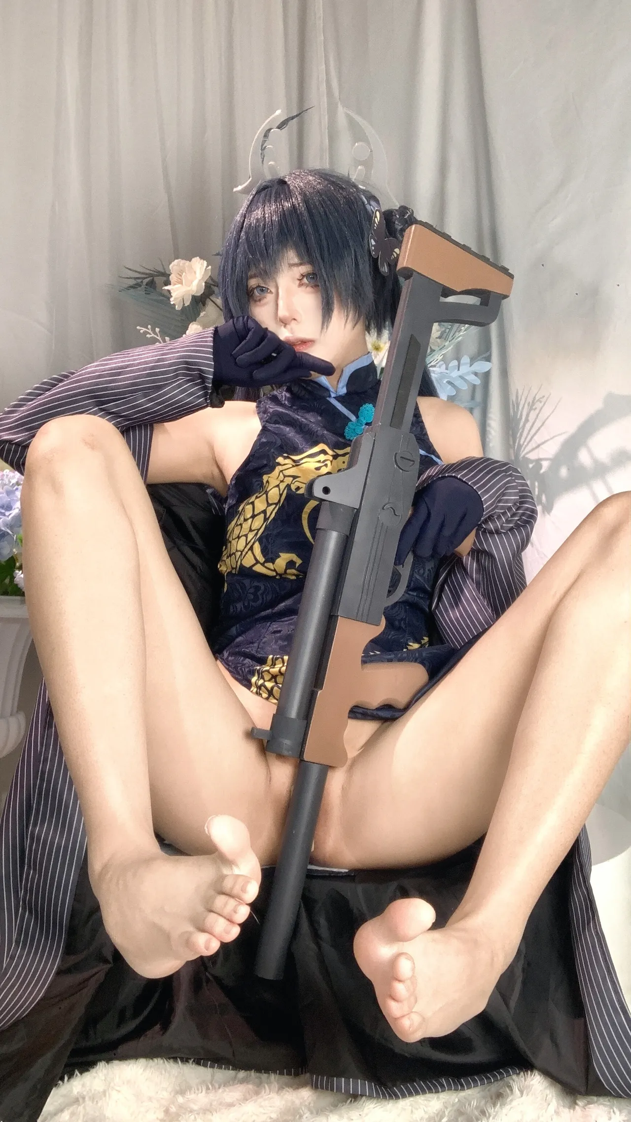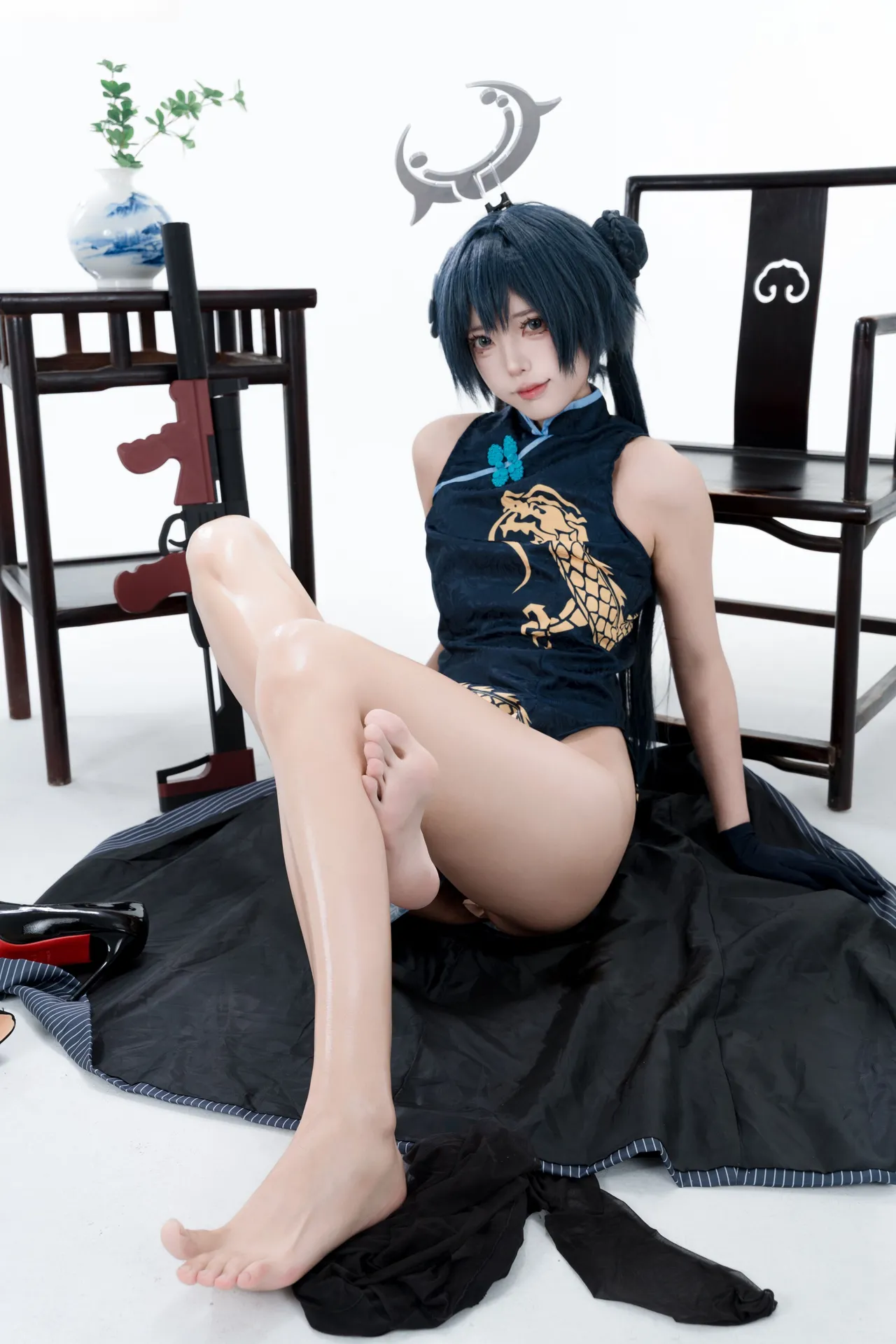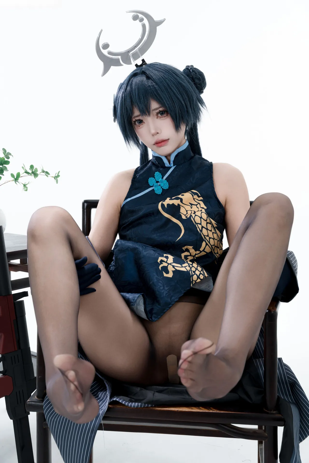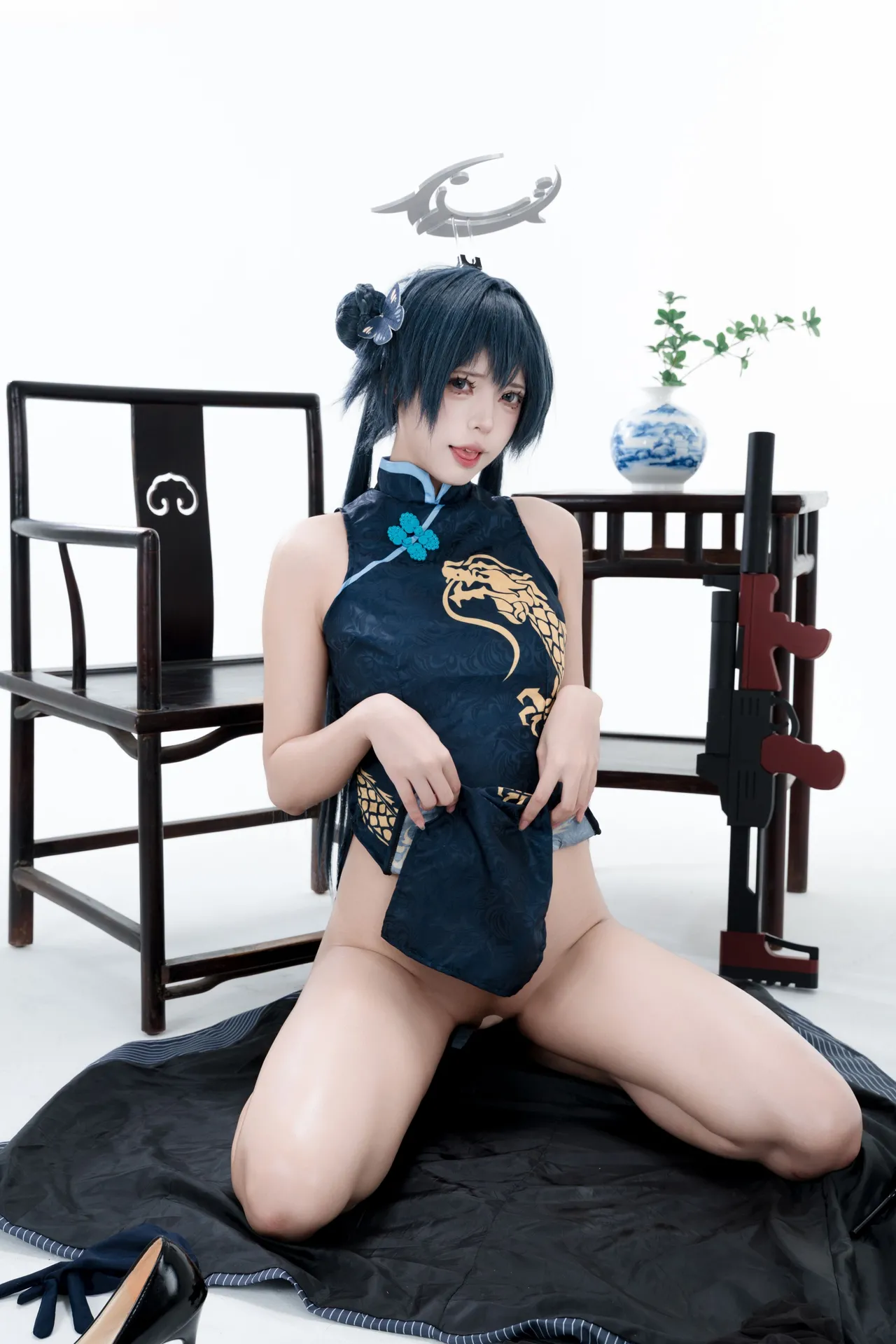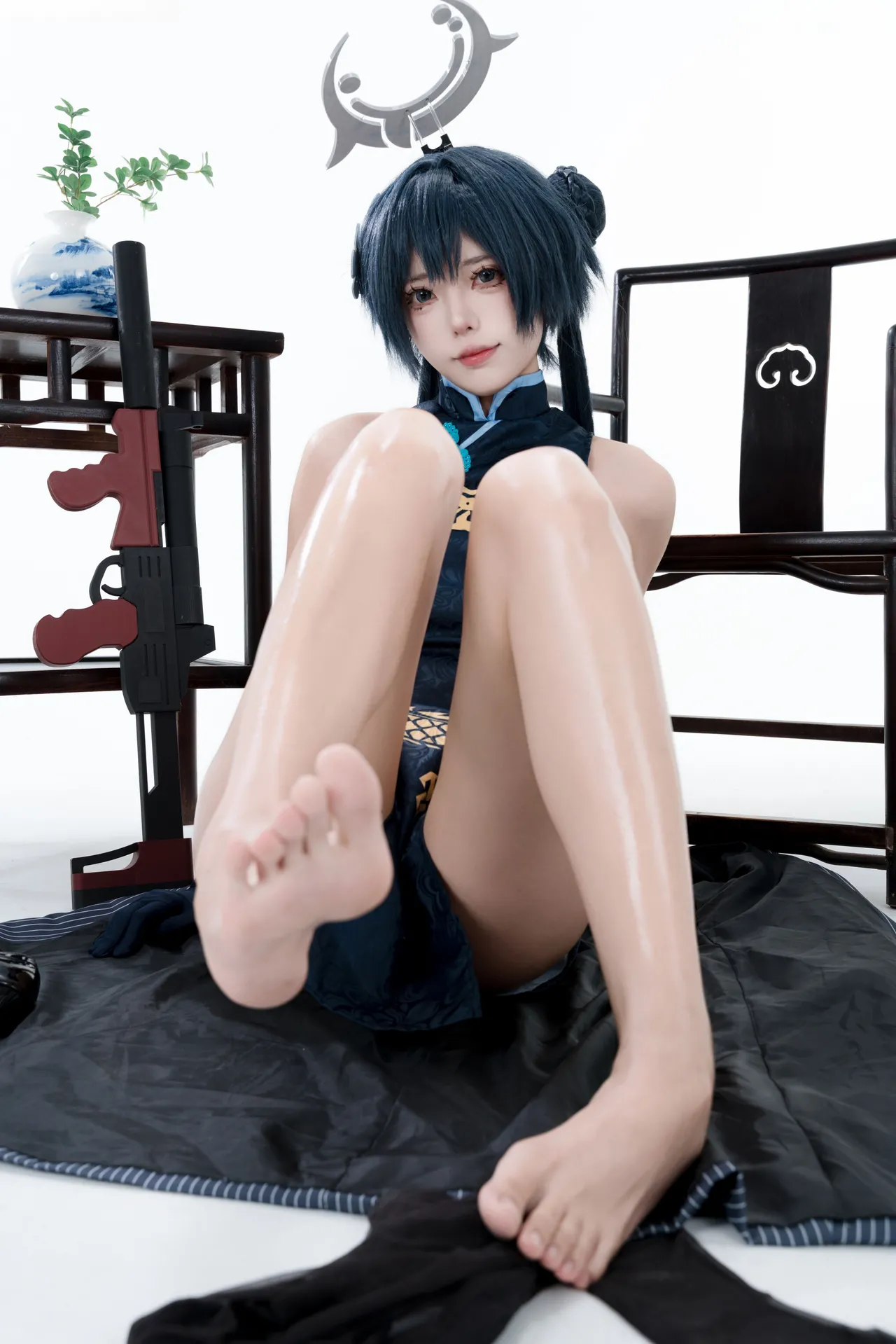 Tags: bandaid, Blue Archive, bukkake, chinese dress, gloves, hair buns, Halo, hentai cosplay, High Heels, kisaki ryuuge, Makeup, oil, pantyhose, pasties, twintails, vaginal sticker