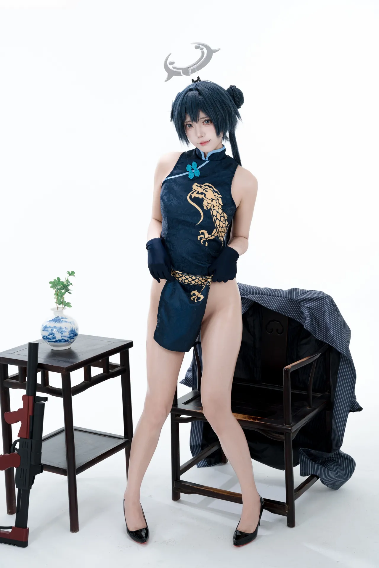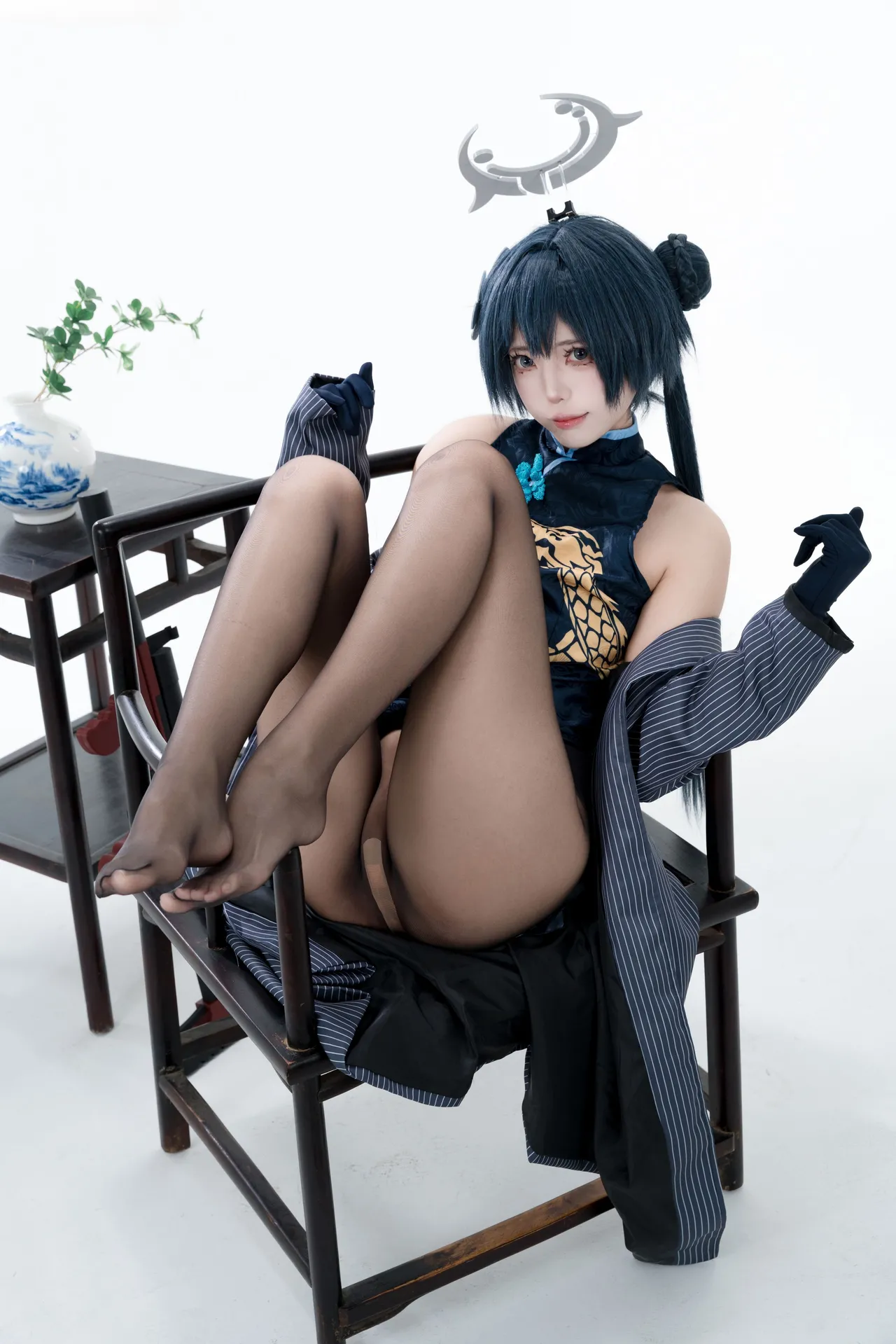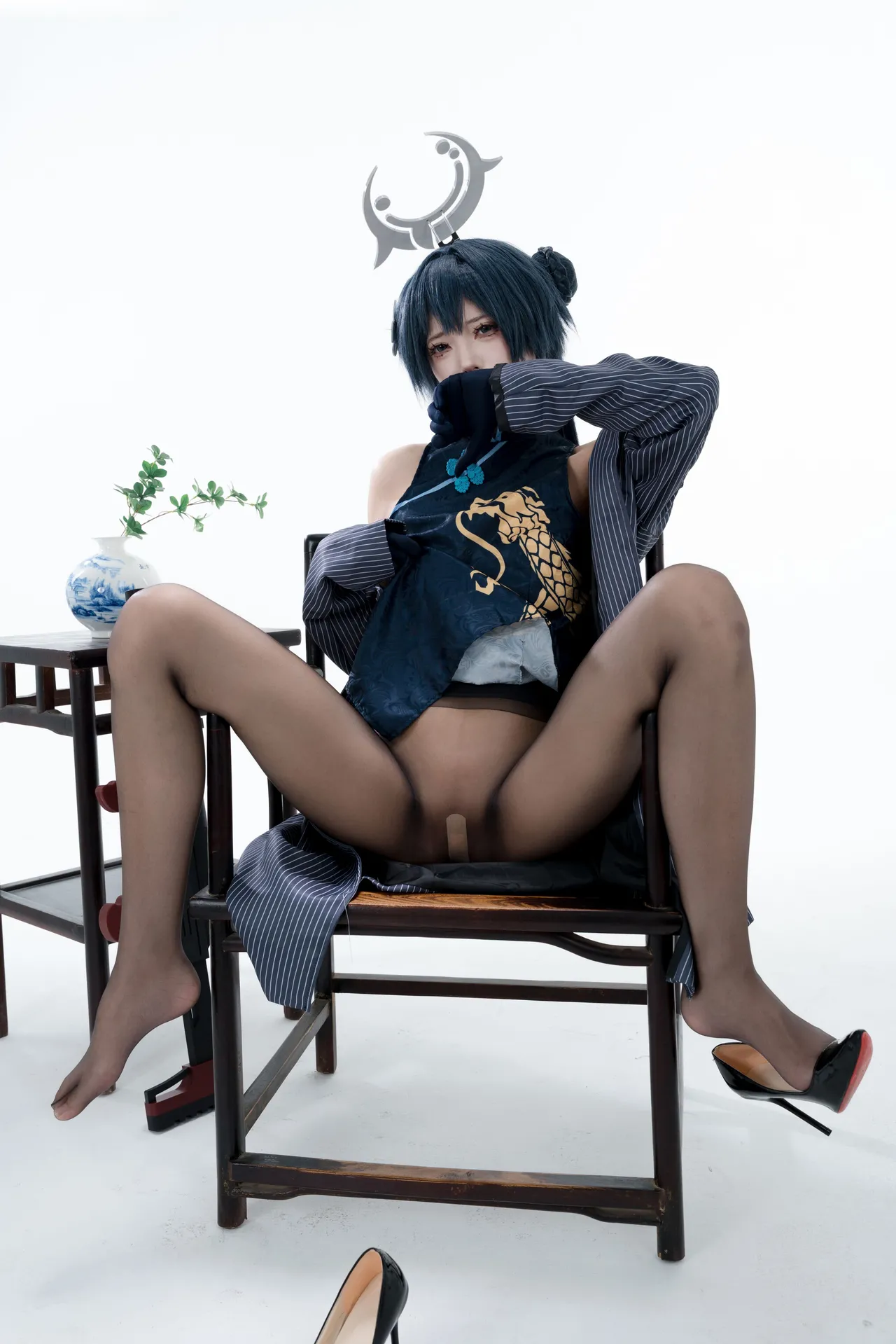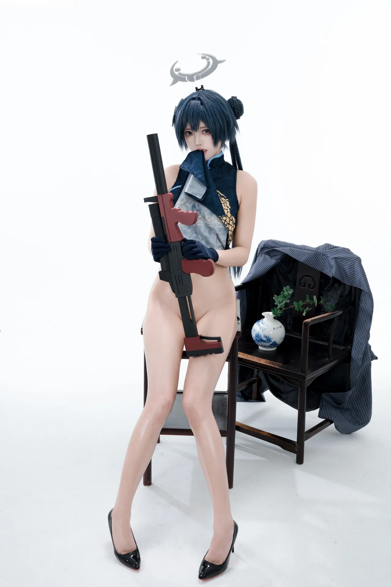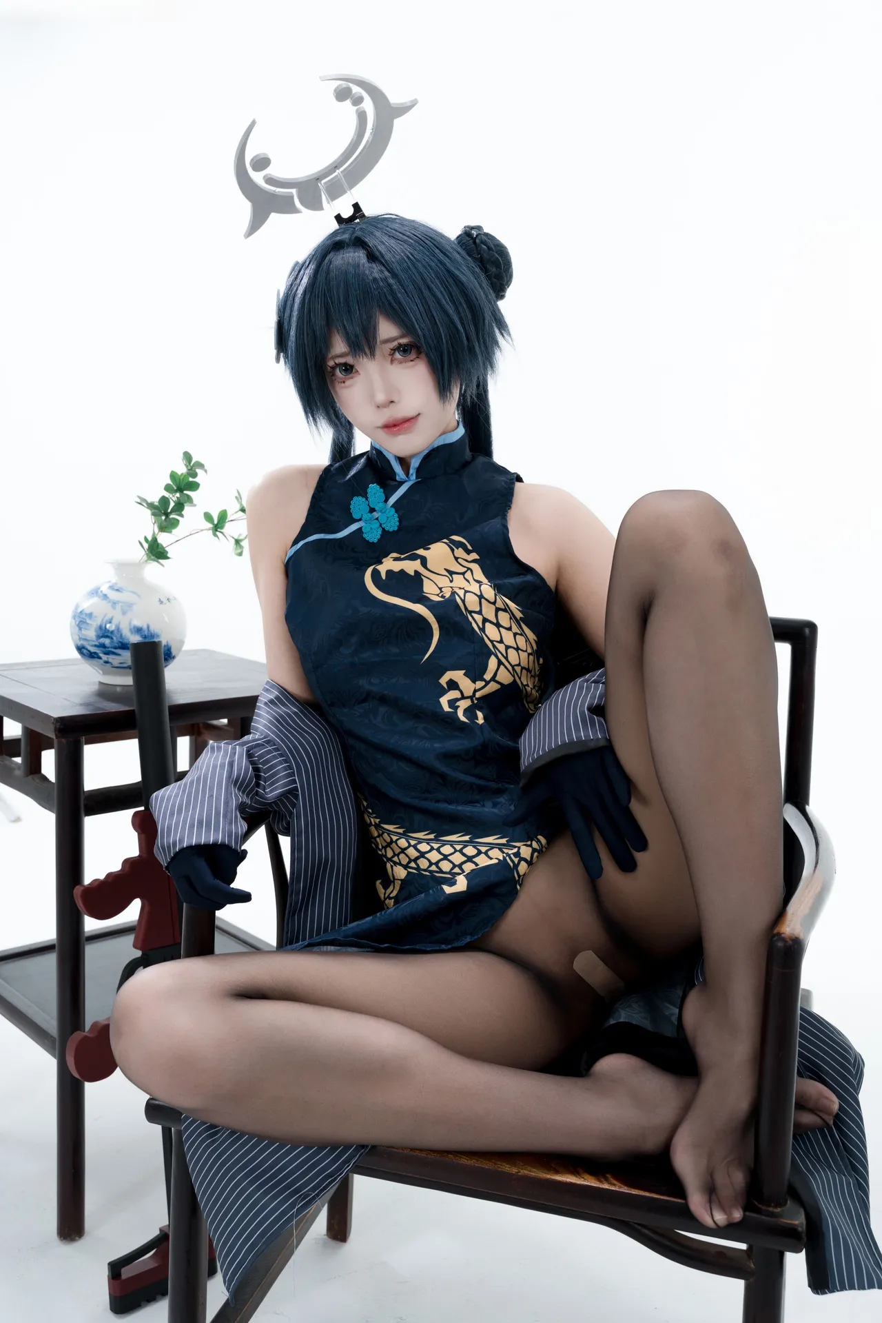 Tags: bandaid, Blue Archive, bukkake, chinese dress, gloves, hair buns, Halo, hentai cosplay, High Heels, kisaki ryuuge, Makeup, oil, pantyhose, pasties, twintails, vaginal sticker