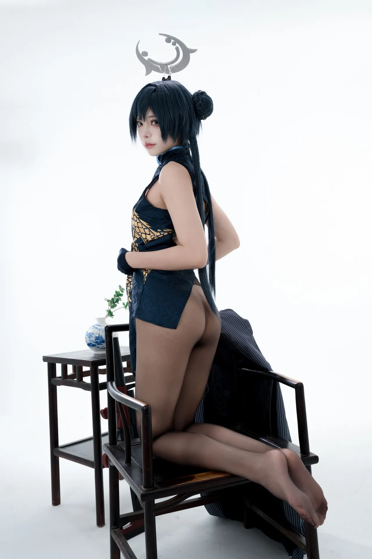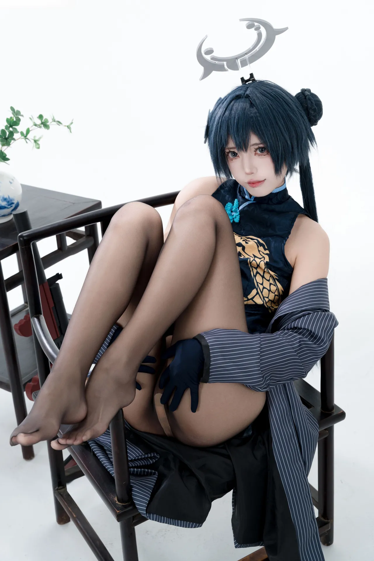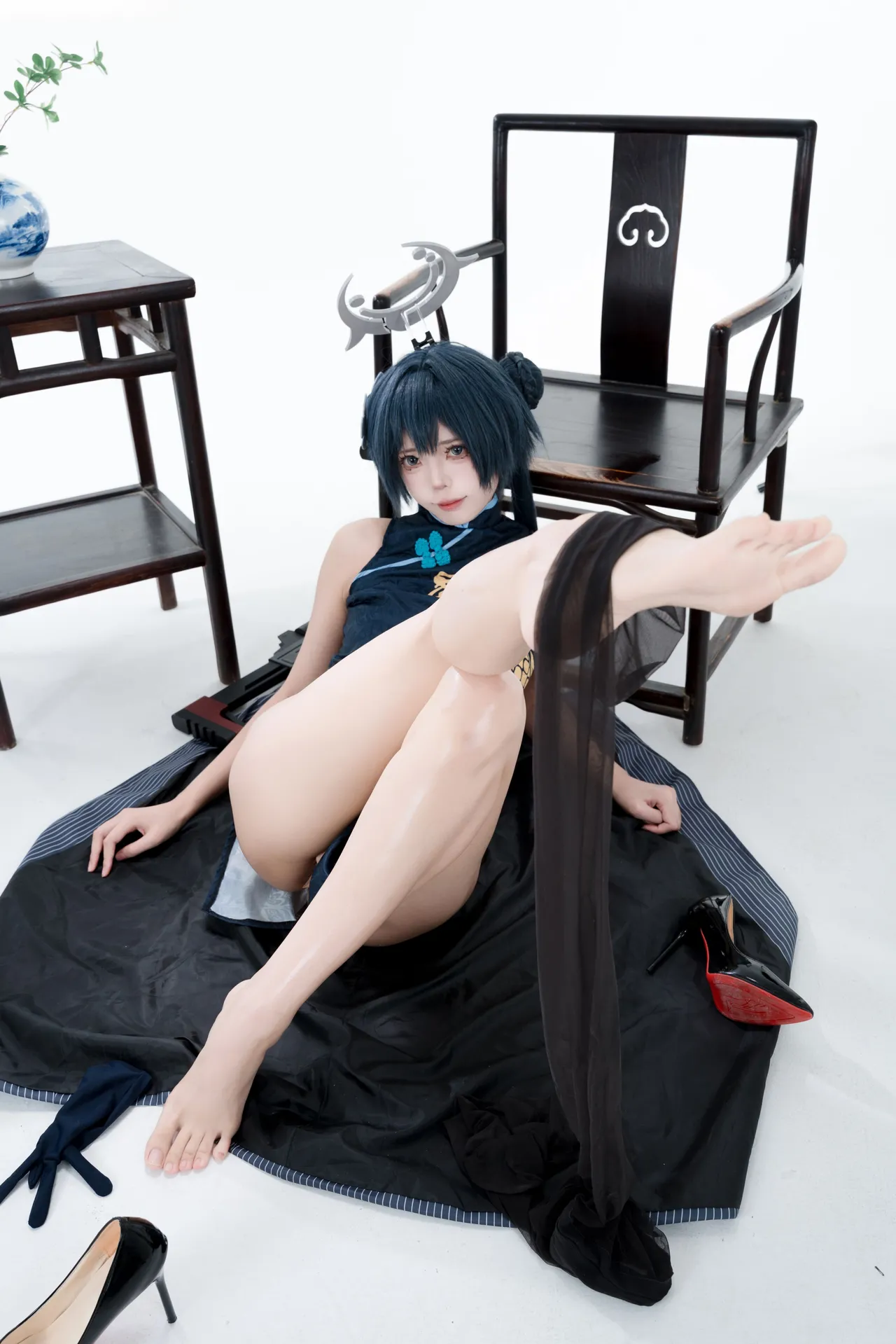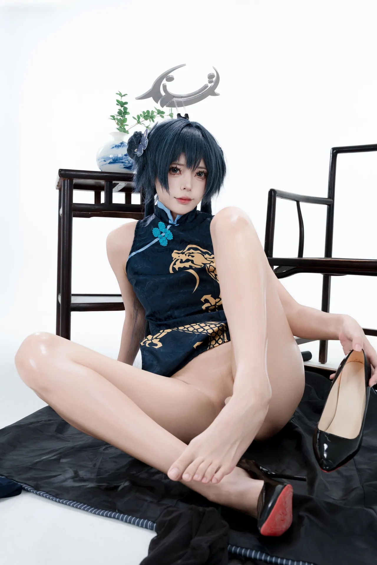 Tags: bandaid, Blue Archive, bukkake, chinese dress, gloves, hair buns, Halo, hentai cosplay, High Heels, kisaki ryuuge, Makeup, oil, pantyhose, pasties, twintails, vaginal sticker