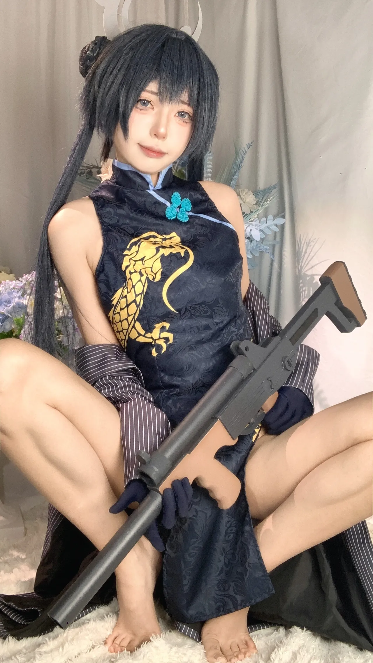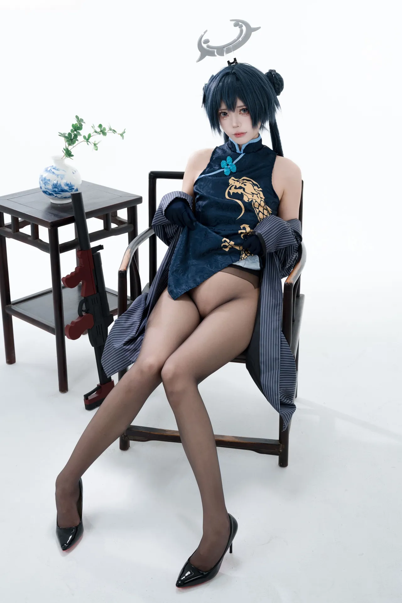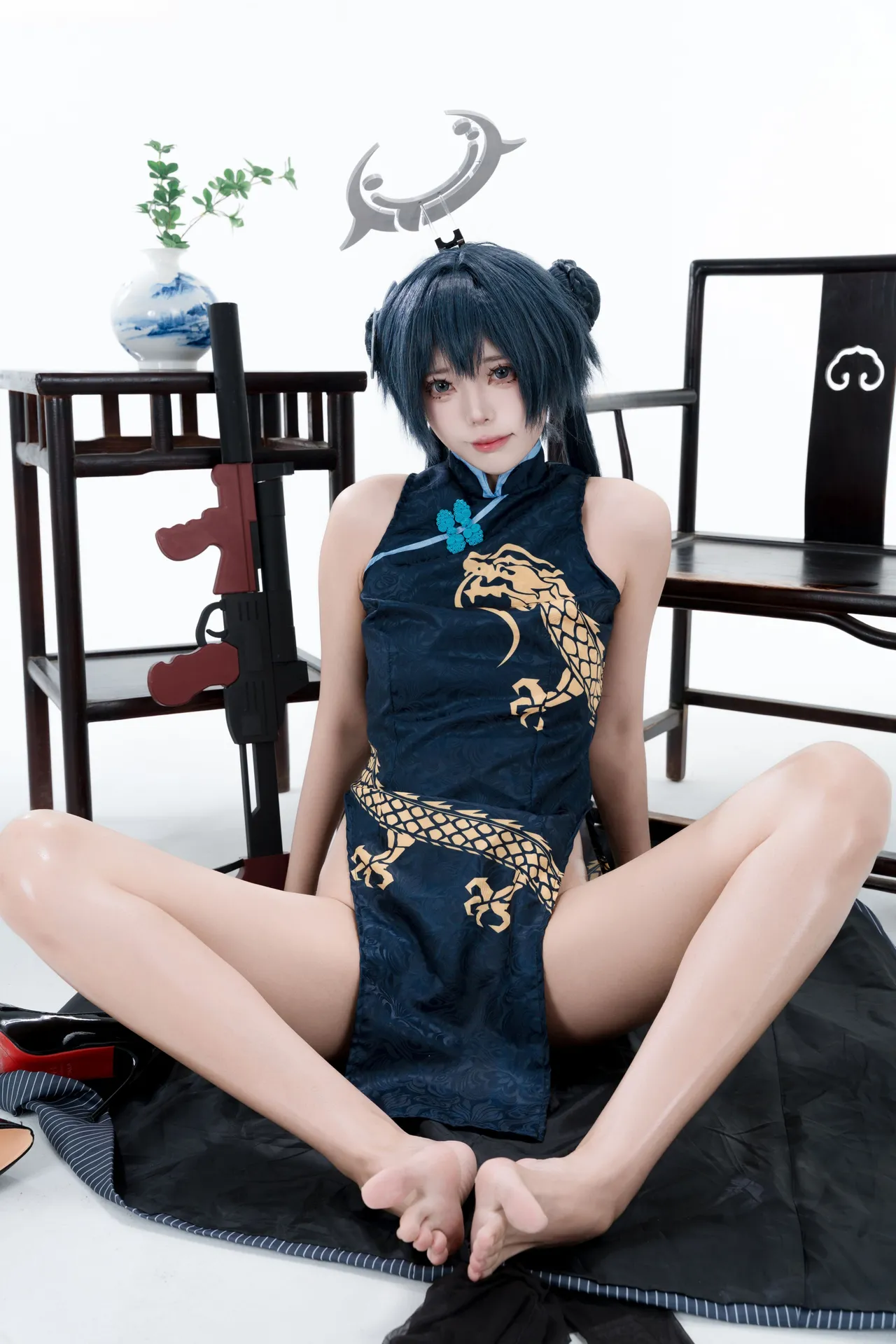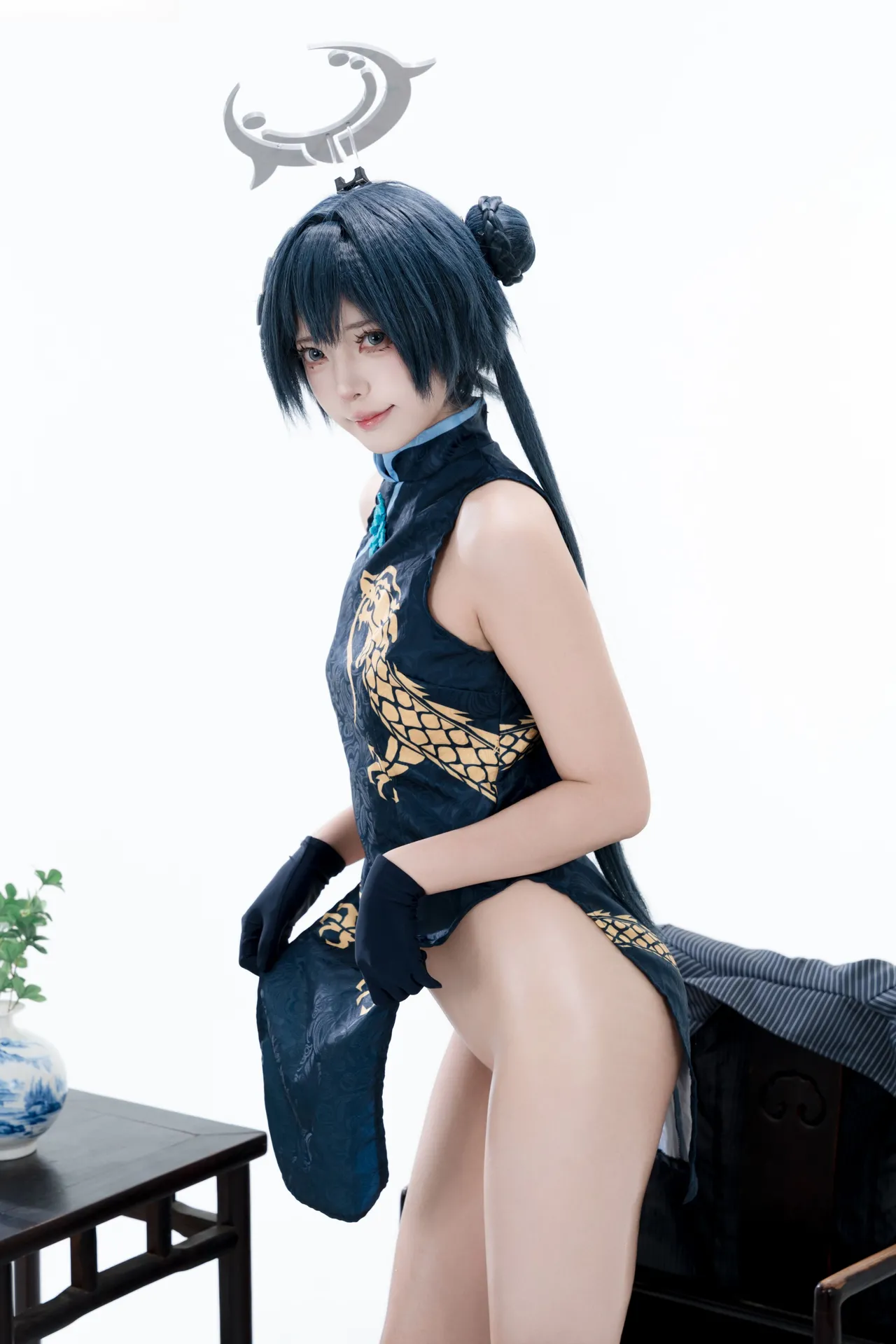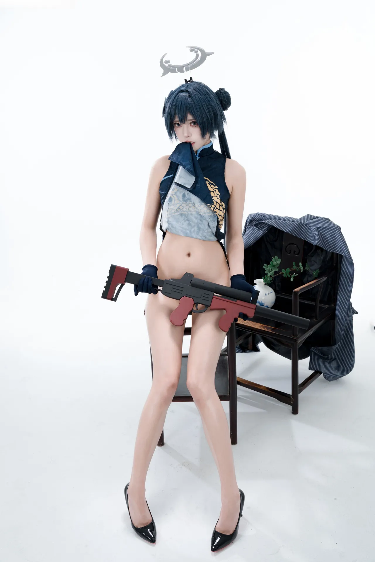 Tags: bandaid, Blue Archive, bukkake, chinese dress, gloves, hair buns, Halo, hentai cosplay, High Heels, kisaki ryuuge, Makeup, oil, pantyhose, pasties, twintails, vaginal sticker