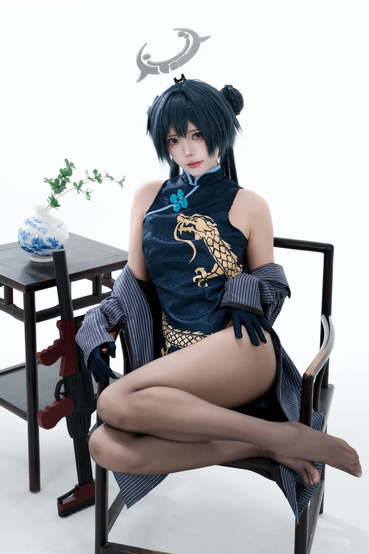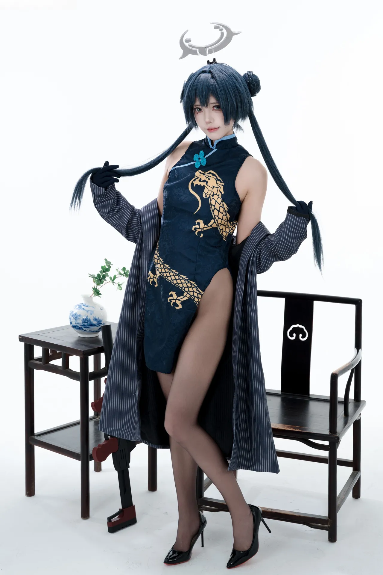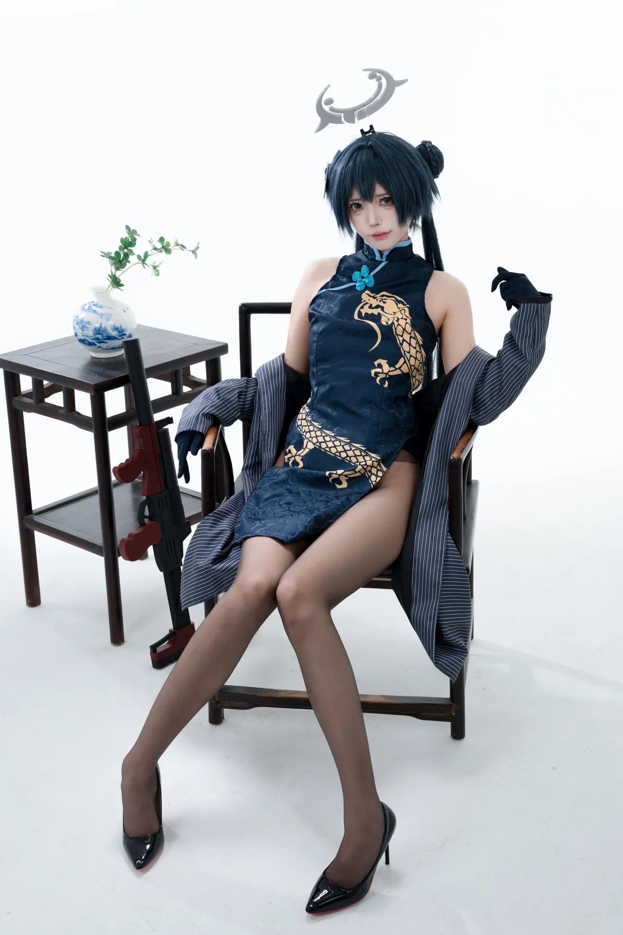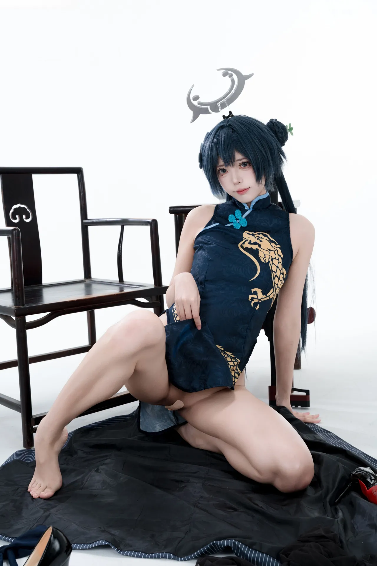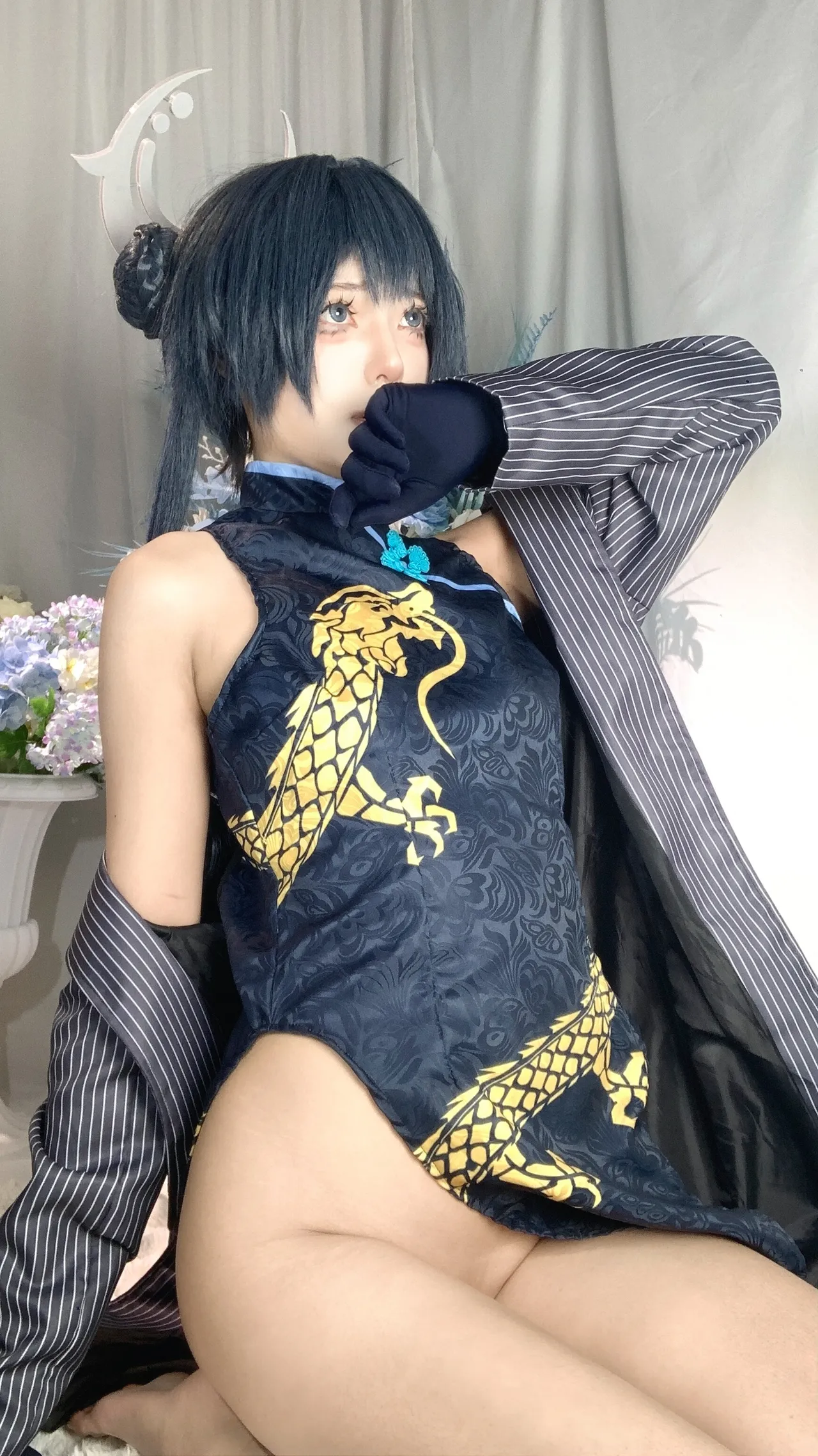 Tags: bandaid, Blue Archive, bukkake, chinese dress, gloves, hair buns, Halo, hentai cosplay, High Heels, kisaki ryuuge, Makeup, oil, pantyhose, pasties, twintails, vaginal sticker