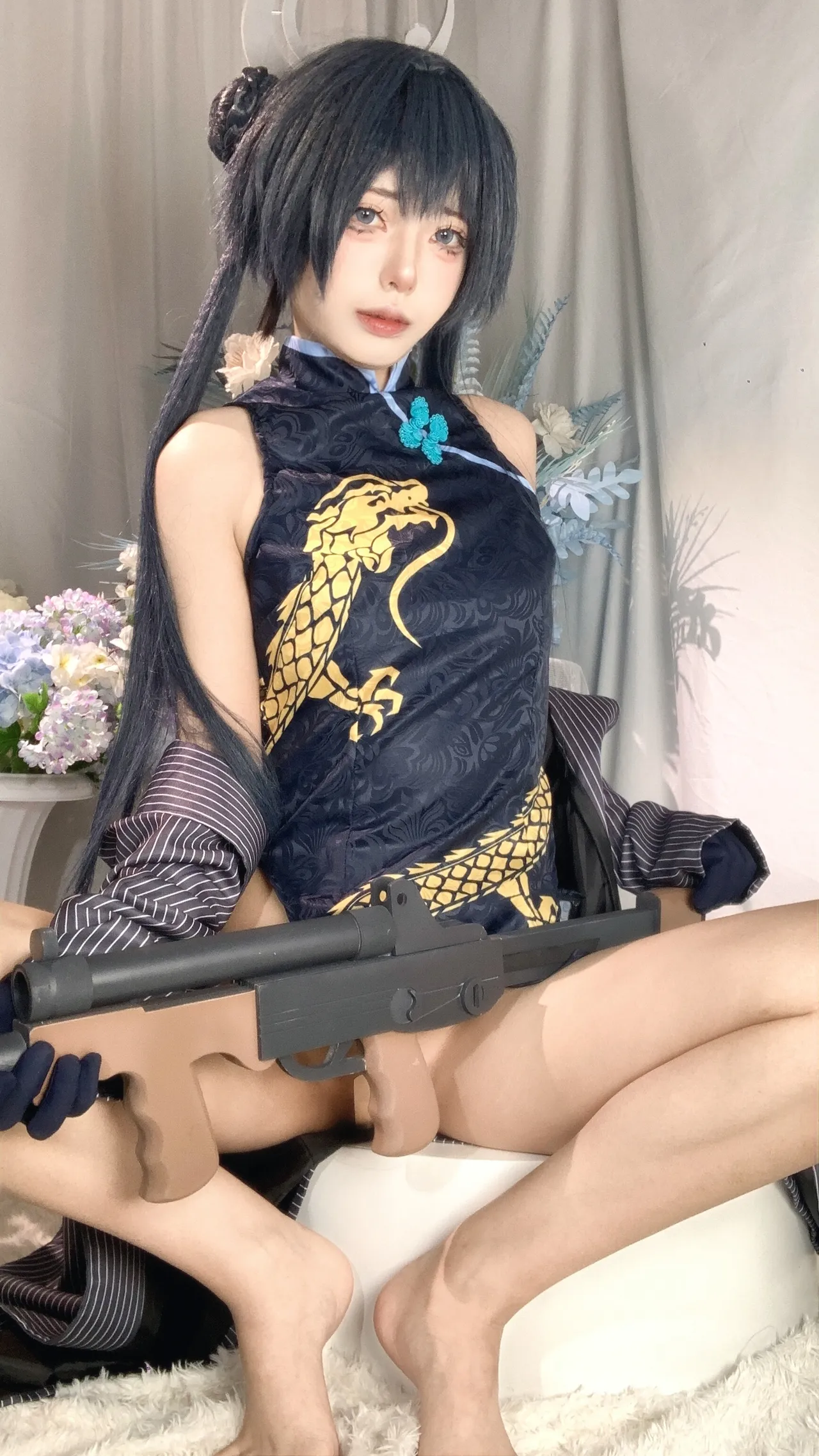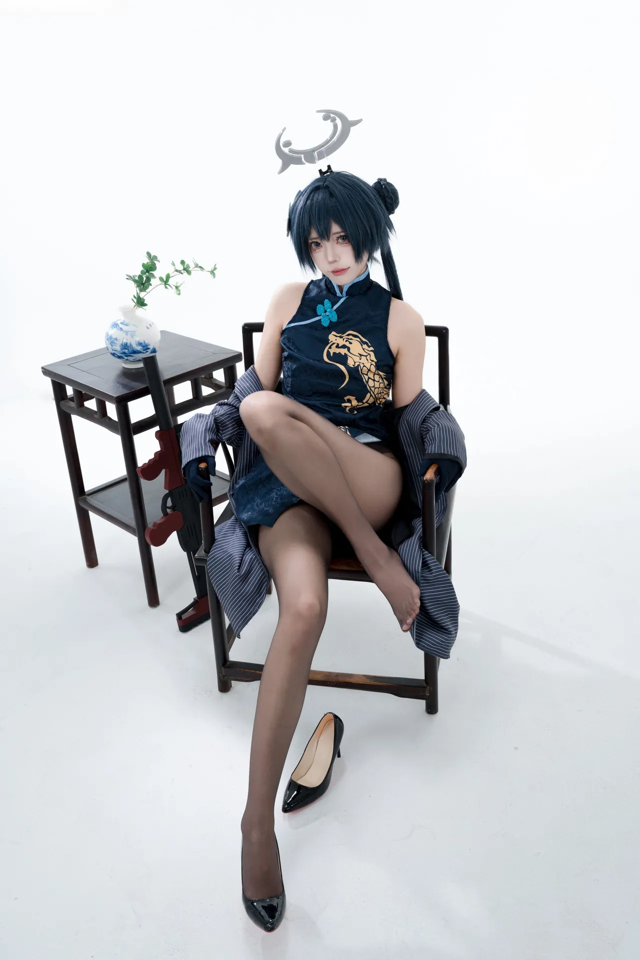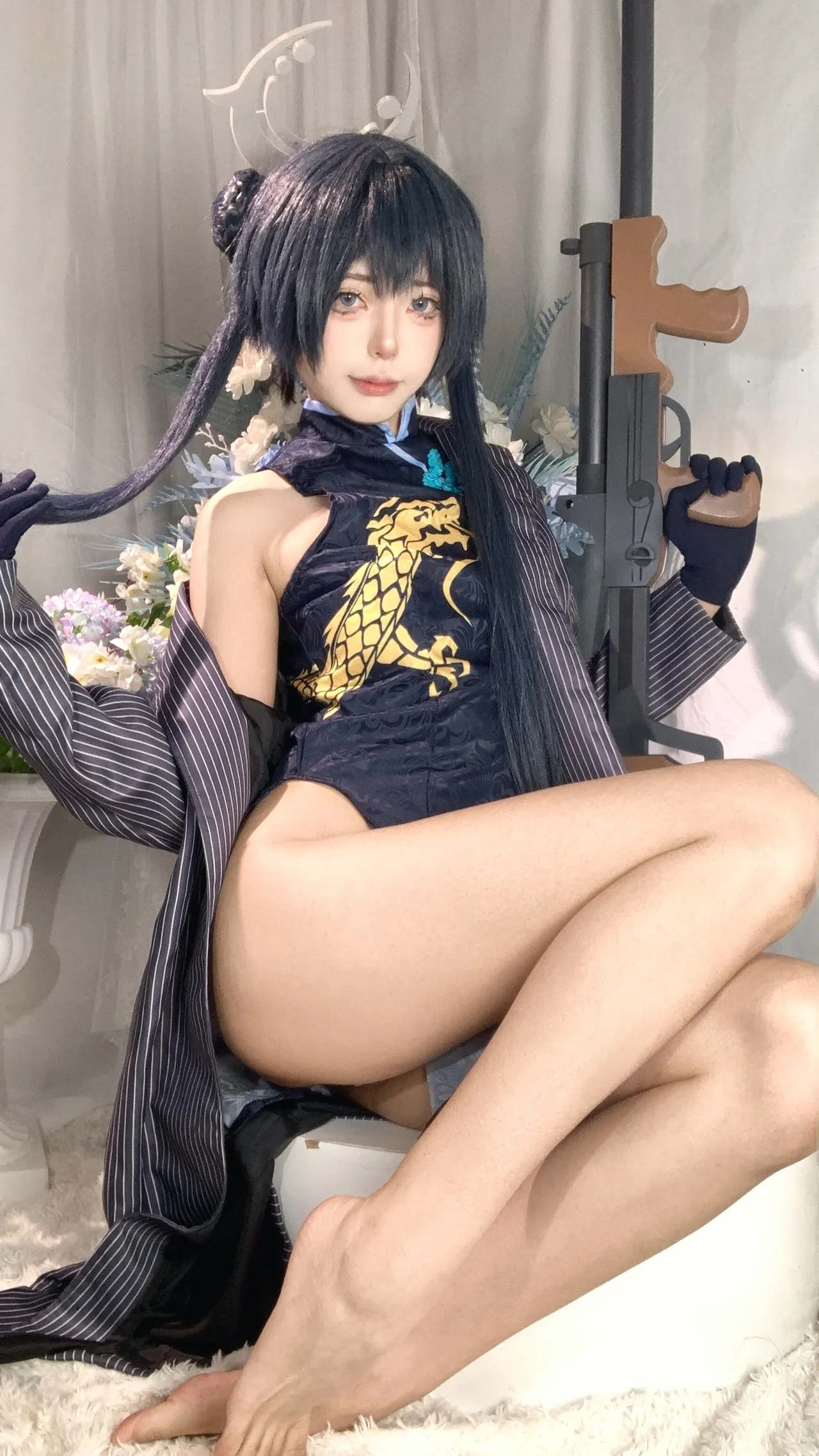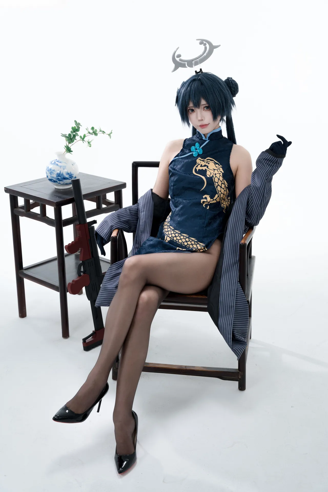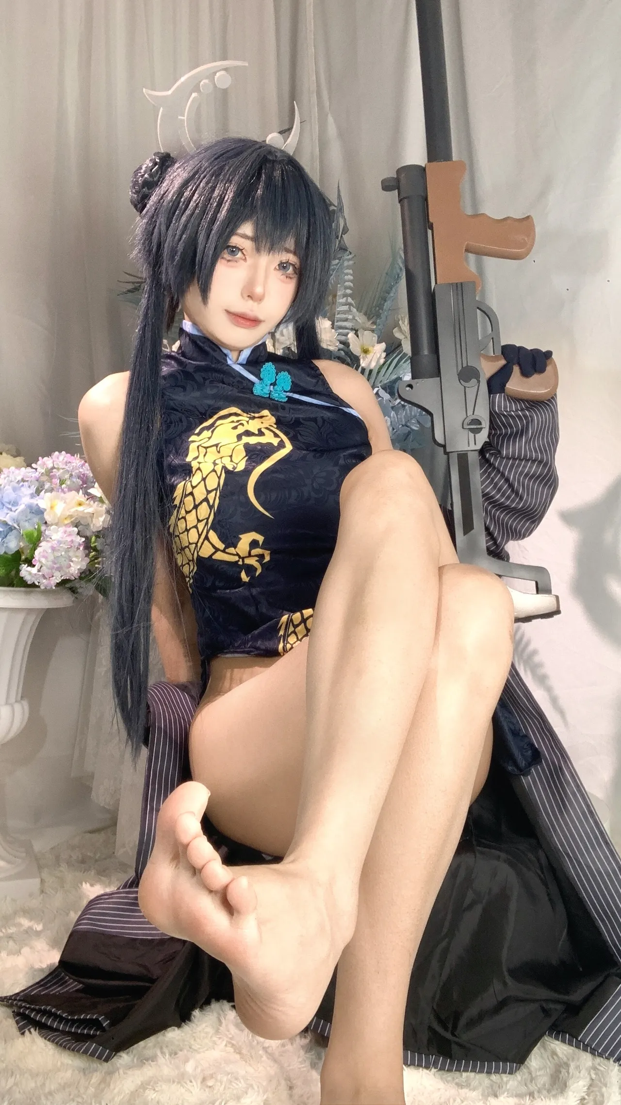 Tags: bandaid, Blue Archive, bukkake, chinese dress, gloves, hair buns, Halo, hentai cosplay, High Heels, kisaki ryuuge, Makeup, oil, pantyhose, pasties, twintails, vaginal sticker
