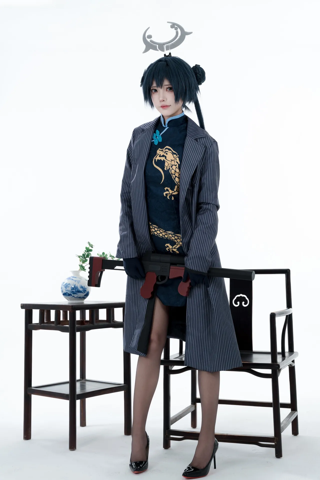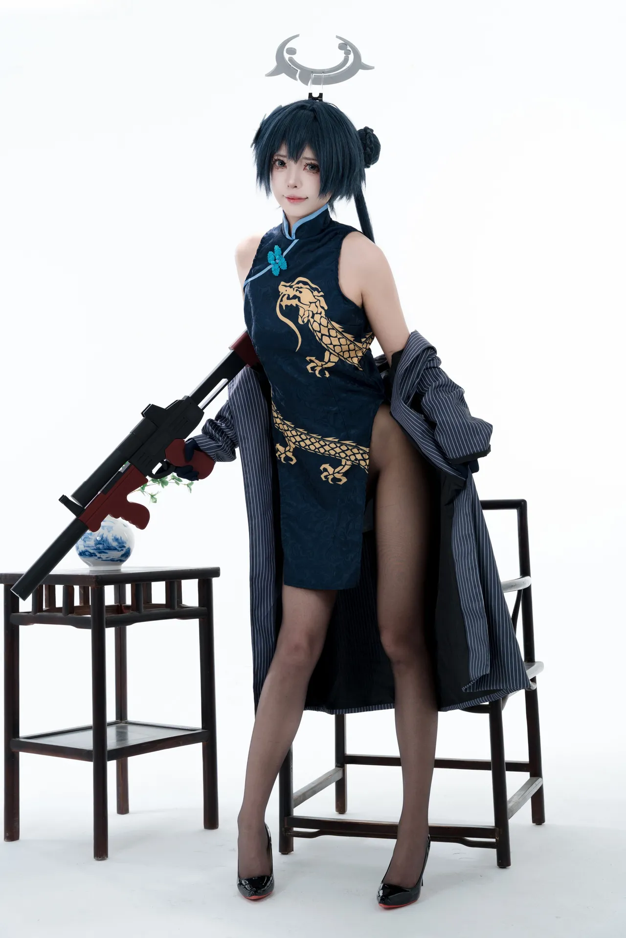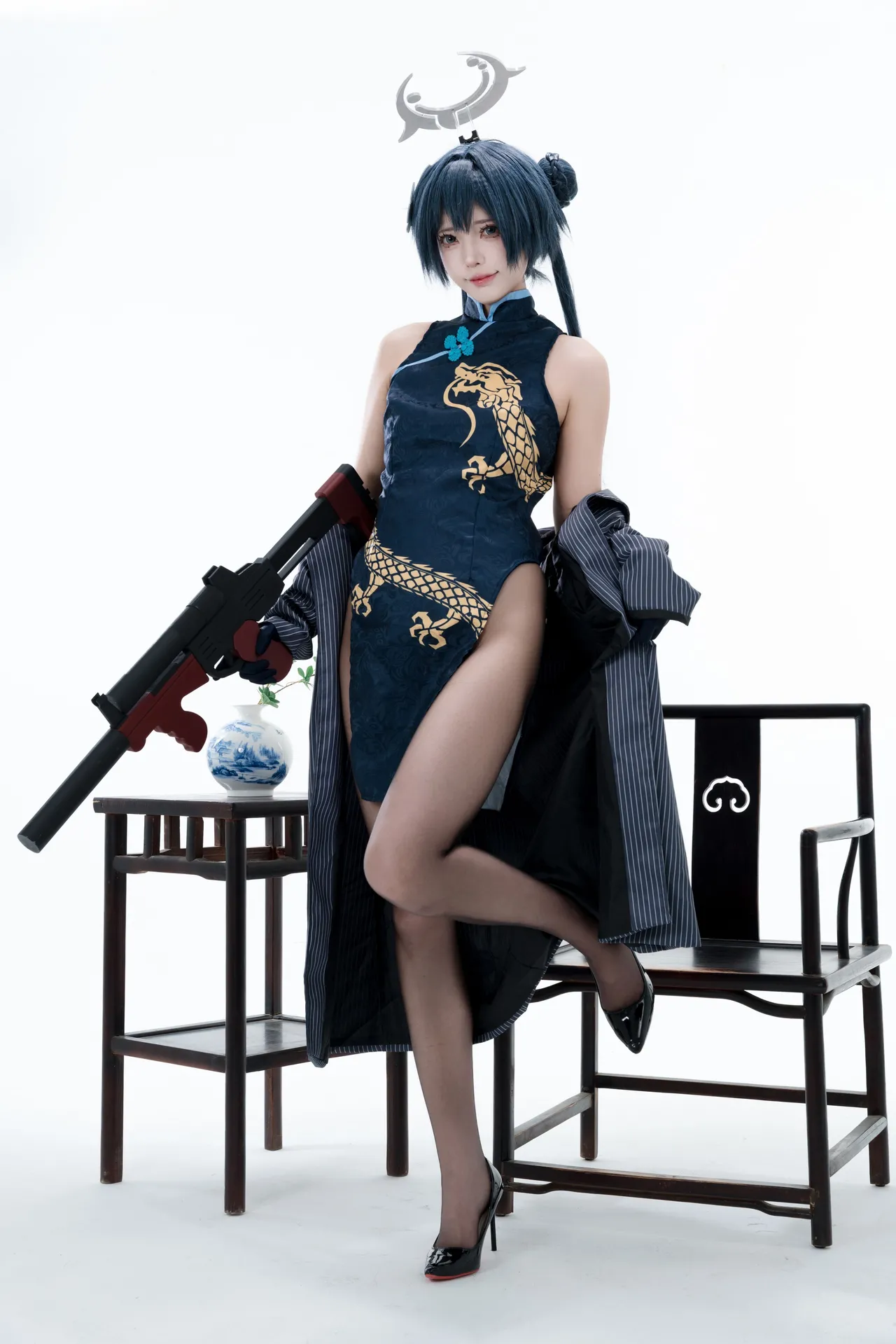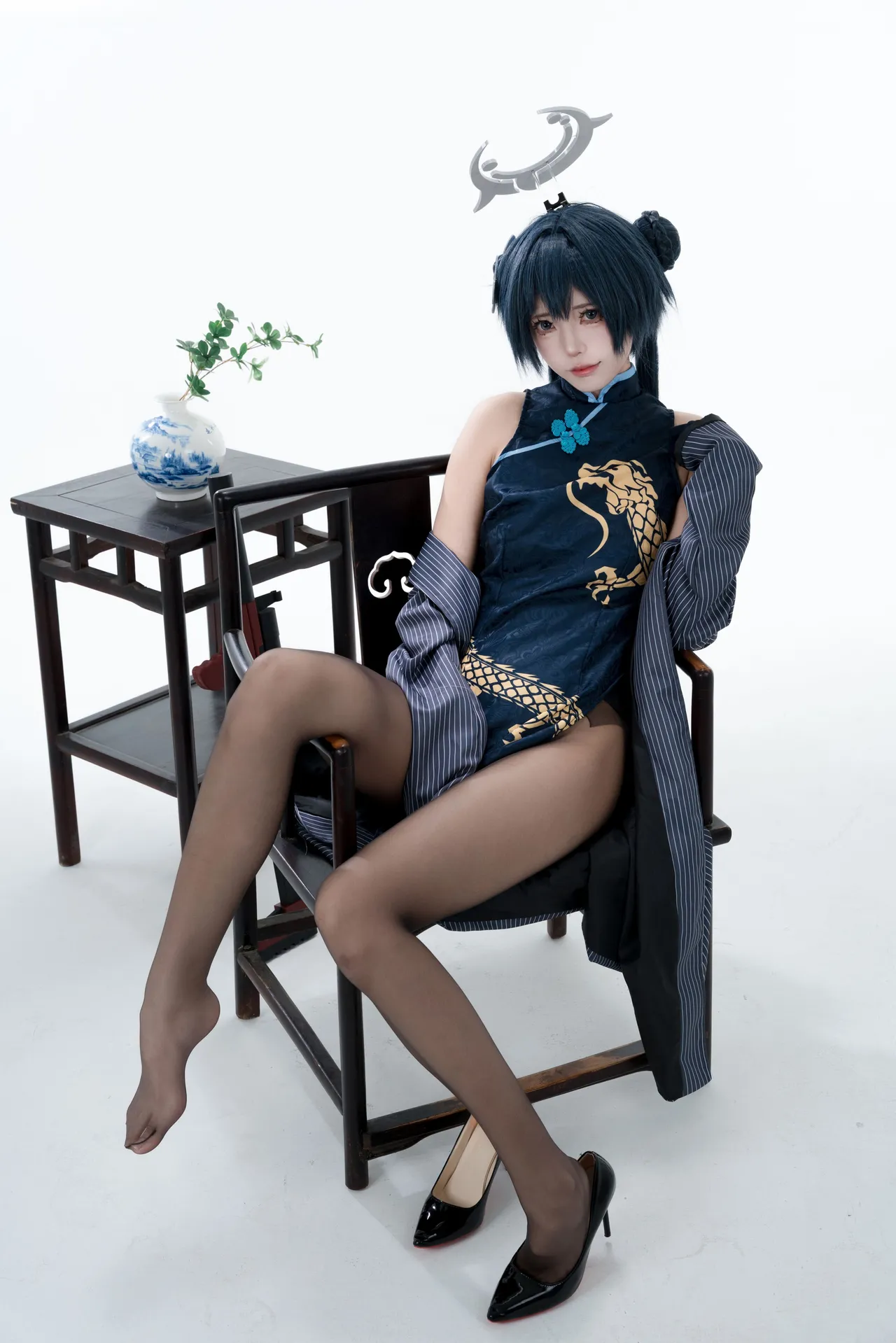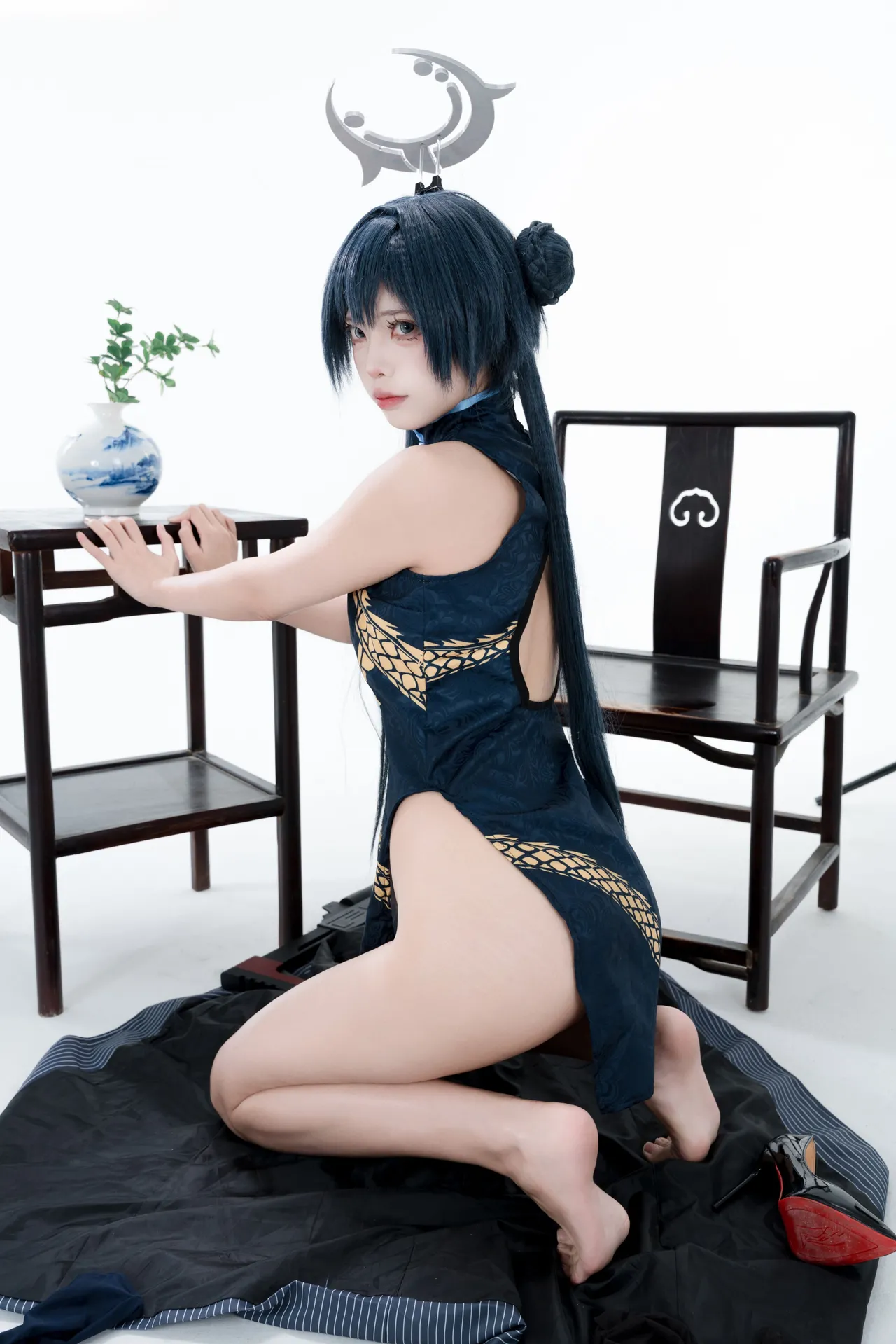 Tags: bandaid, Blue Archive, bukkake, chinese dress, gloves, hair buns, Halo, hentai cosplay, High Heels, kisaki ryuuge, Makeup, oil, pantyhose, pasties, twintails, vaginal sticker