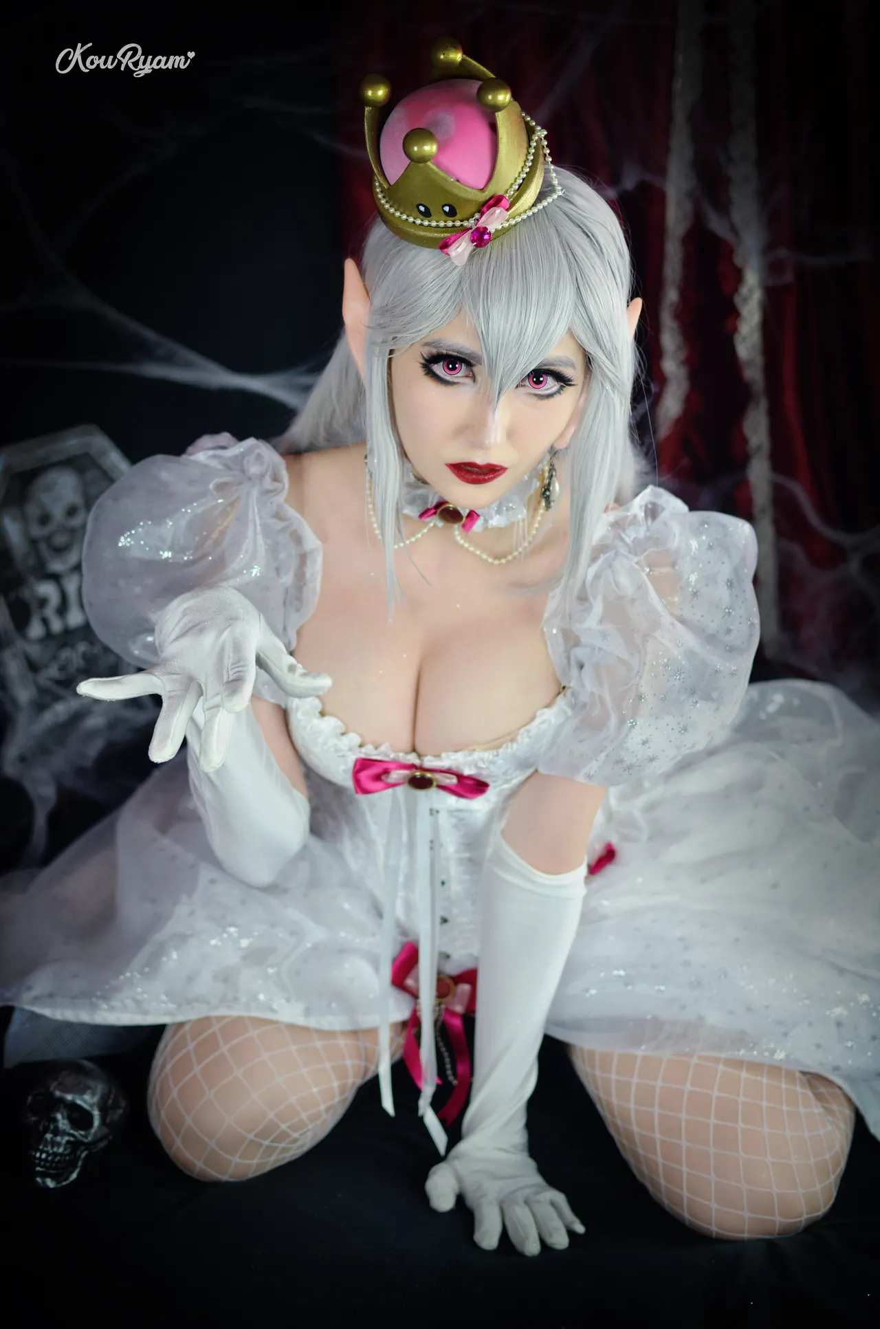 Tags: Crown, fishnets, gloves, hentai cosplay, Makeup, super crown boo, super mario brothers | super mario bros., unusual teeth