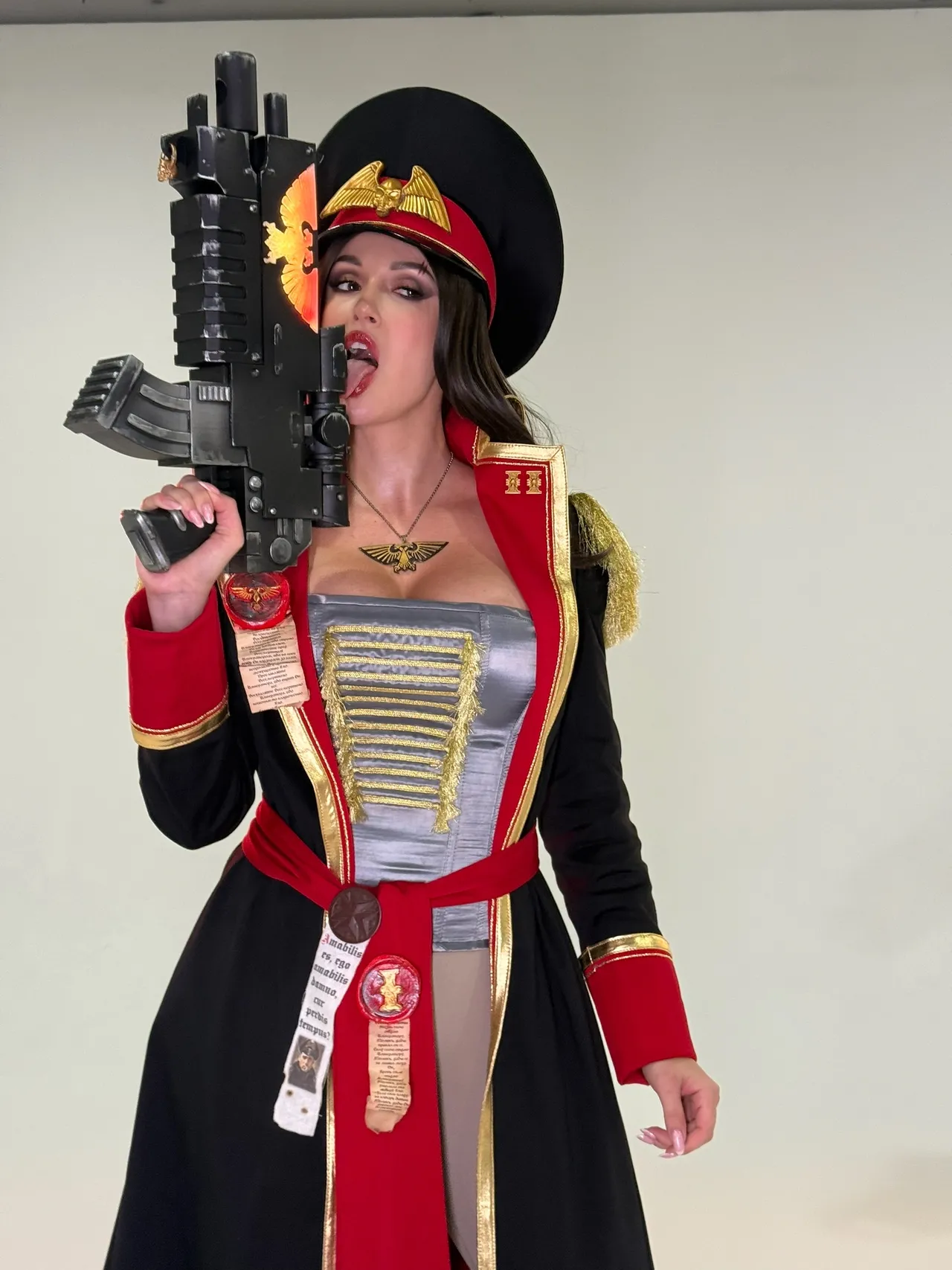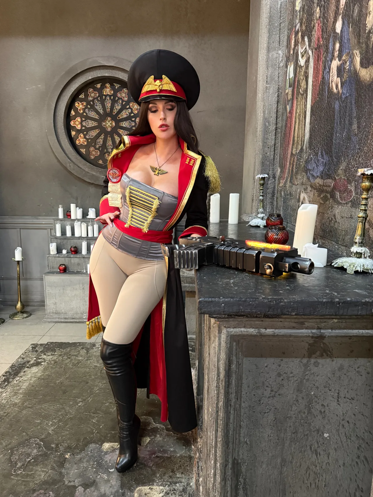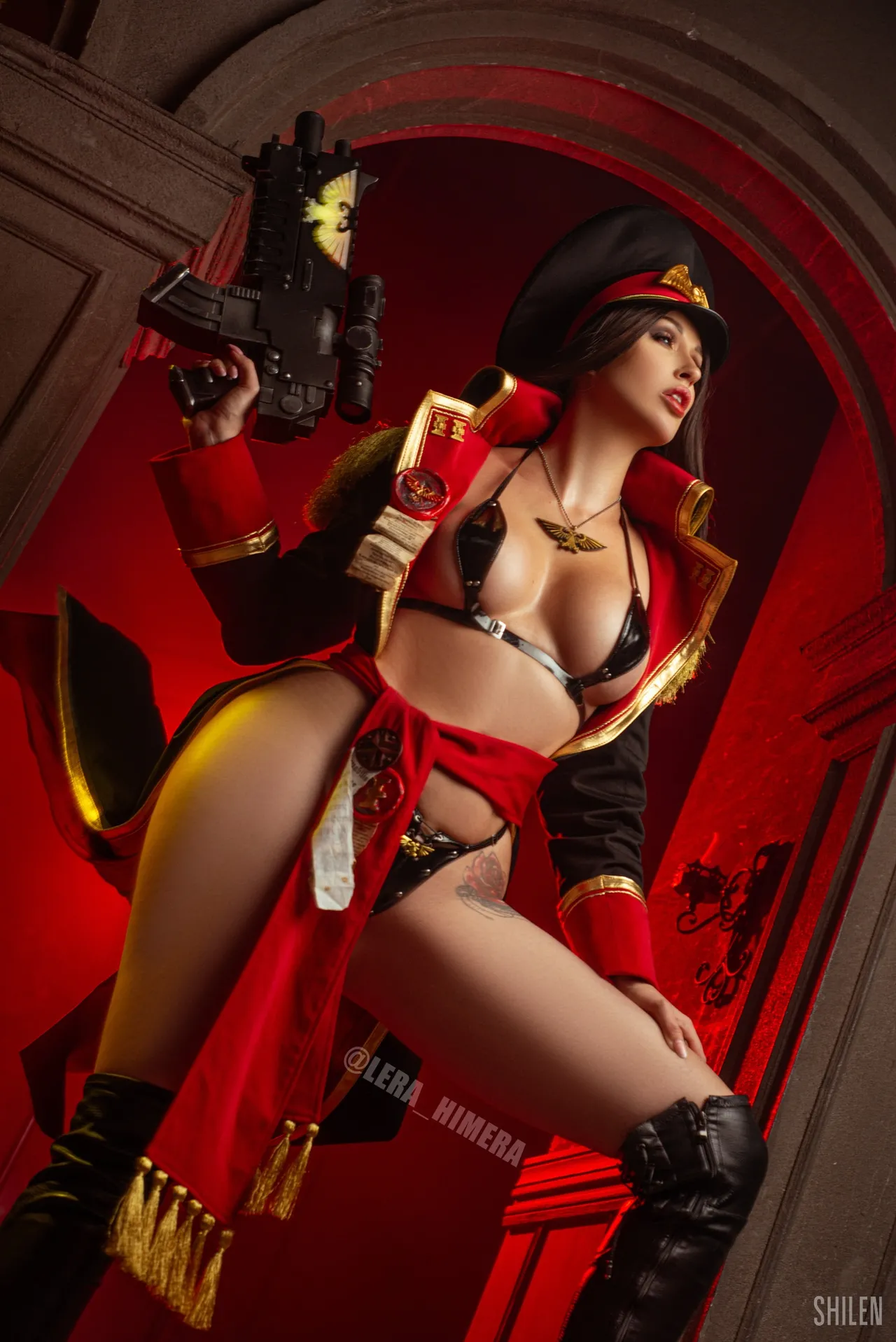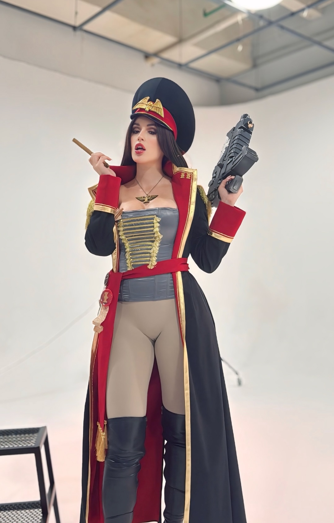 Tags: Big Ass, big breasts, Bikini, corset, hentai cosplay, High Heels, large tattoo, latex, Makeup, Military, painted nails, smoking, thigh high boots, very long hair, warhammer