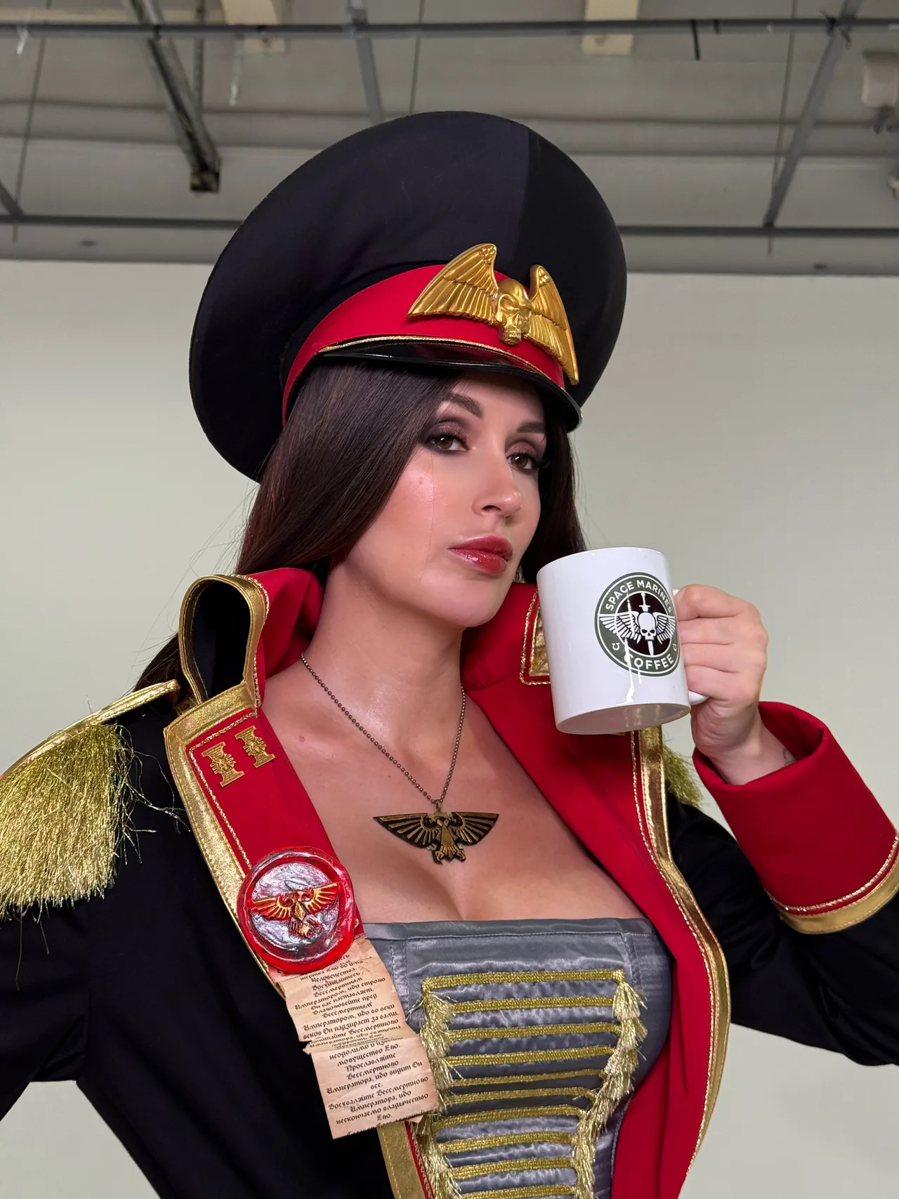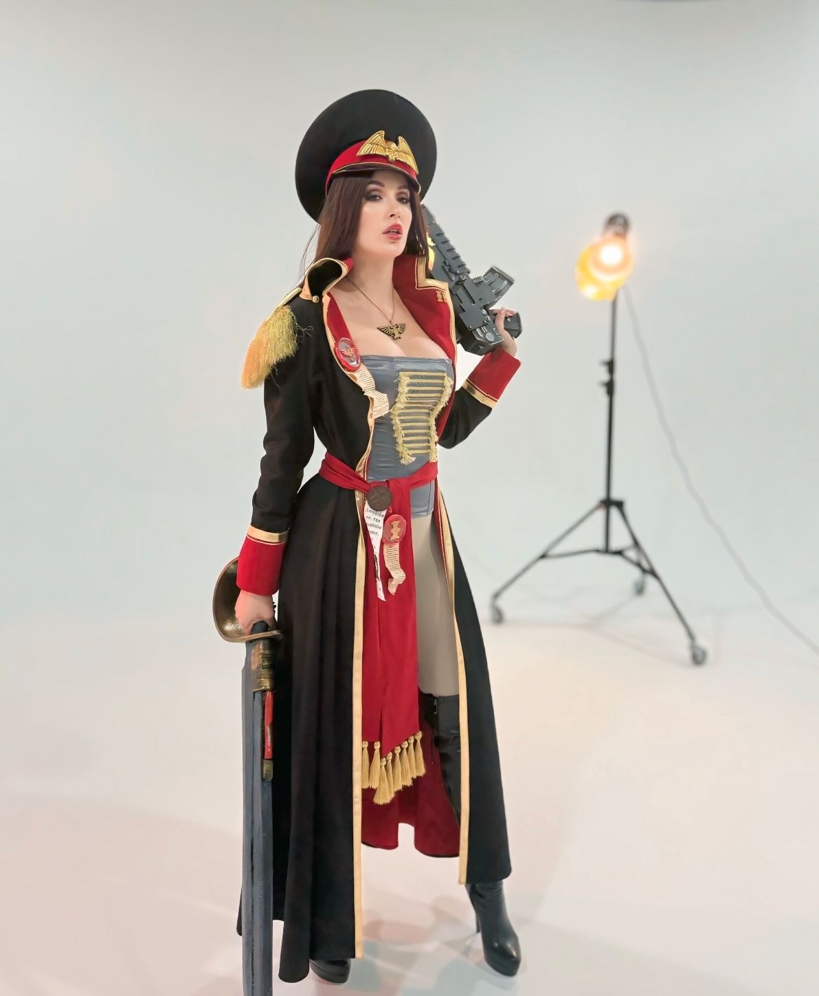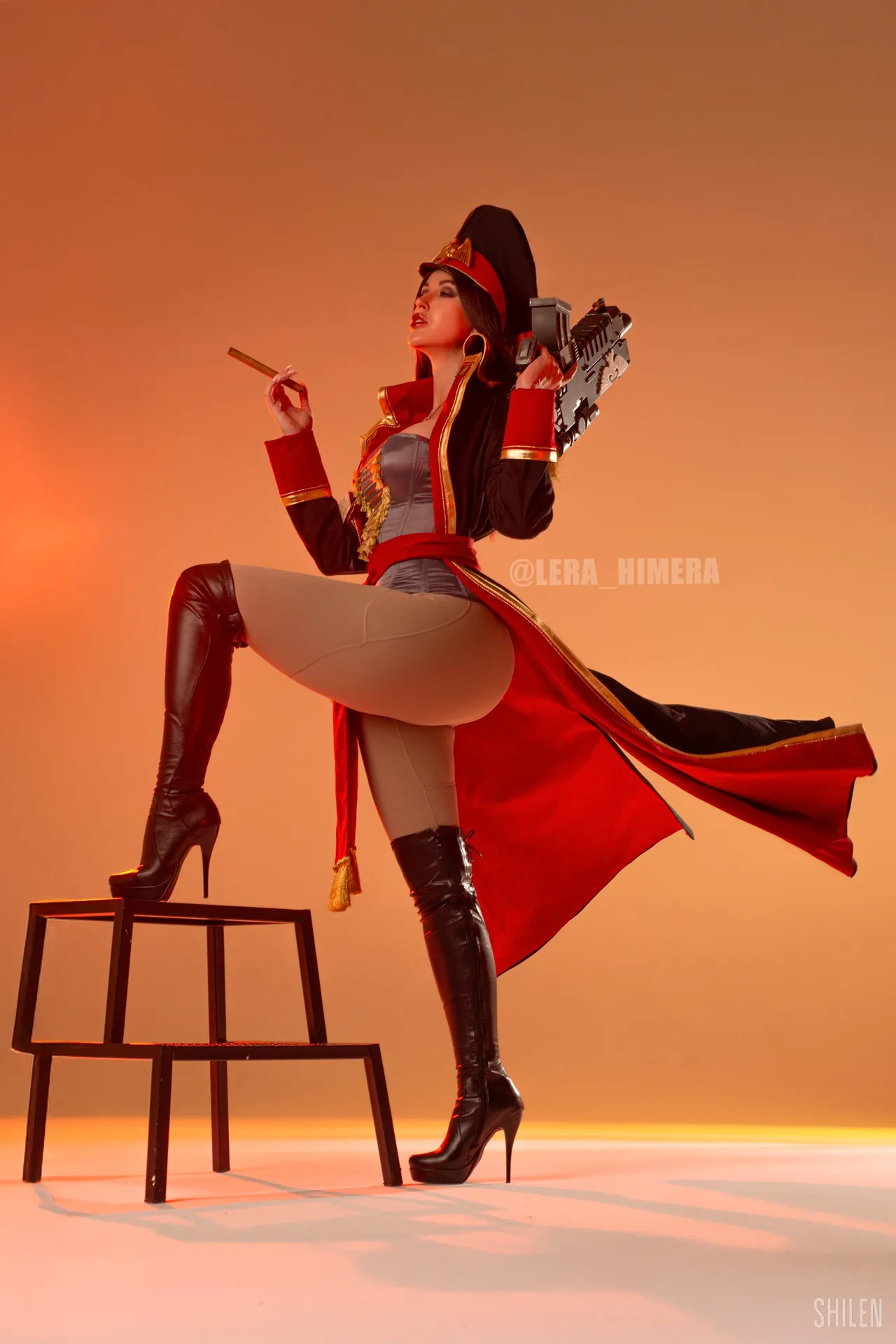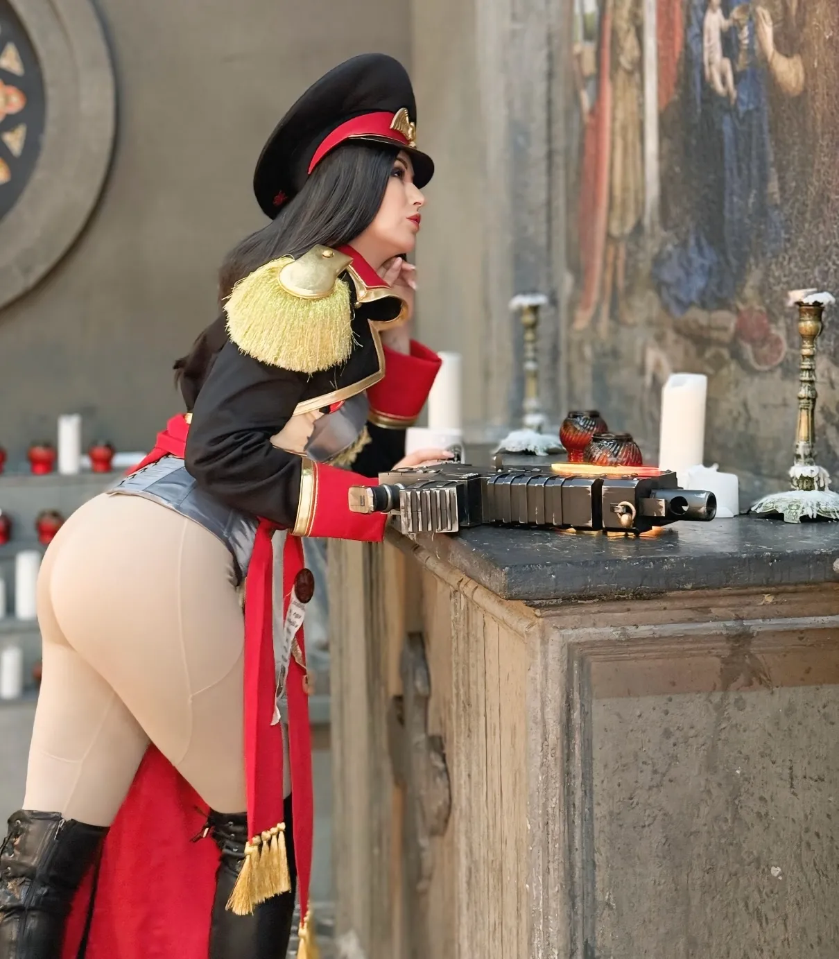 Tags: Big Ass, big breasts, Bikini, corset, hentai cosplay, High Heels, large tattoo, latex, Makeup, Military, painted nails, smoking, thigh high boots, very long hair, warhammer