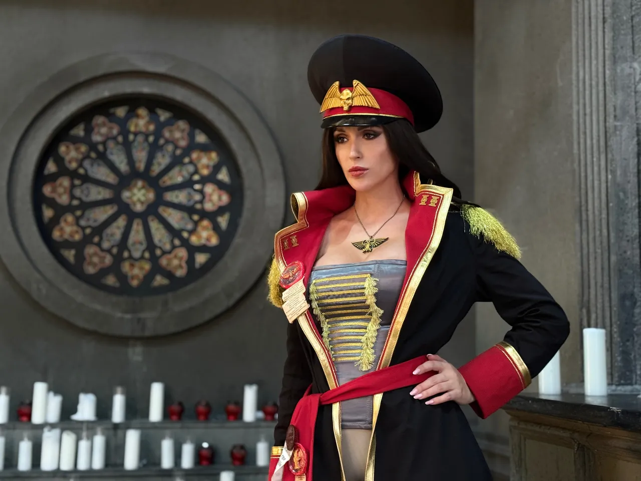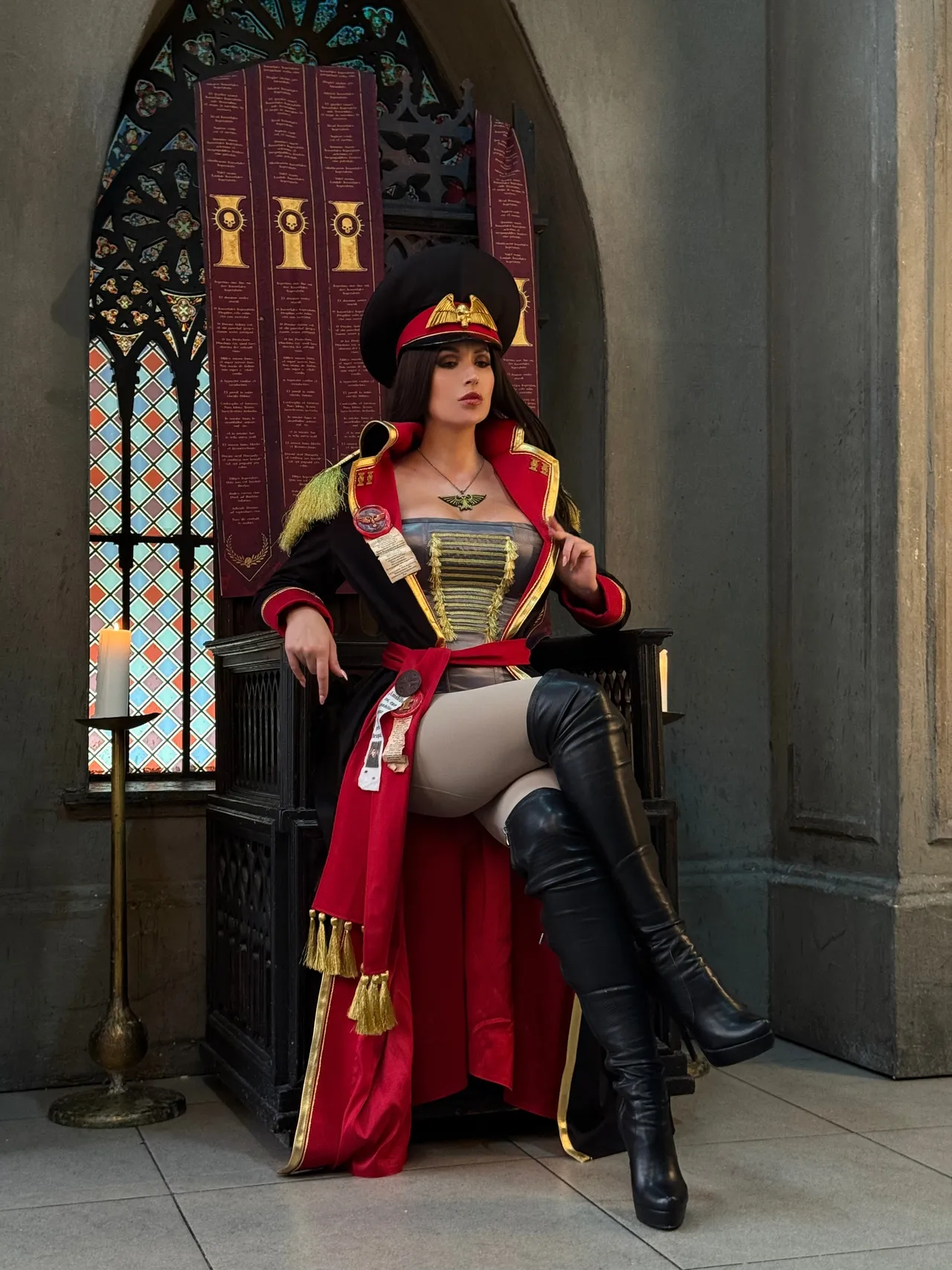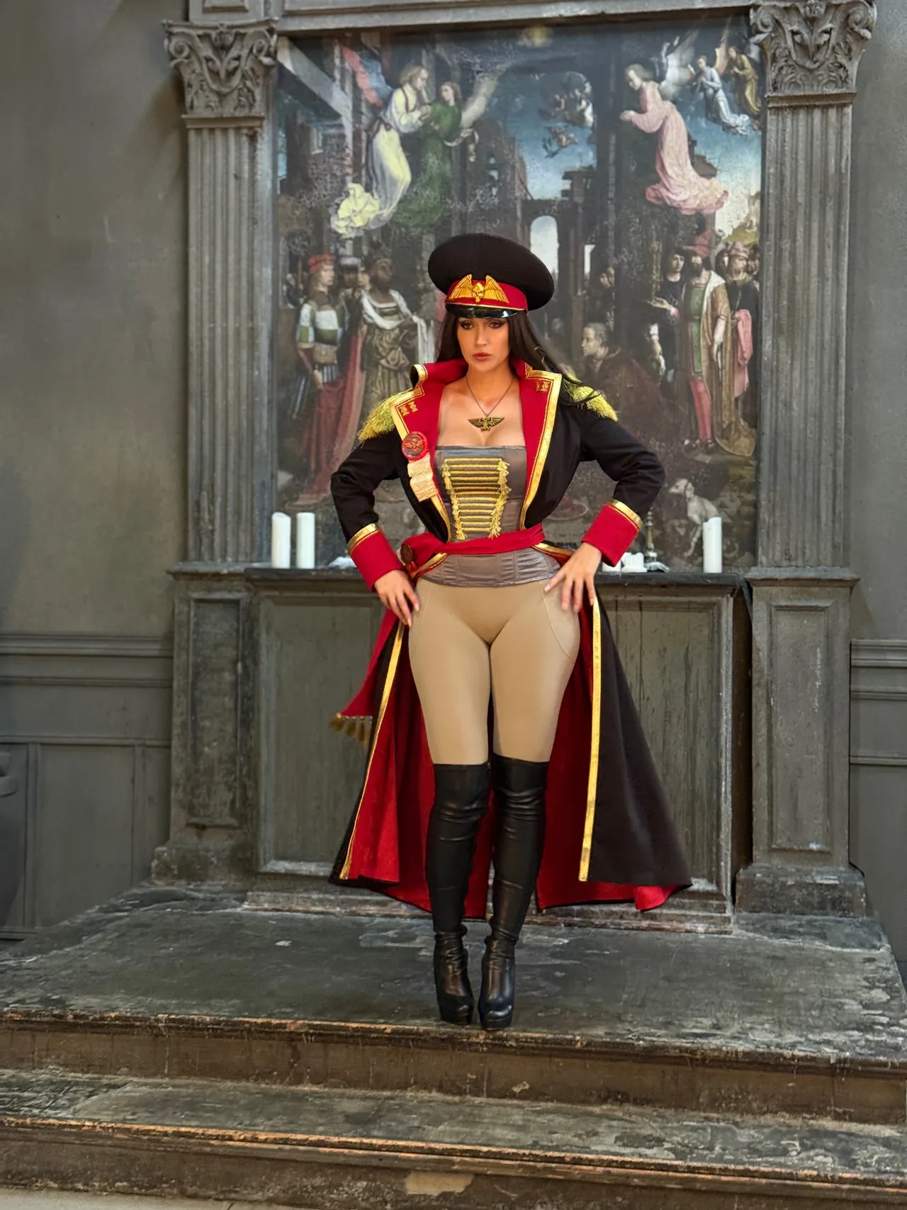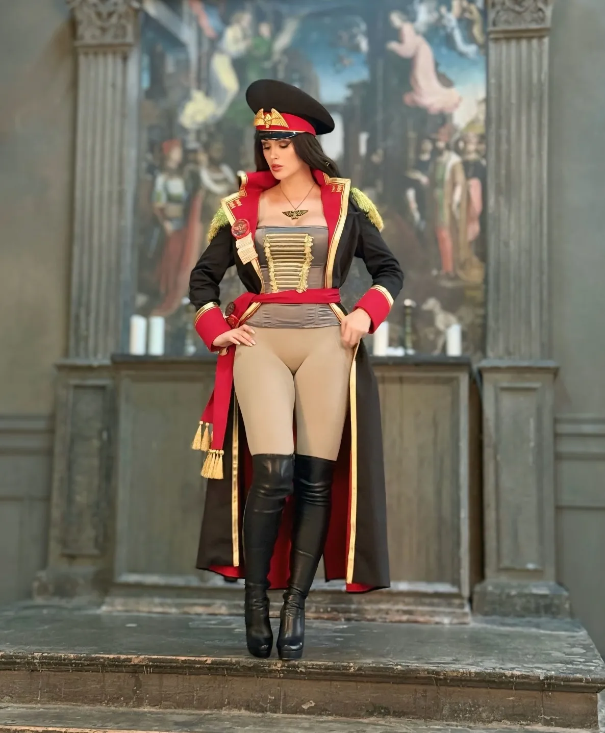 Tags: Big Ass, big breasts, Bikini, corset, hentai cosplay, High Heels, large tattoo, latex, Makeup, Military, painted nails, smoking, thigh high boots, very long hair, warhammer