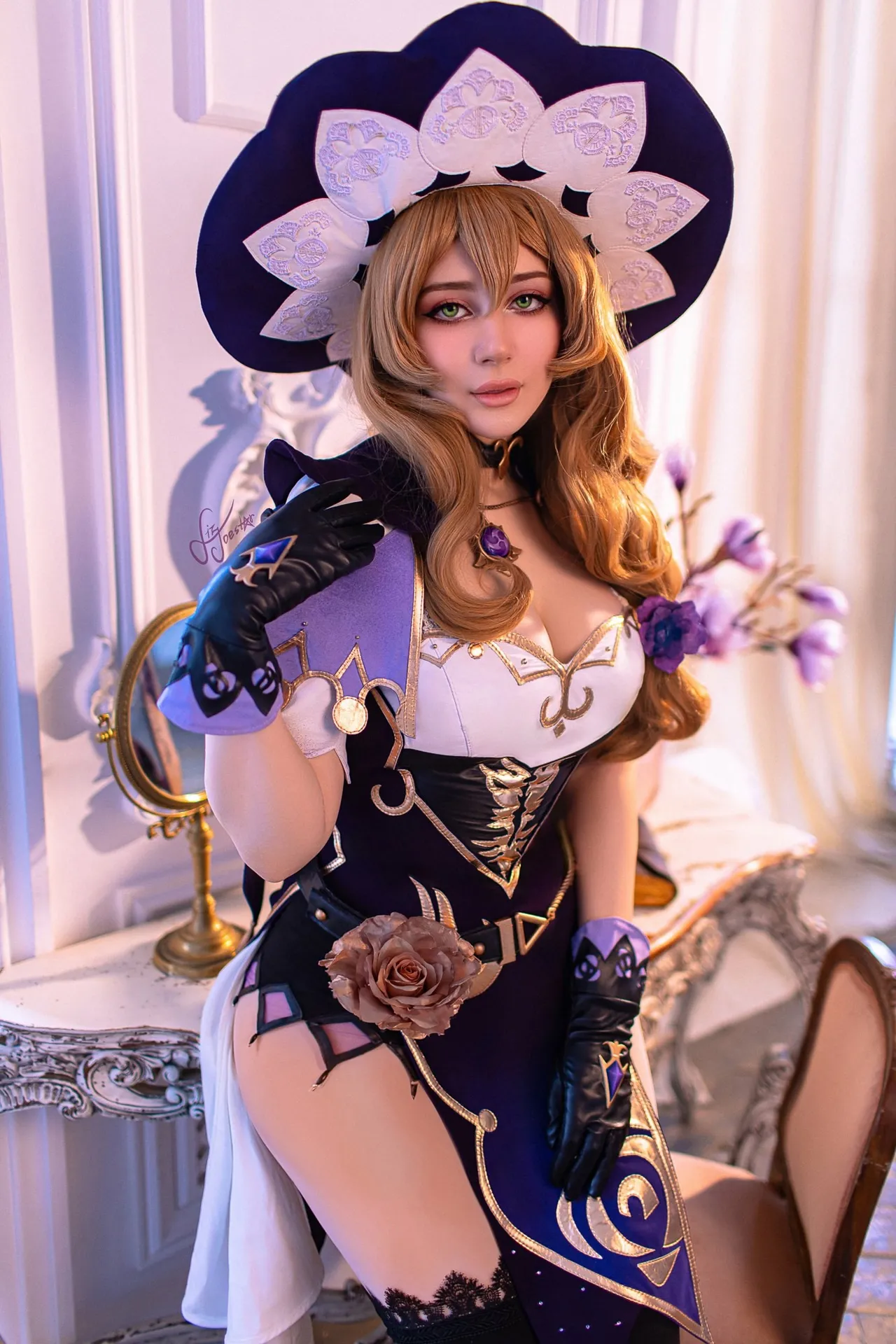 Tags: big breasts, collar, Genshin Impact, gloves, hentai cosplay, High Heels, lisa minci, Makeup, stockings, witch