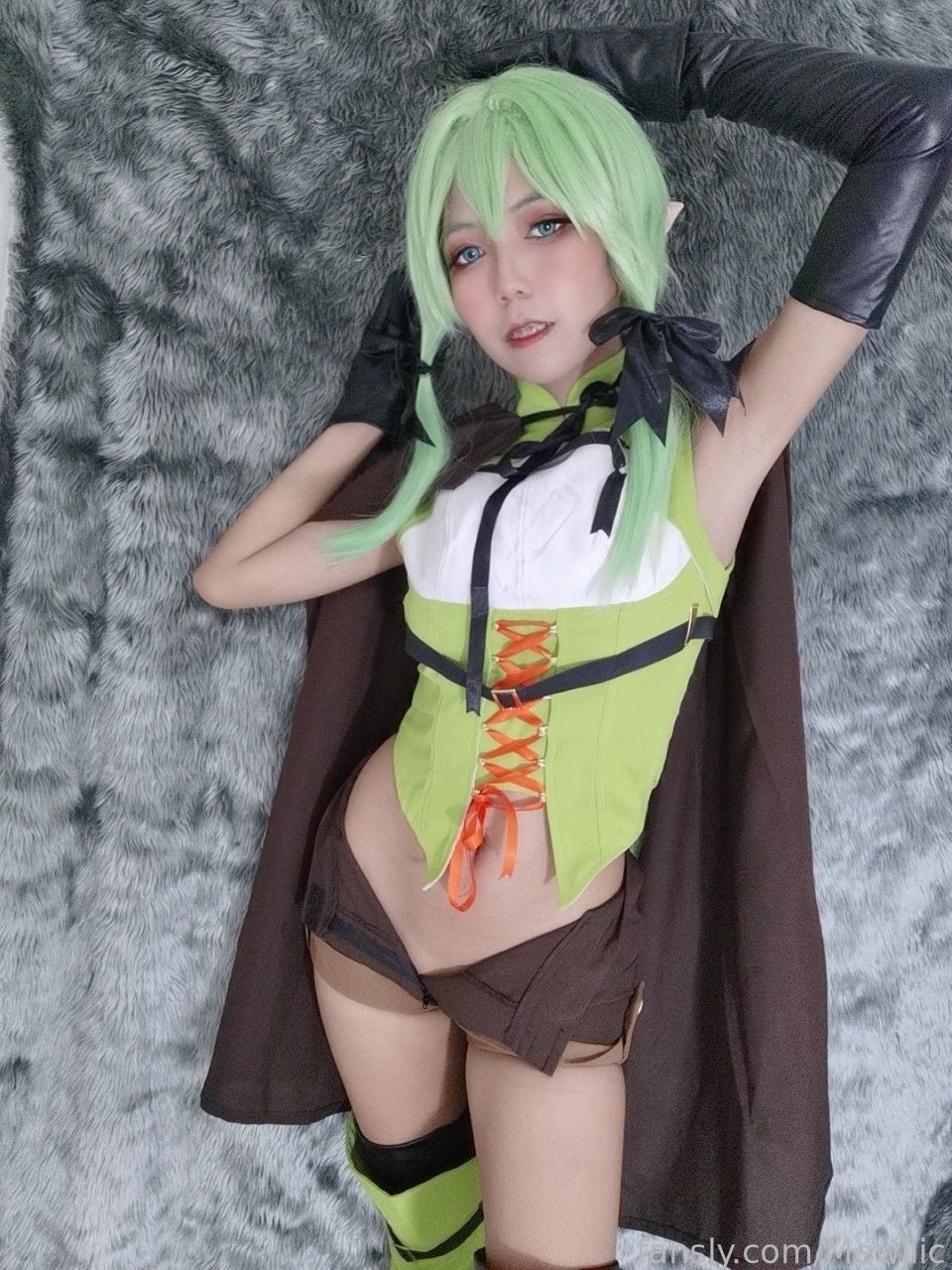 Tags: bondage, braces, elf, gag, gloves, goblin slayer, hentai cosplay, high elf archer | yousei yunde, Makeup, thigh high boots, twintails