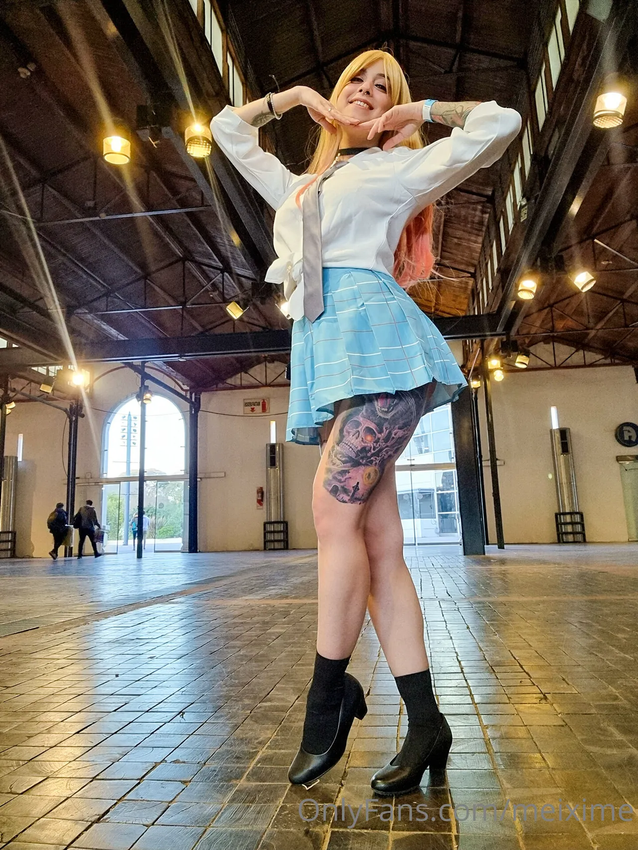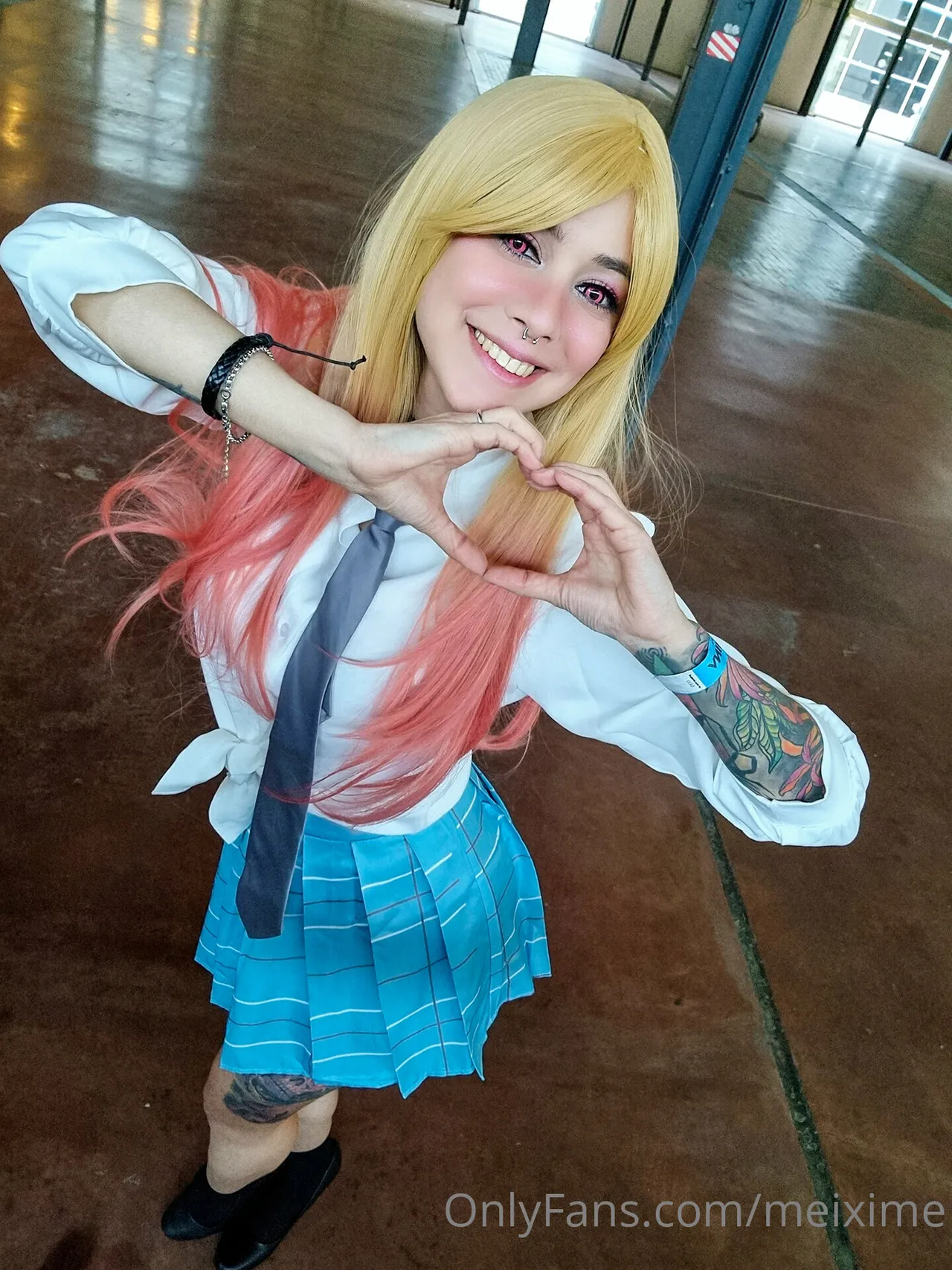 Tags: big breasts, collar, gyaru, hentai cosplay, large tattoo, lingerie, Makeup, Marin Kitagawa, painted nails, piercing, schoolgirl uniform, sono bisque doll wa koi o suru | my dress-up darling, stockings, very long hair