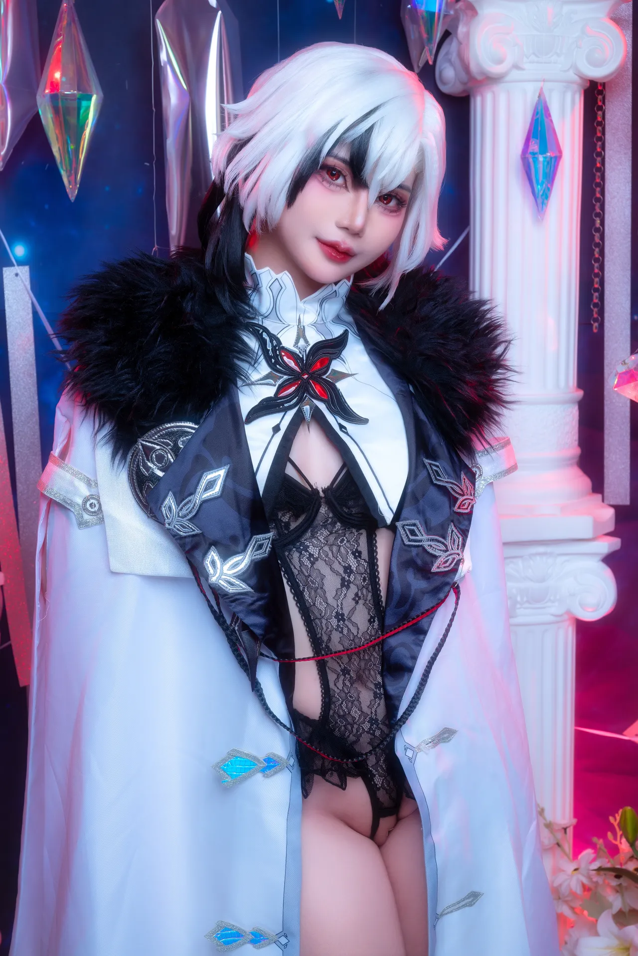 Tags: Arlecchino, fishnets, Genshin Impact, hentai cosplay, High Heels, Makeup, oil, painted nails, pasties, stockings, vaginal sticker