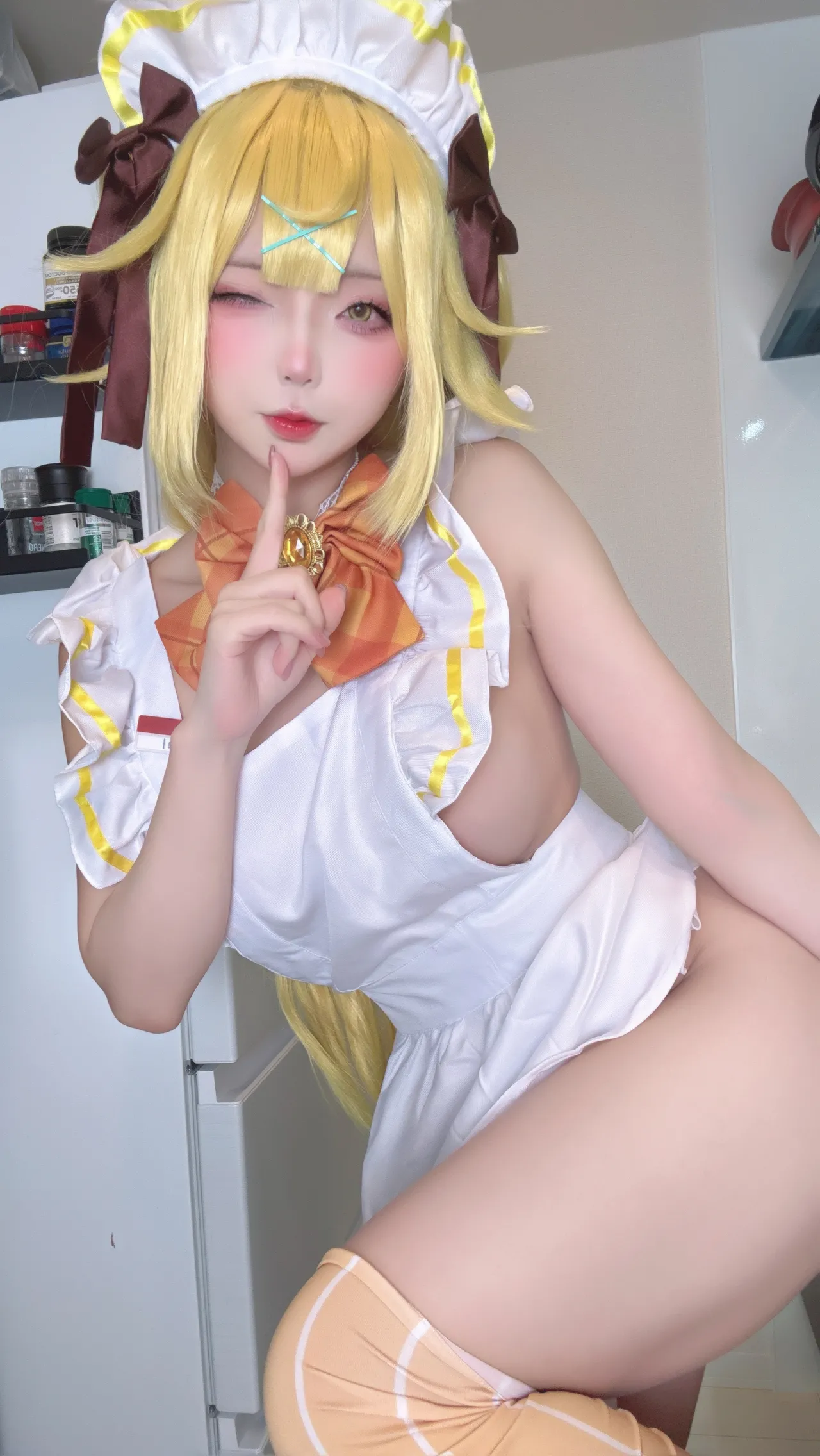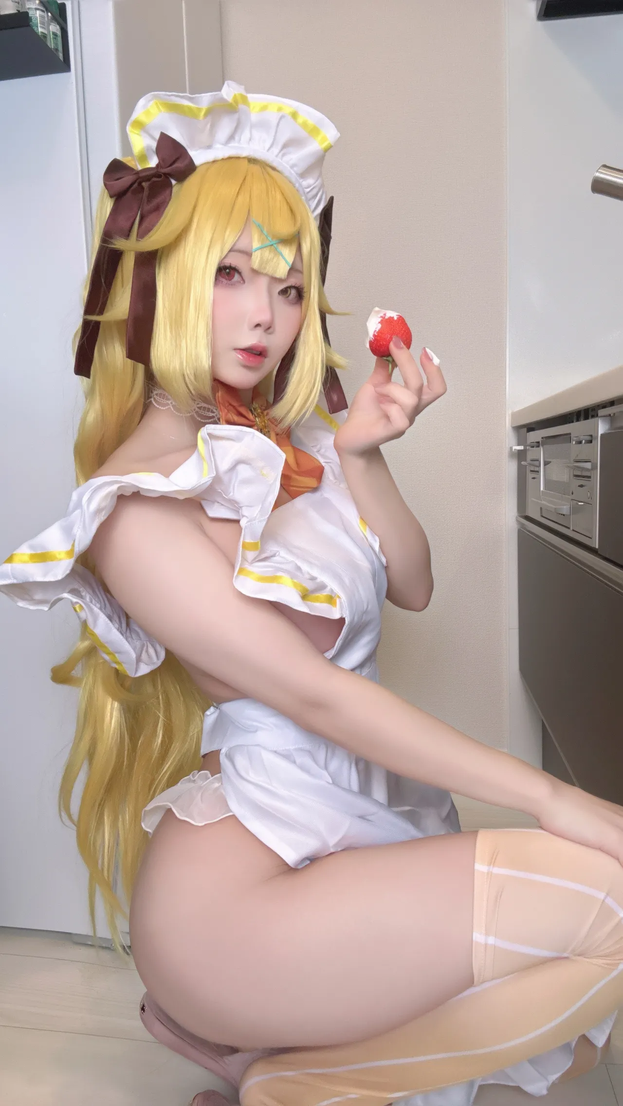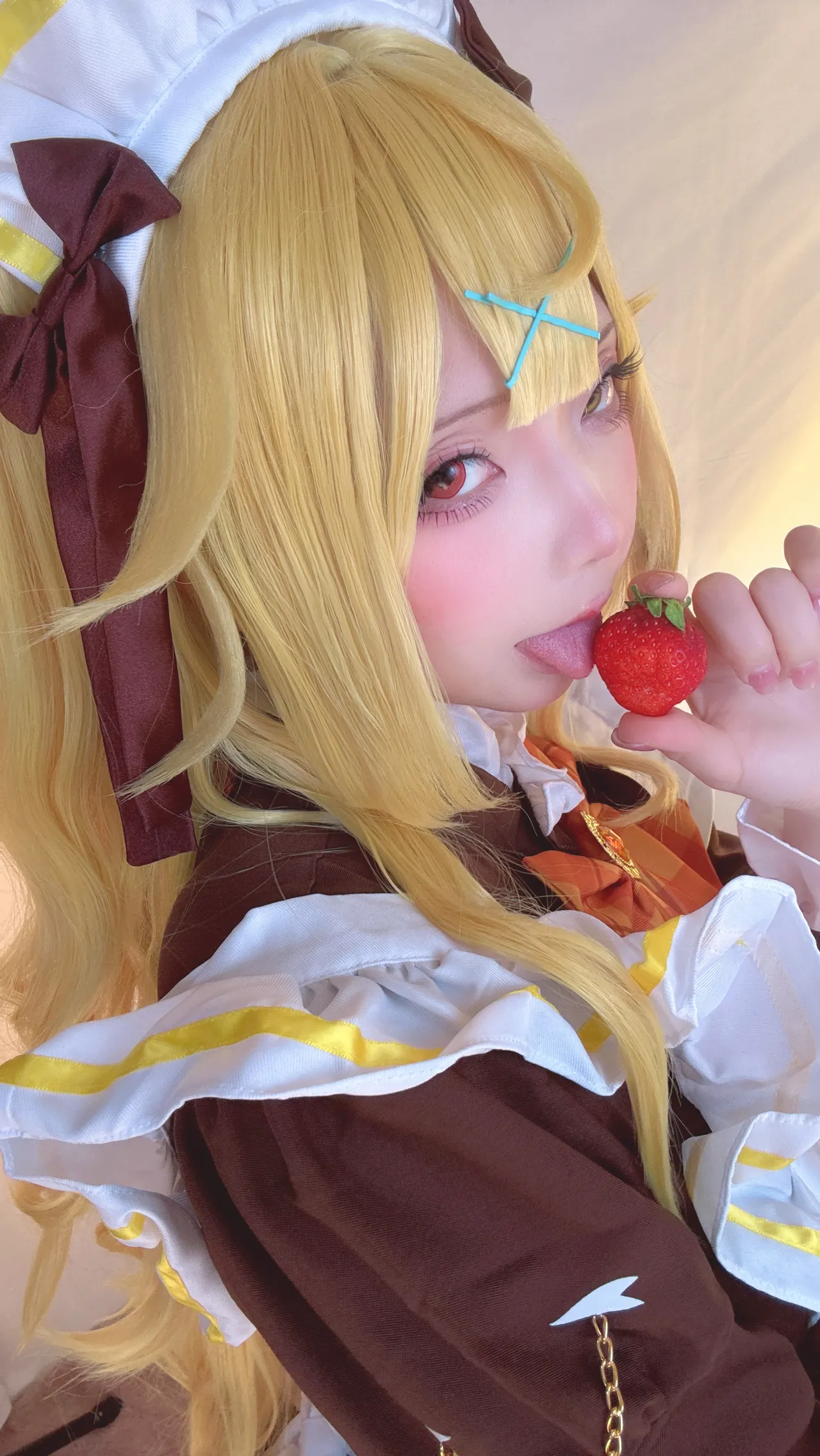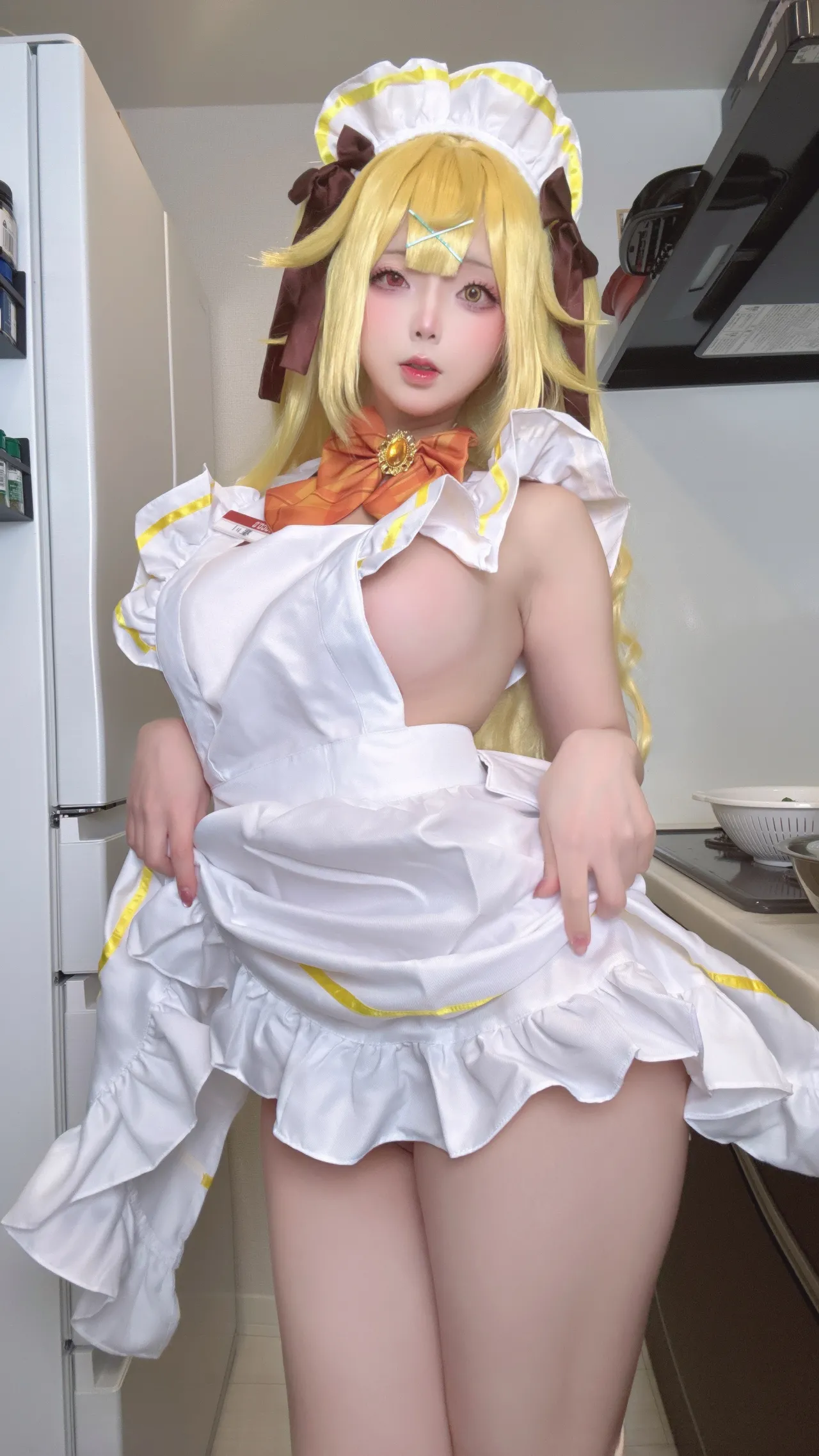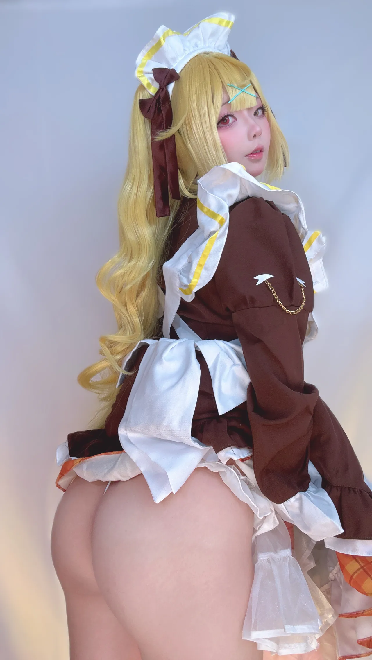 Tags: Ahegao, apron, hentai cosplay, Maid, Makeup, painted nails, stockings, twintails, very long hair