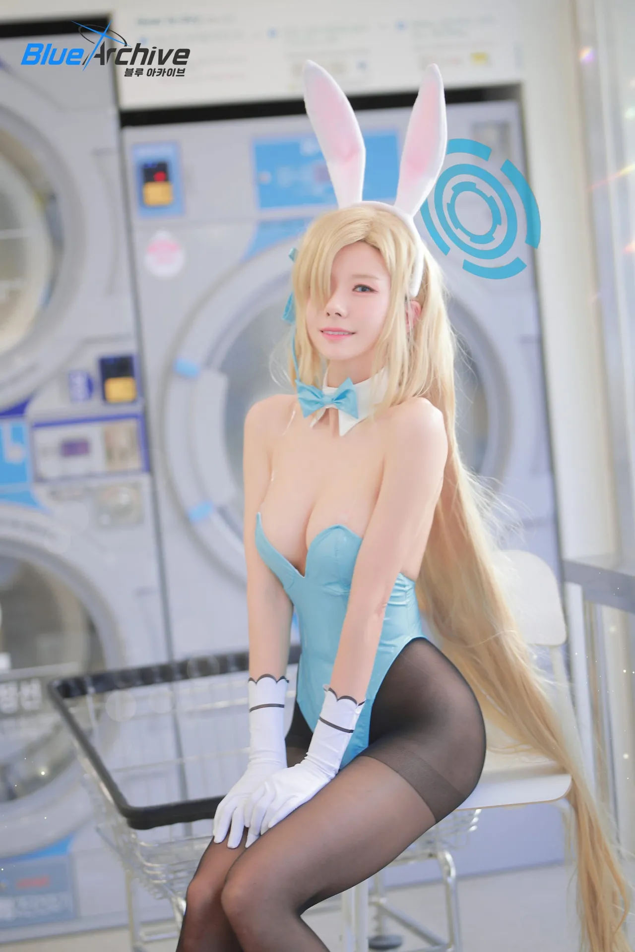 Tags: asuna ichinose, Blue Archive, Bunny Girl, eye-covering bang, gloves, Halo, hentai cosplay, High Heels, leotard, Makeup, pantyhose, very long hair