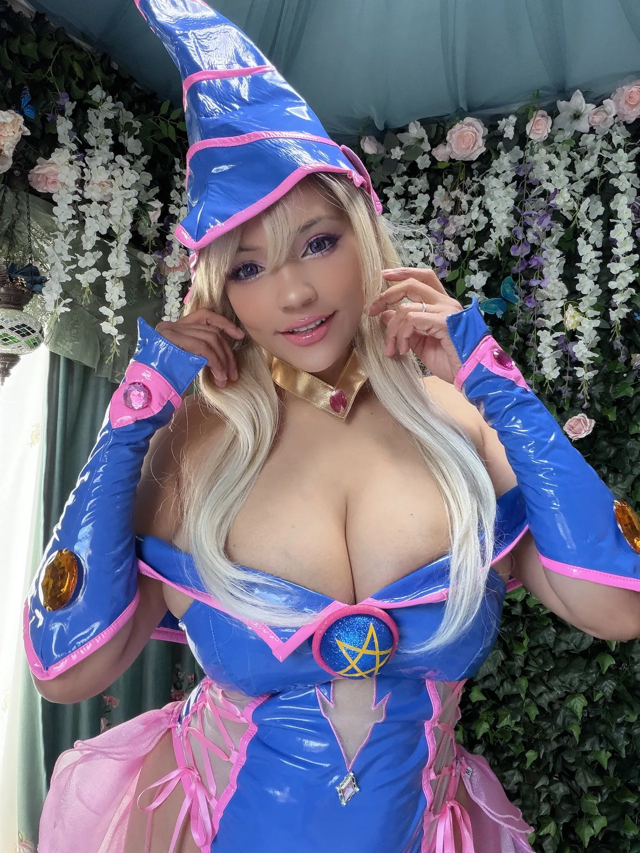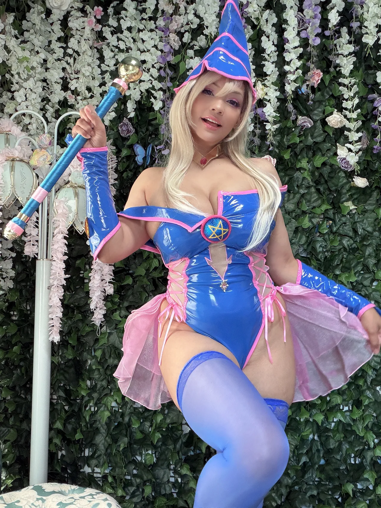 Tags: big breasts, dark magician girl, dark skin, hentai cosplay, latex, magical girl, Makeup, stockings, Yu-Gi-Oh