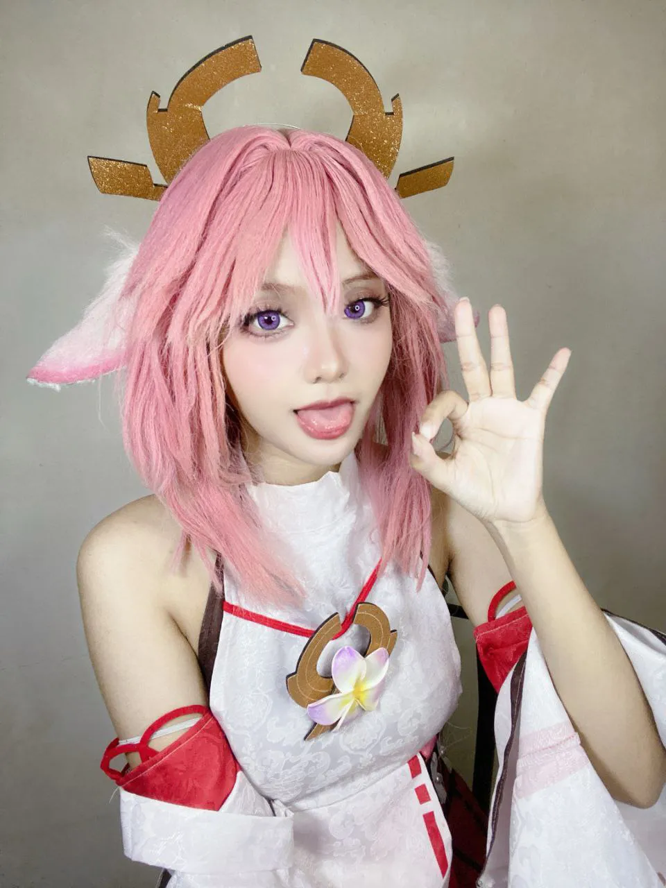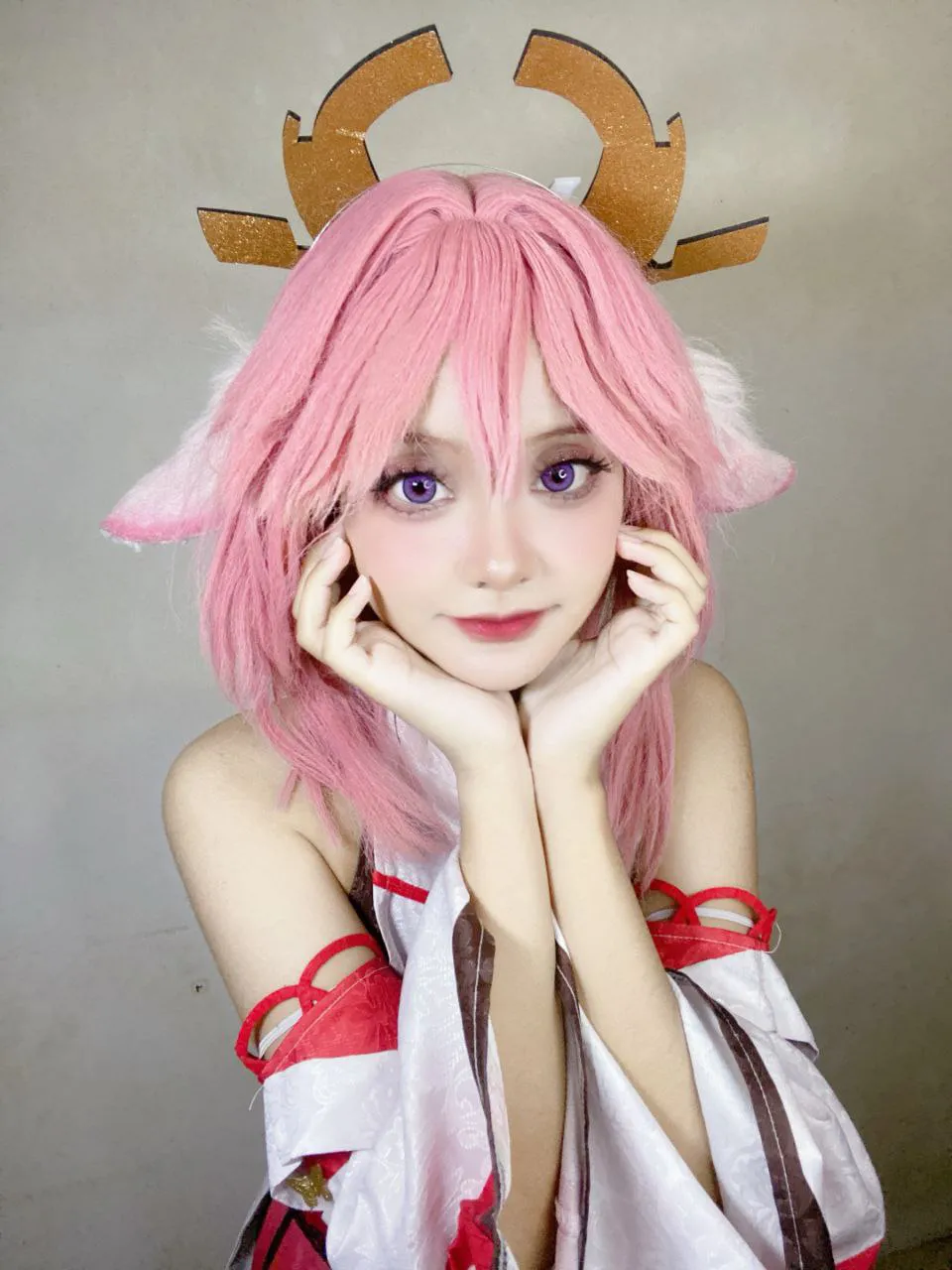 Tags: detached sleeves, fox girl, Genshin Impact, hentai cosplay, Kemonomimi, Makeup, miko, pasties, yae miko