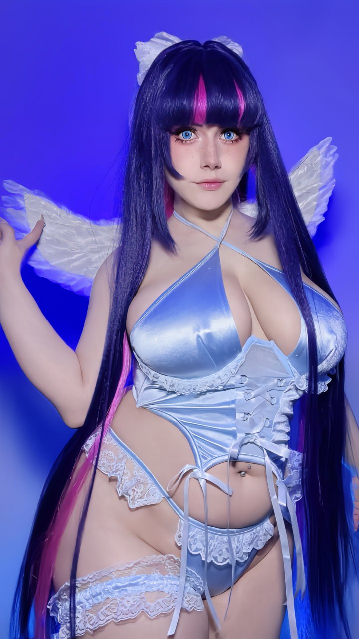 Tags: big breasts, hentai cosplay, Makeup, painted nails, panty and stocking with garterbelt, piercing, stocking anarchy, stockings, very long hair, wings