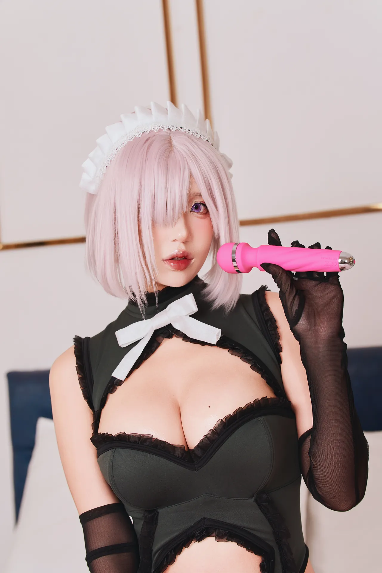 Tags: apron, eye-covering bang, Fate Grand Order, hentai cosplay, Maid, Makeup, sex toys, Shielder | Mash kyrielight, stockings