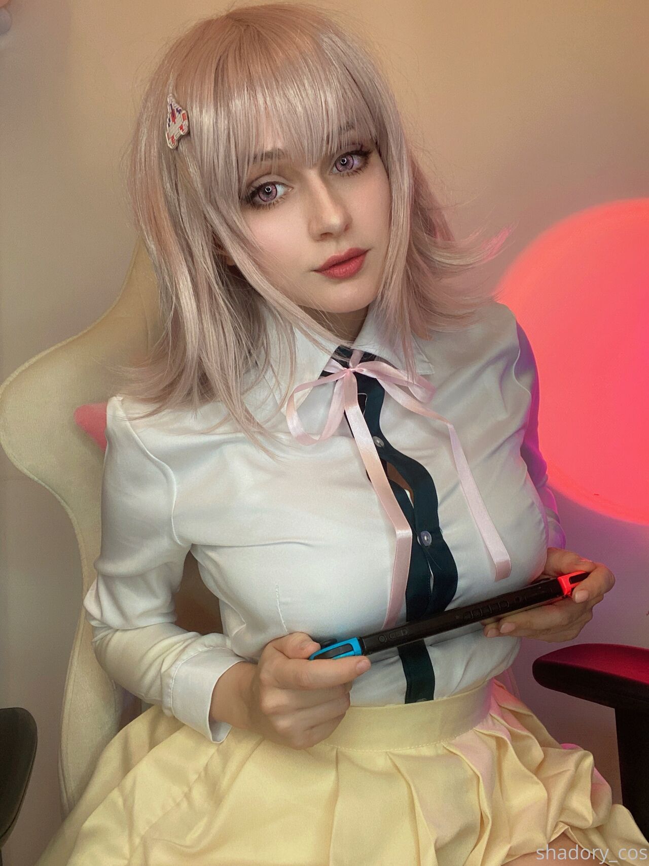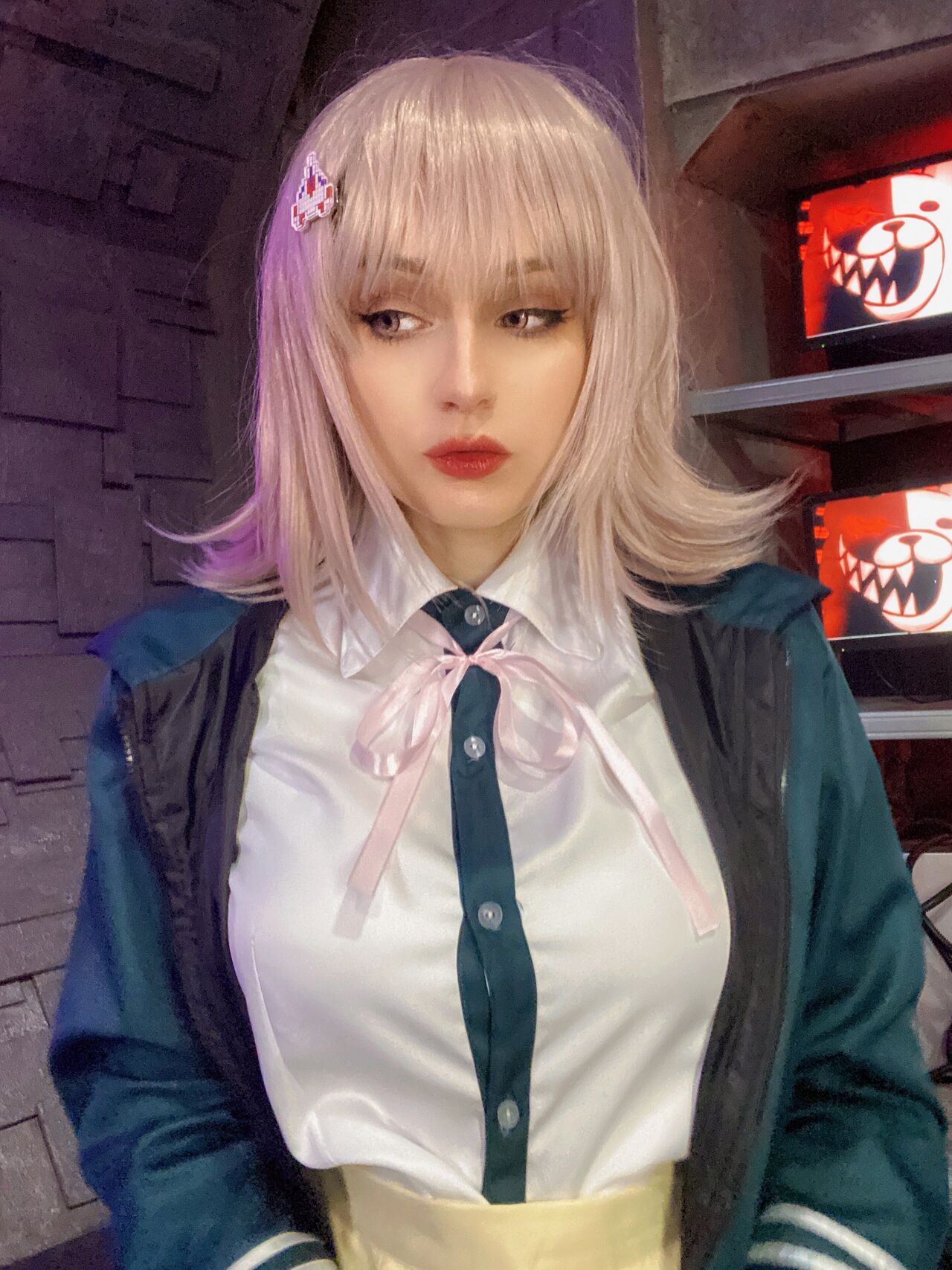Tags: big breasts, Chiaki, chiaki nanami, danganronpa, hentai cosplay, leotard, lingerie, Makeup, Nanami, schoolgirl uniform, Shadory, stockings