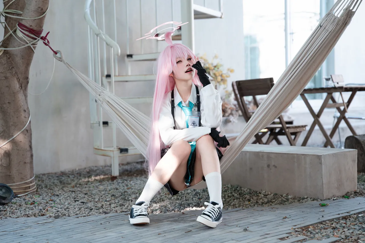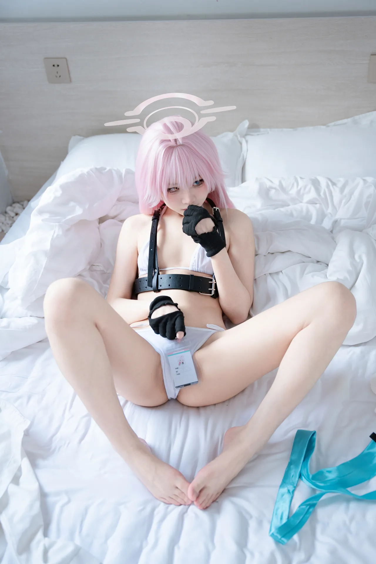 Tags: Bikini, Blue Archive, gloves, Halo, harness, hentai cosplay, heterochromia, hoshino takanashi, Makeup, schoolgirl uniform, small breasts, swimsuit, very long hair