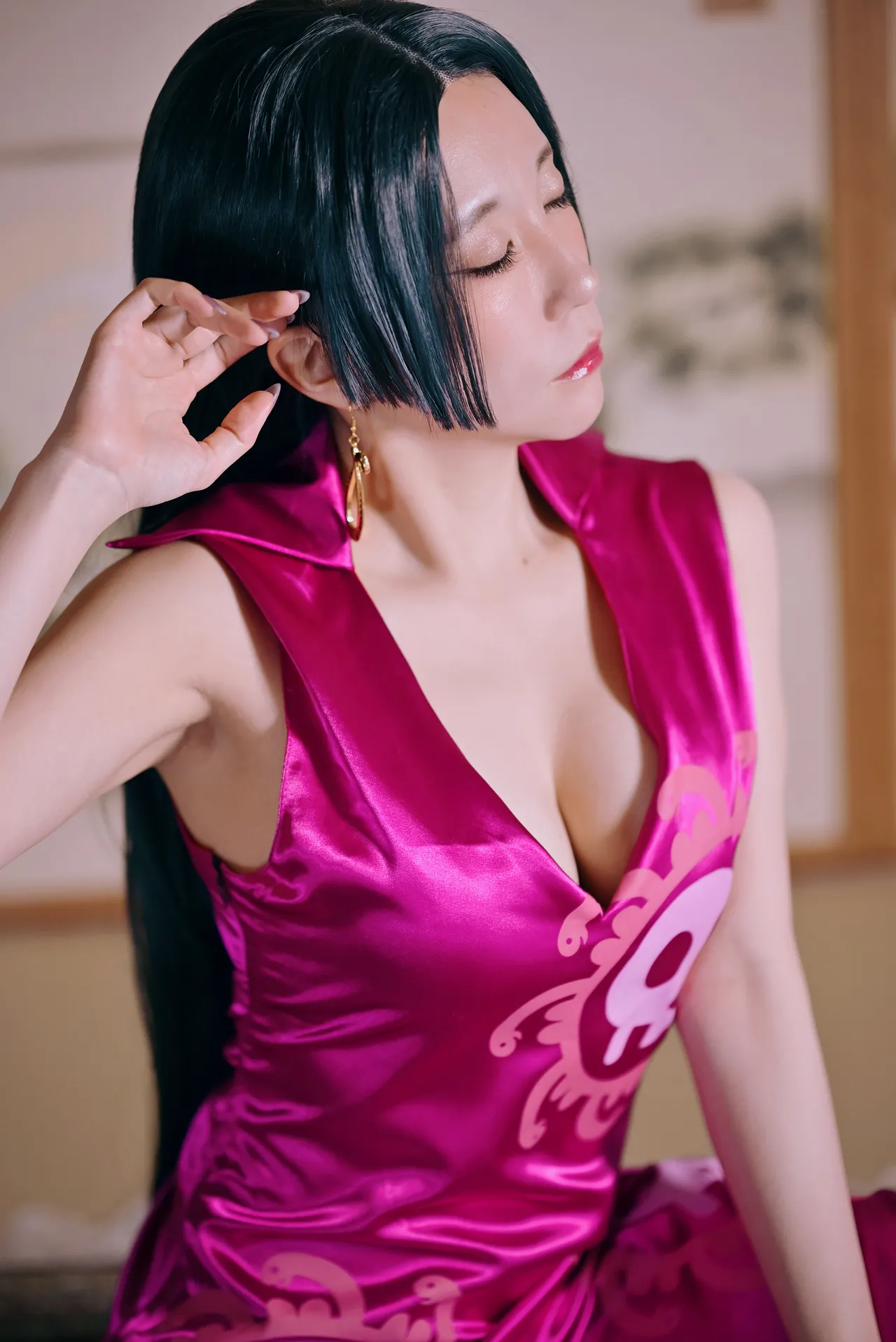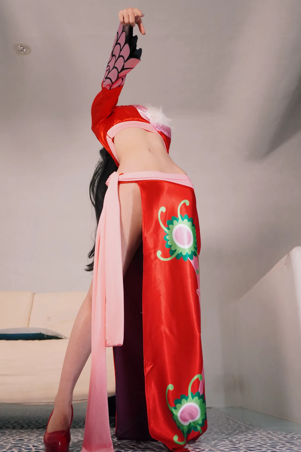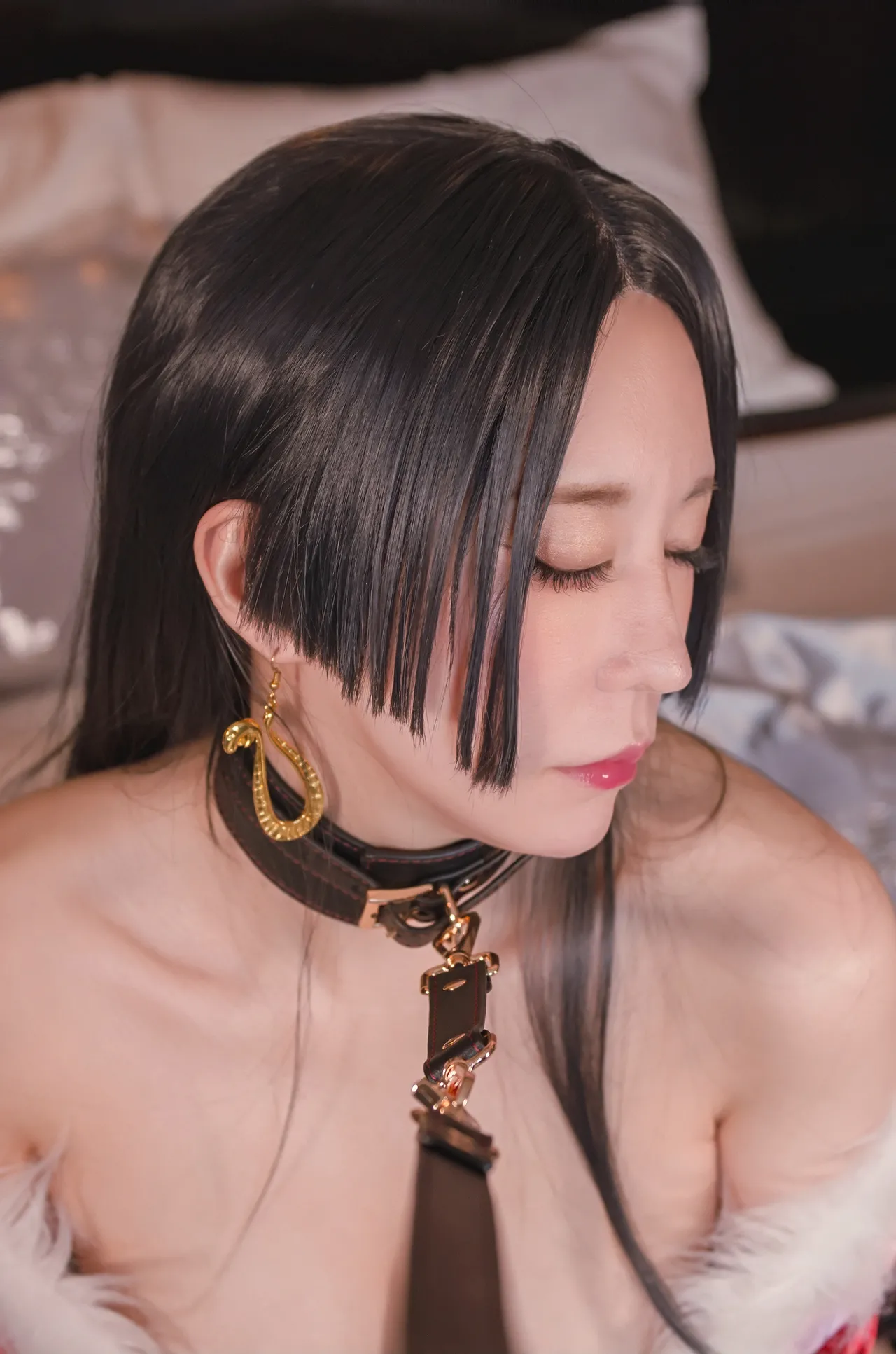 Tags: Boa Hancock, bondage, collar, hentai cosplay, High Heels, Makeup, One Piece, painted nails, sole female, very long hair