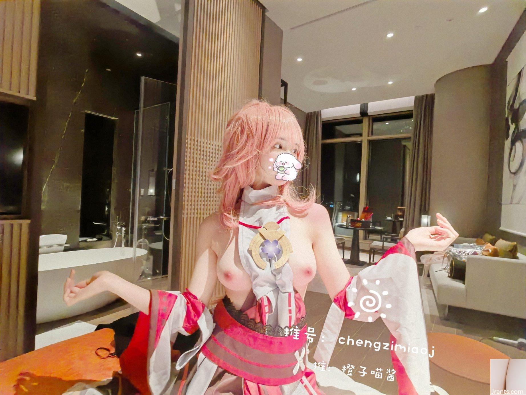 The legs are spread out, the pink hairless cunt is colorful, and the colorful COSER is served to everyone completely naked (22P)