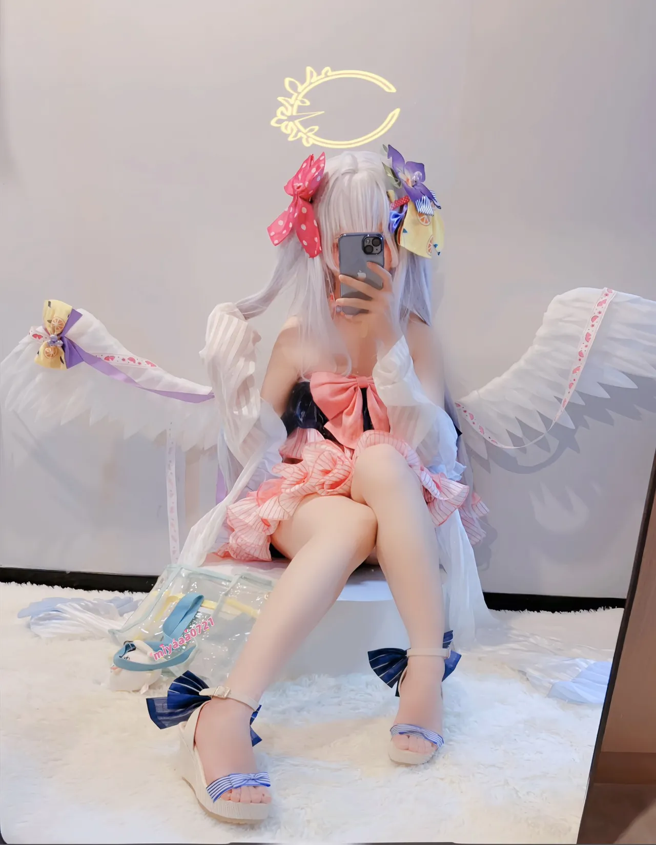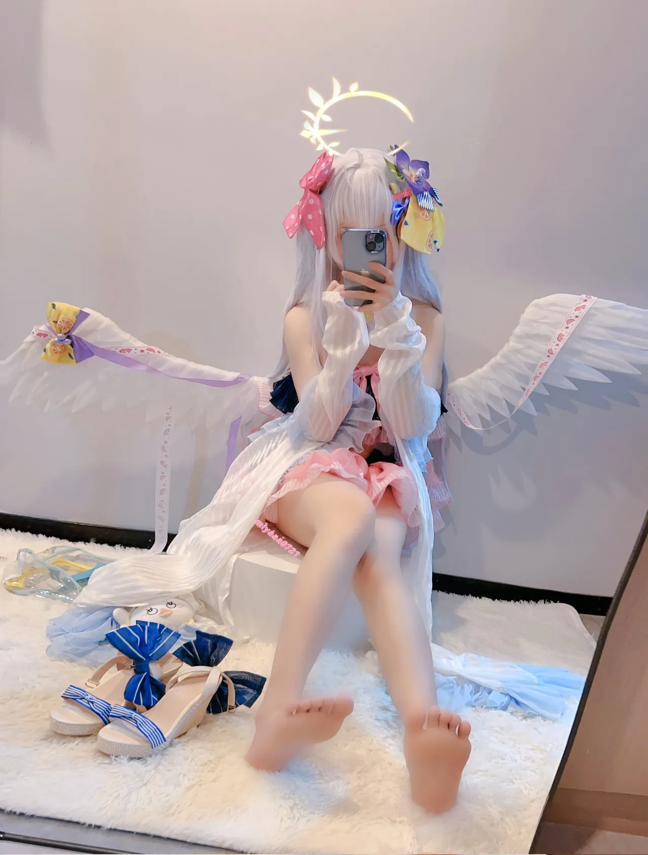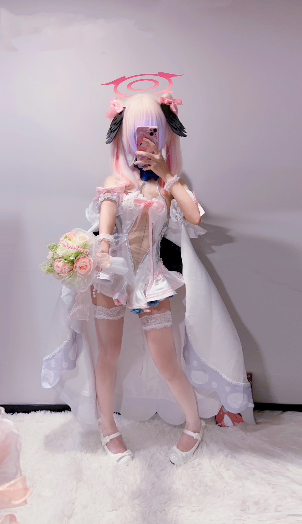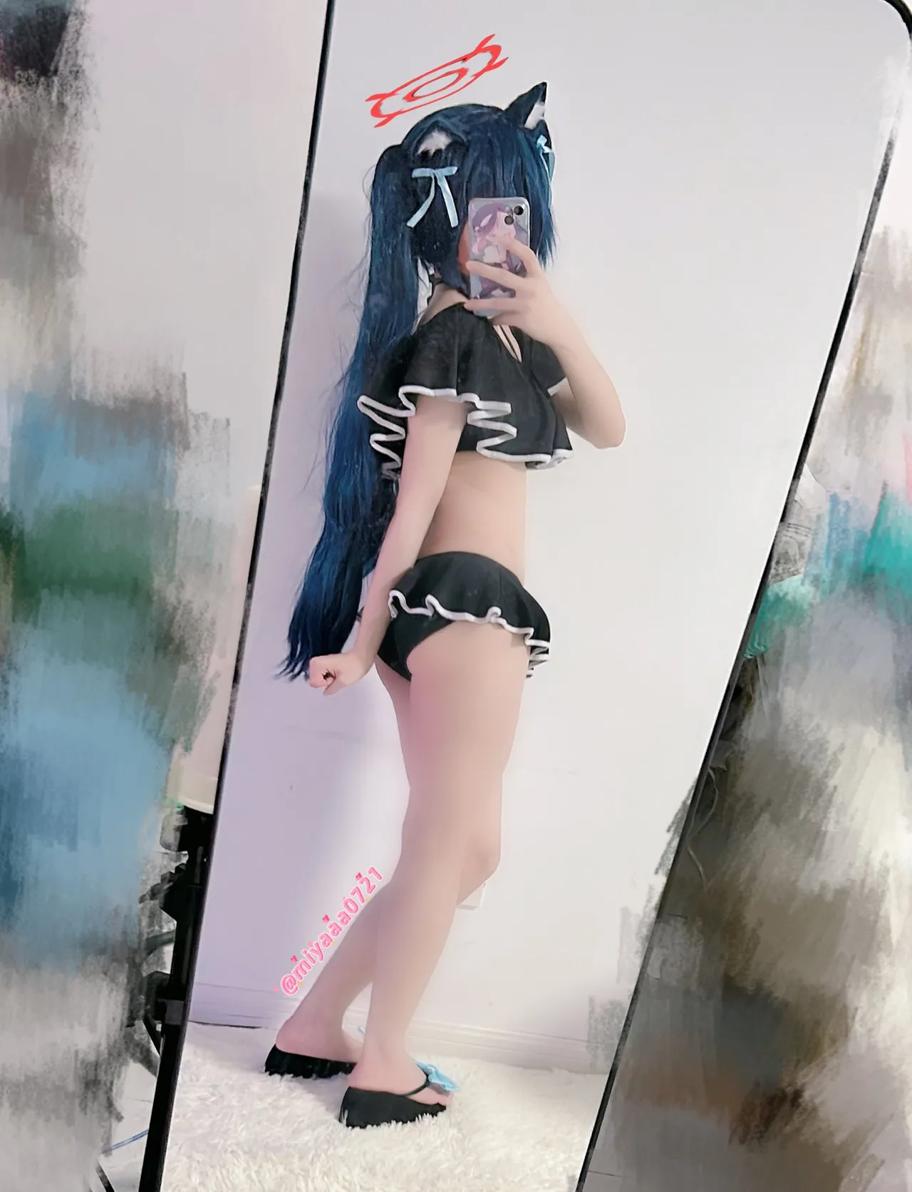 Tags: Bikini, Blue Archive, detached sleeves, gloves, Halo, hentai cosplay, Kemonomimi, lingerie, pantyhose, stockings, swimsuit, twintails, wings