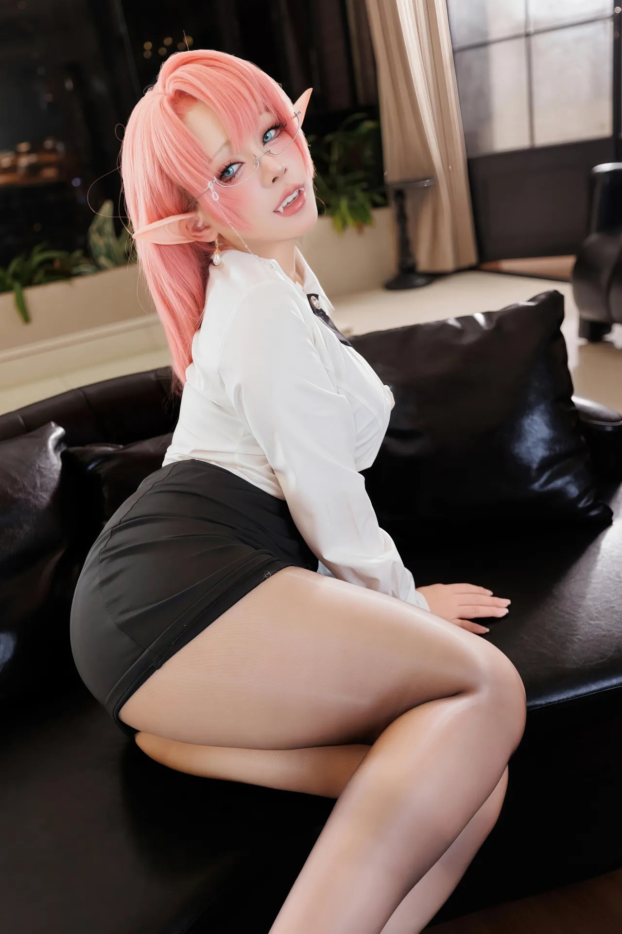 Tags: azur lane, Big Ass, business suit, duke of york, Glasses, hentai cosplay, High Heels, Makeup, pantyhose, unusual teeth, vampire, very long hair
