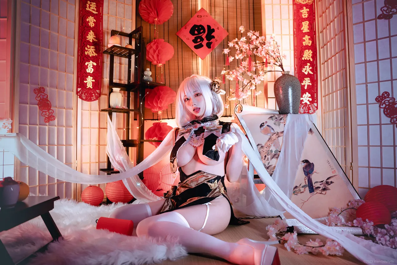 Tags: azur lane, big breasts, garter belt, gloves, hentai cosplay, High Heels, Makeup, Sirius, stockings