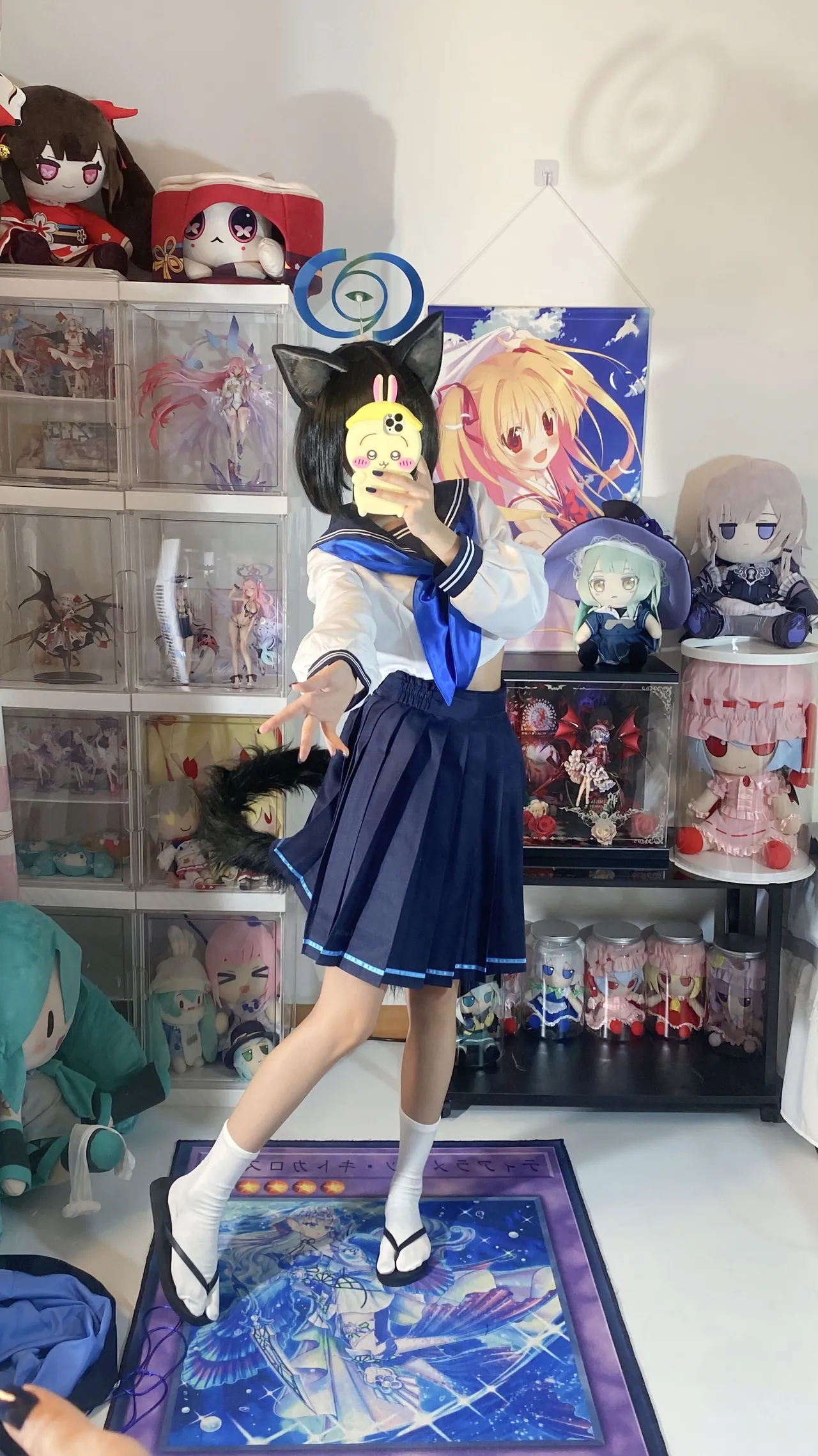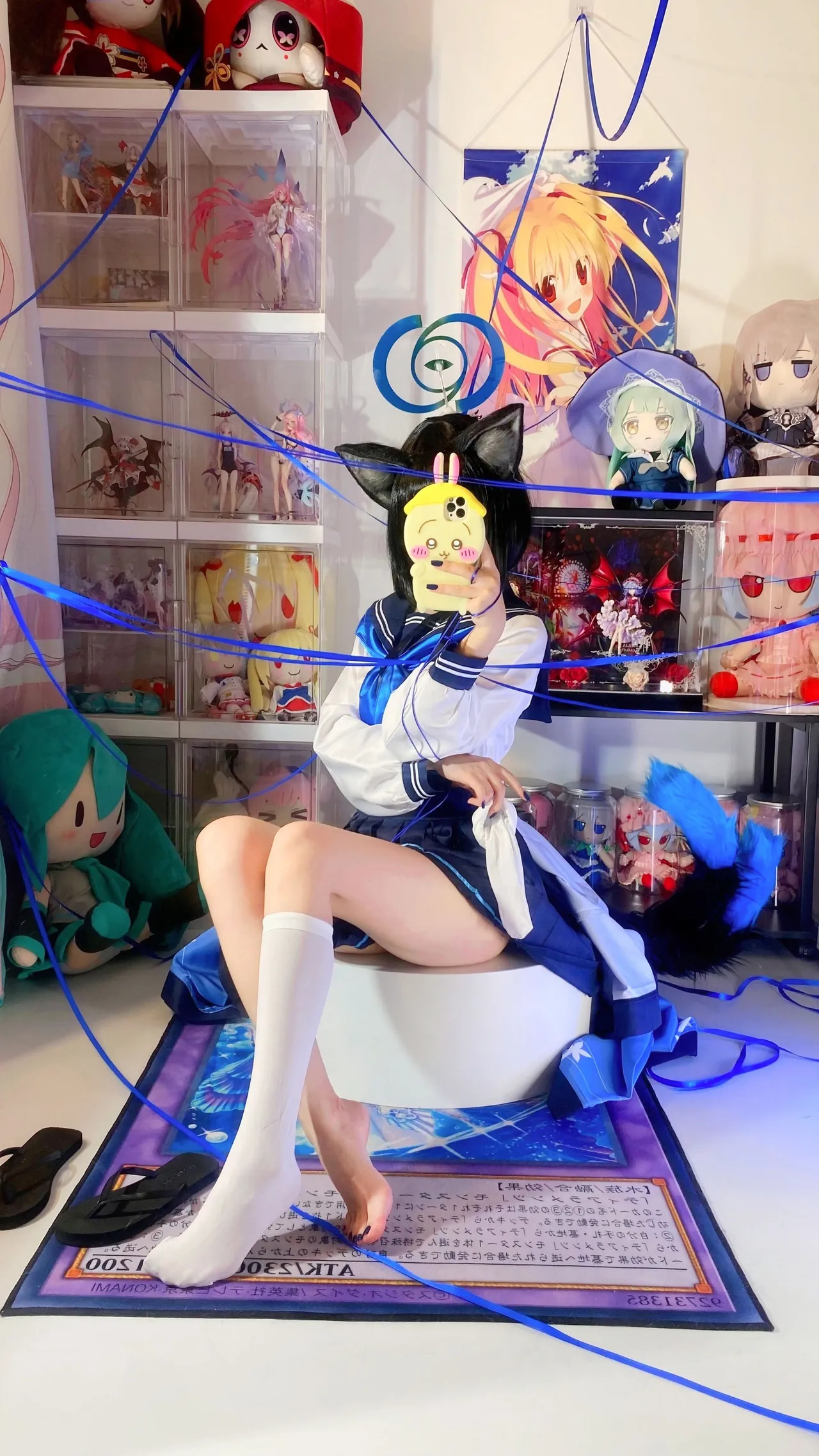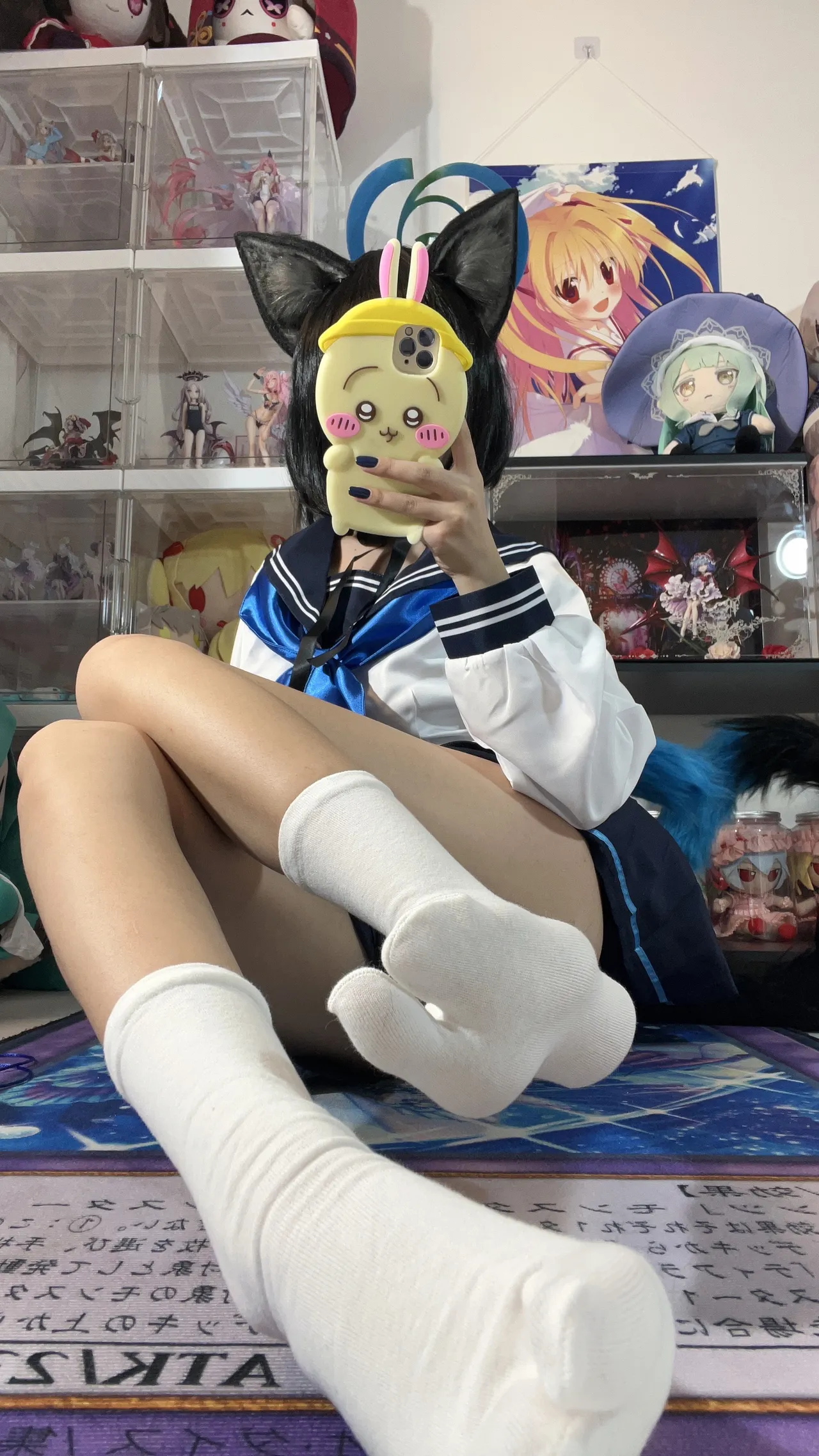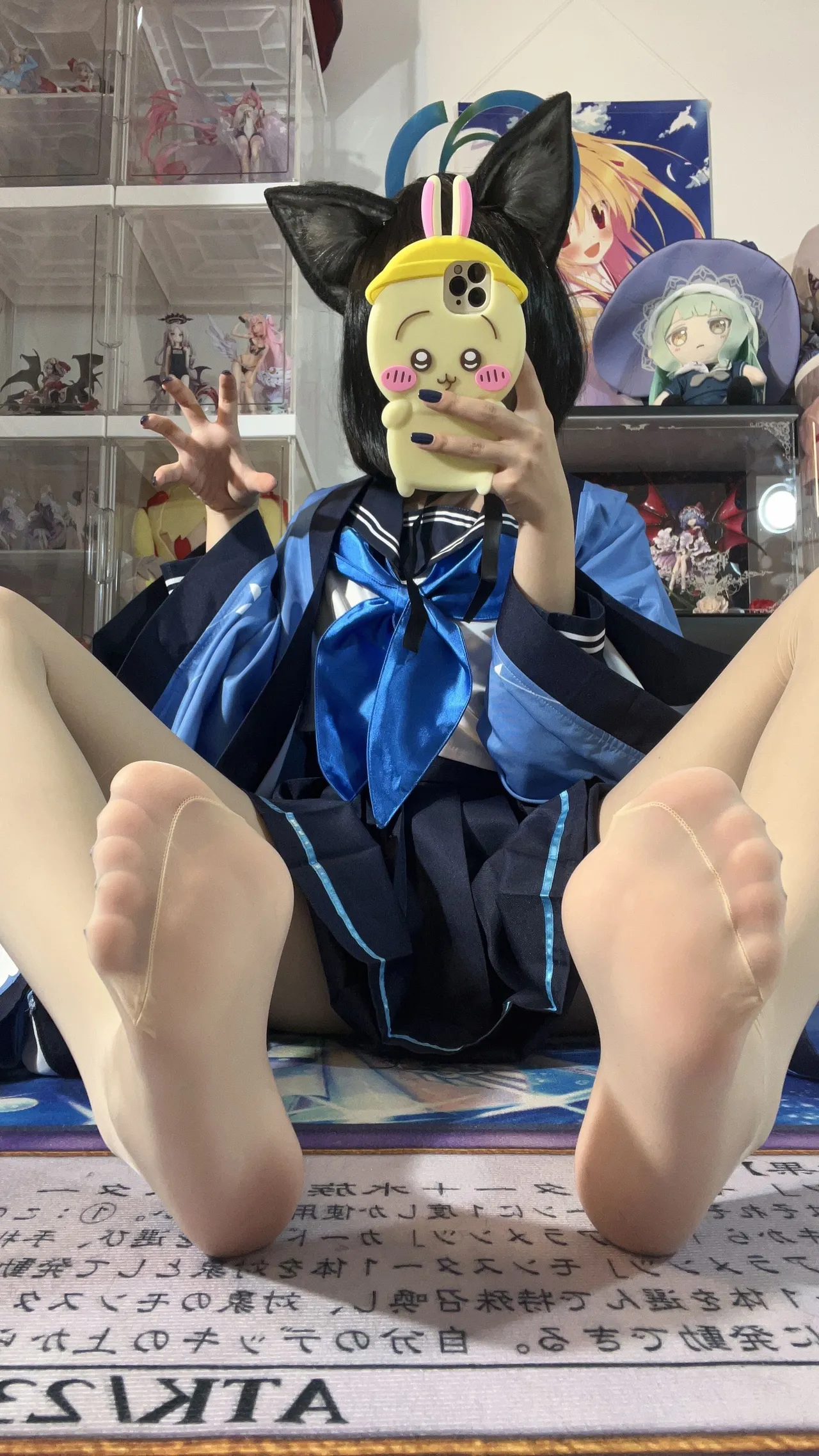 Tags: Blue Archive, Halo, hentai cosplay, Kemonomimi, kikyou kiryuu, Kimono, Makeup, painted nails, schoolgirl uniform, tabi socks